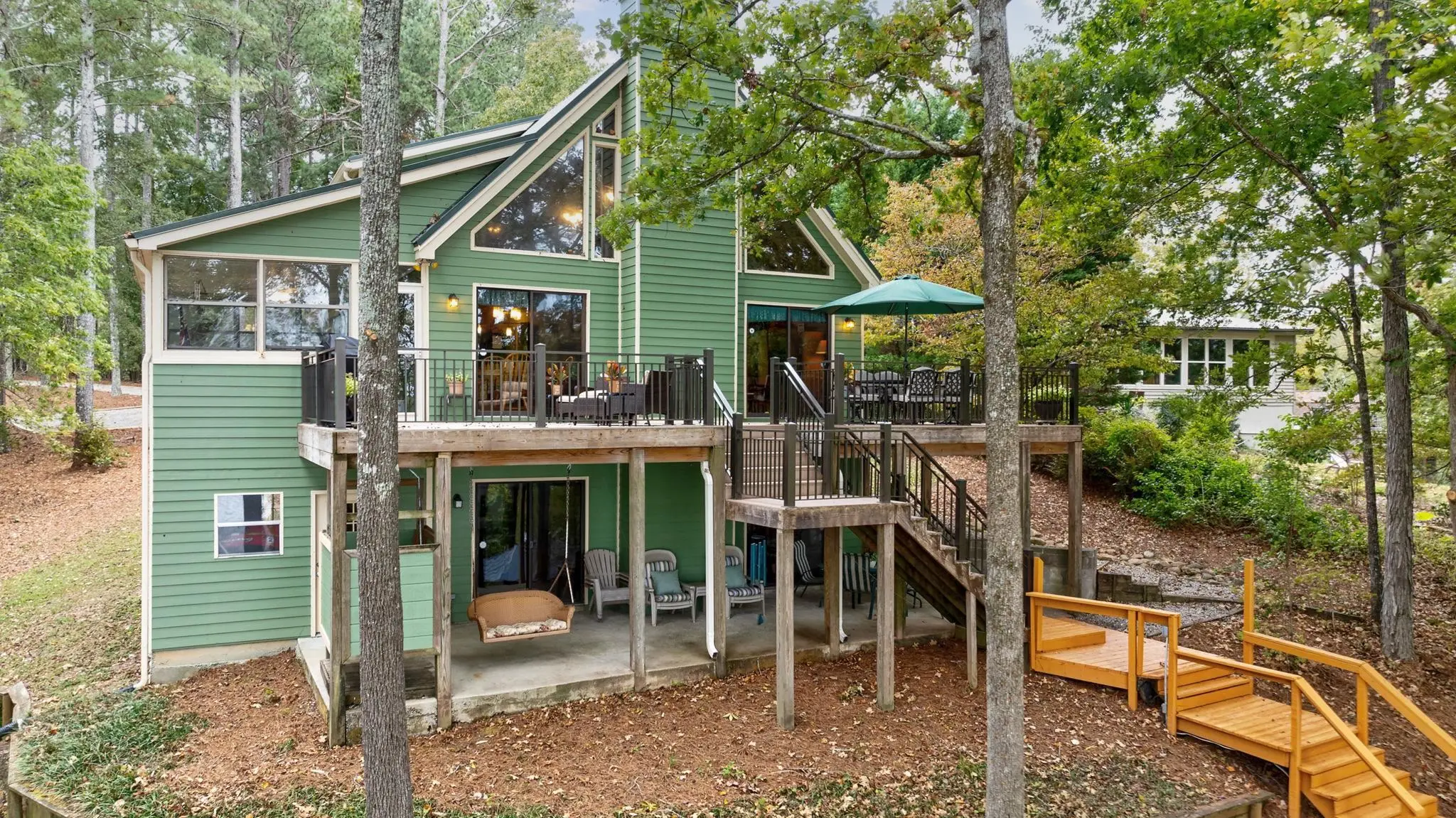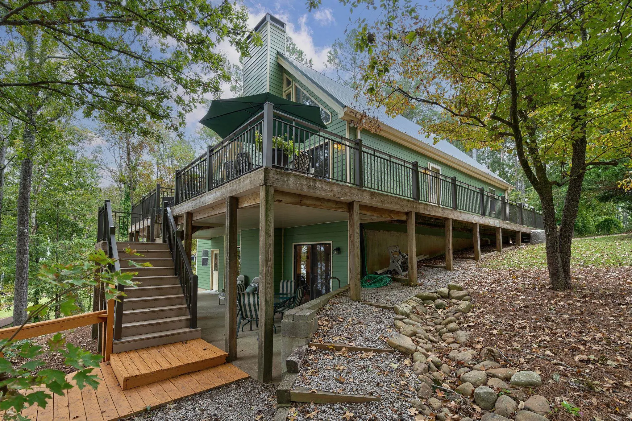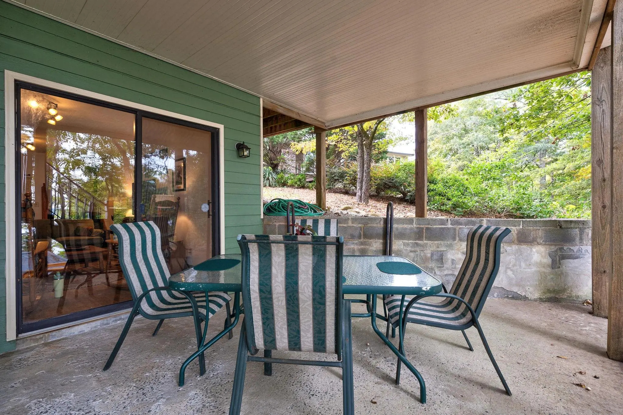 - Exterior FeaturesCovered Patio, Covered Porch, Deck, Storage Room