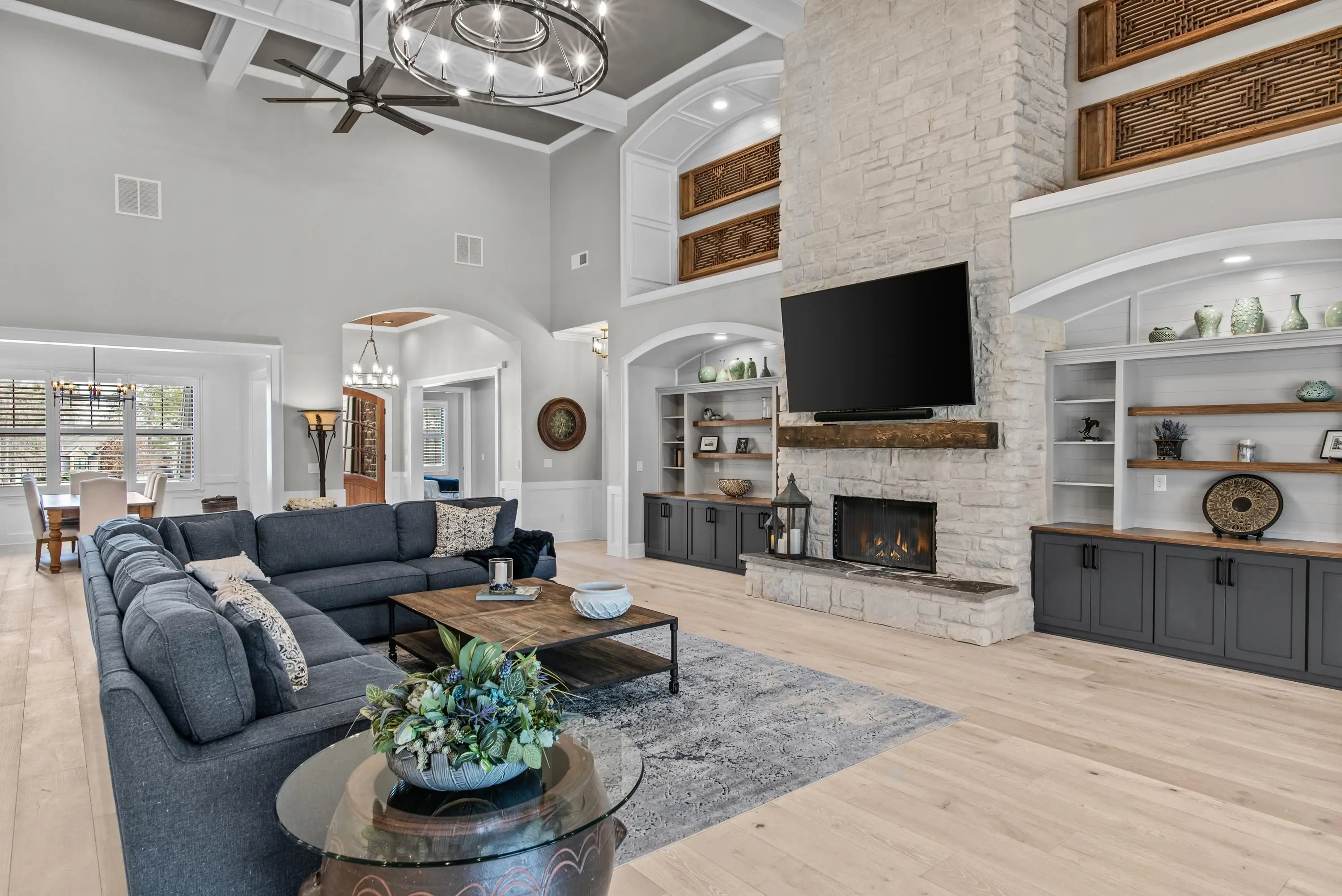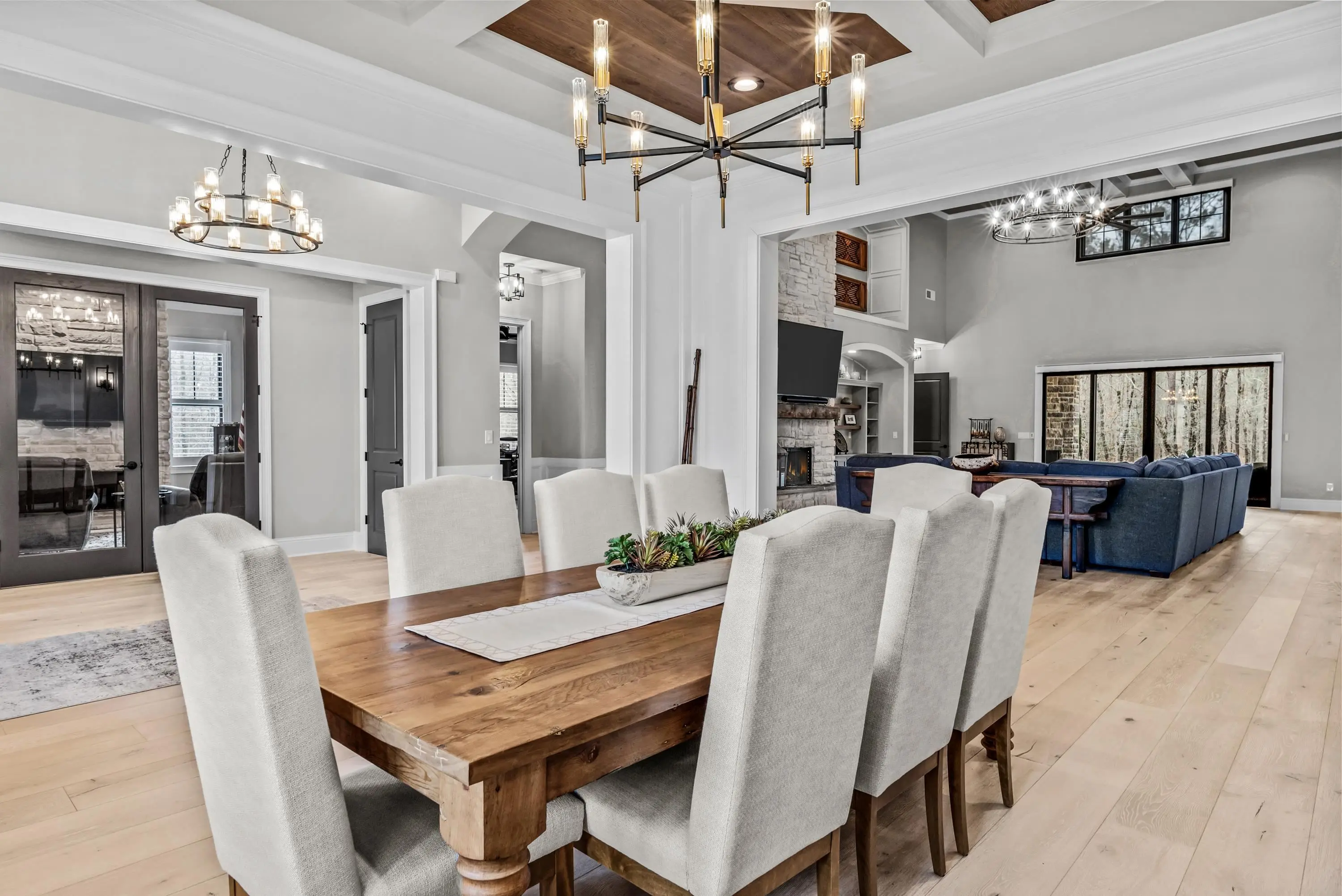 THIS EXQUISITE CUSTOM-BUILT HOME AWAITS YOU AT HARMONY BAY ON LAKE OCONEE! This nearly new home was constructed in 2023 on a .72-acre lake view lot with gorgeous year-round lake views, and your deeded assigned boat slip is just a few steps away. Designed to elevate your lifestyle, this sprawling one-story home boasts over 5,900 sqft and is ideal for luxurious living and effortless entertaining. The attention to detail is evident in the quality of construction and the thoughtful selections and finishes throughout the house. The two-story Great Room has a floor-to-ceiling fireplace with custom-built-ins and coffered ceilings. The spacious primary suite provides a luxurious bathroom with dual vanities, a glass-enclosed massaging shower & tub with waterfall tile, separate water closets, double custom closets, and a dressing area. Three additional guest suites are on the opposite side of the house, offering ultimate privacy and comfort. The chef’s kitchen is adorned with stylish Z-Line black stainless-steel appliances, abundant custom cabinetry with pull-out cabinets for ease of use and storage, and gorgeous quartz countertops. The butler’s pantry has a glass door entry with custom cabinets and shelving to store your countertop appliances and daily essentials. Additional features of this home include a study with glass french doors and a cozy fireplace, a dining room with intricate ceiling details and custom lighting, a spacious laundry room with abundant cabinets and a utility sink, a half bath, and a mud room just off the garage. A large bonus room/guest suite over the garage is the perfect flex space to meet your desired needs. Additional storage is available in the walk-in attic, featuring upgraded foam insulation. This house would not be complete without an outdoor living space, and this one is sure to satisfy. Sliding glass doors in the great room open to a covered porch with multiple fans, a brick-faced fireplace, and a built-in grilling area. The 3-car garage is equipped with an electric car charging station, epoxy flooring, abundant custom storage cabinets, and a large utility closet. Harmony Bay is a Gated Community with a private boat ramp, assigned slips, and daily-use docks. Conveniently located to all local amenities. Are you a golfer? The seller also owns a gorgeous lot in Reynolds (with a membership) and is willing to sell it with this property on a separate bill of sale. Call us to discuss this considerable opportunity today!