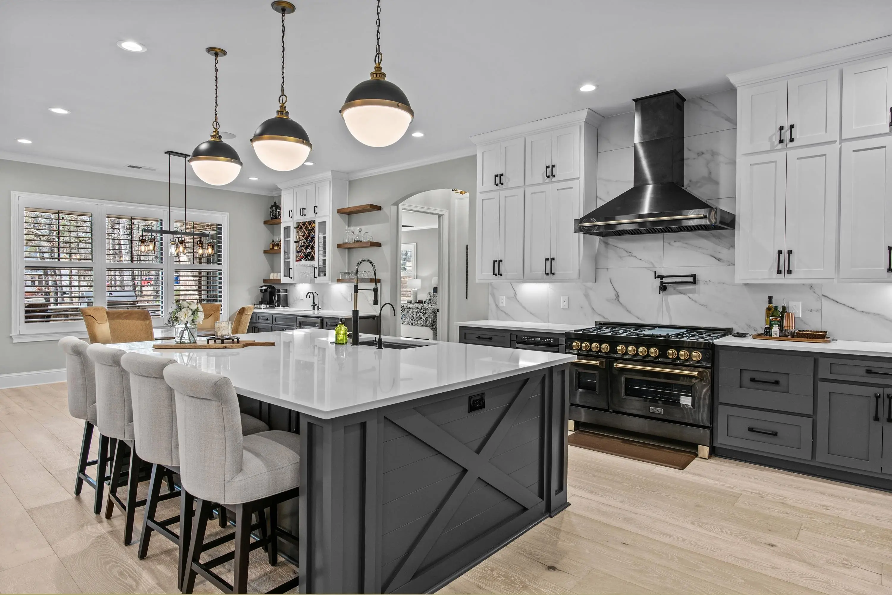 - AppliancesBuilt in Microwave, Dishwasher, Double Ovens, Freezer, Range, Refrigerator, Vent Hood, Wall Oven, Wine Cooler, StainlessSteel Appliances
