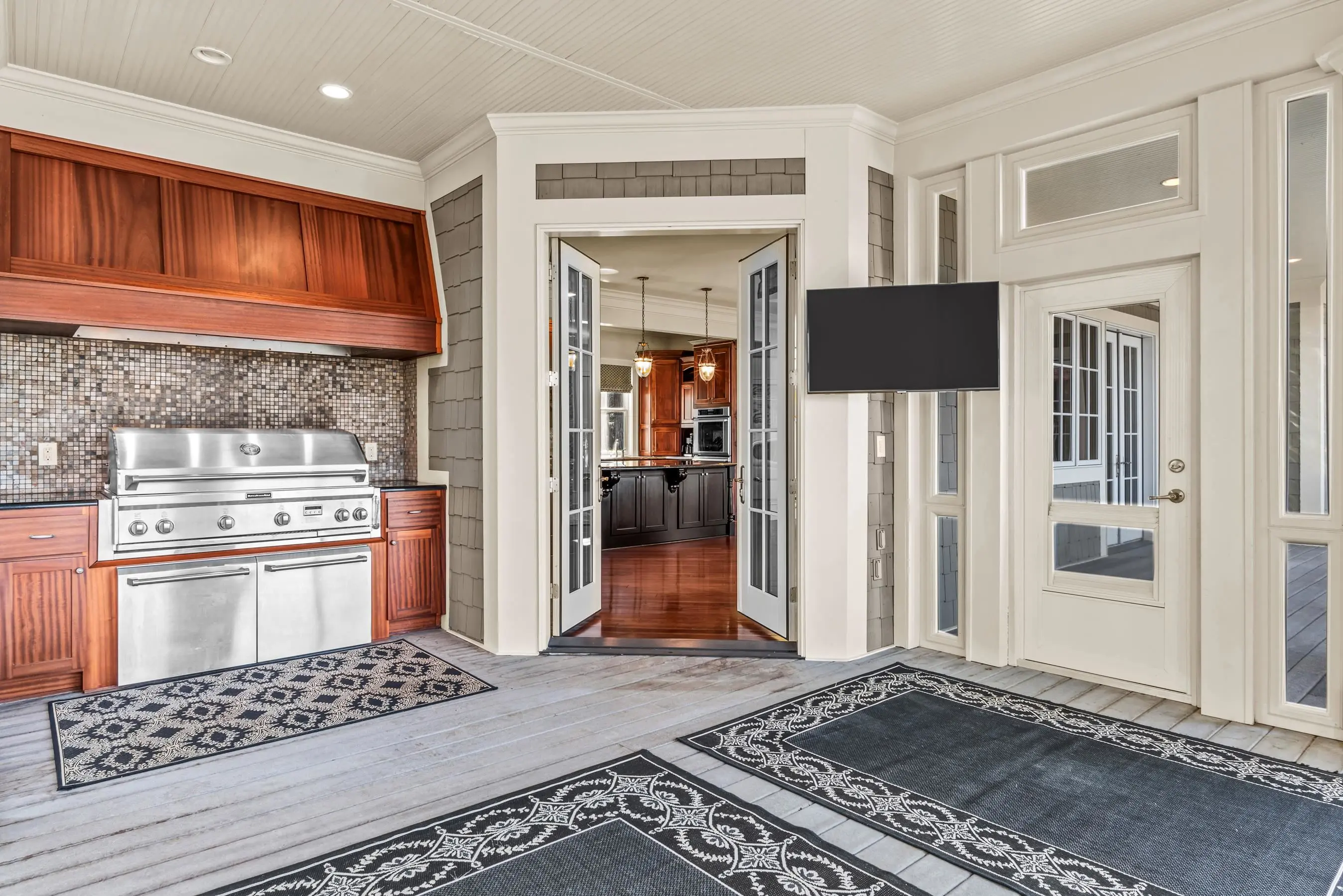 - Exterior FeaturesCovered Deck, Covered Patio, Screened Porch, Storage Room