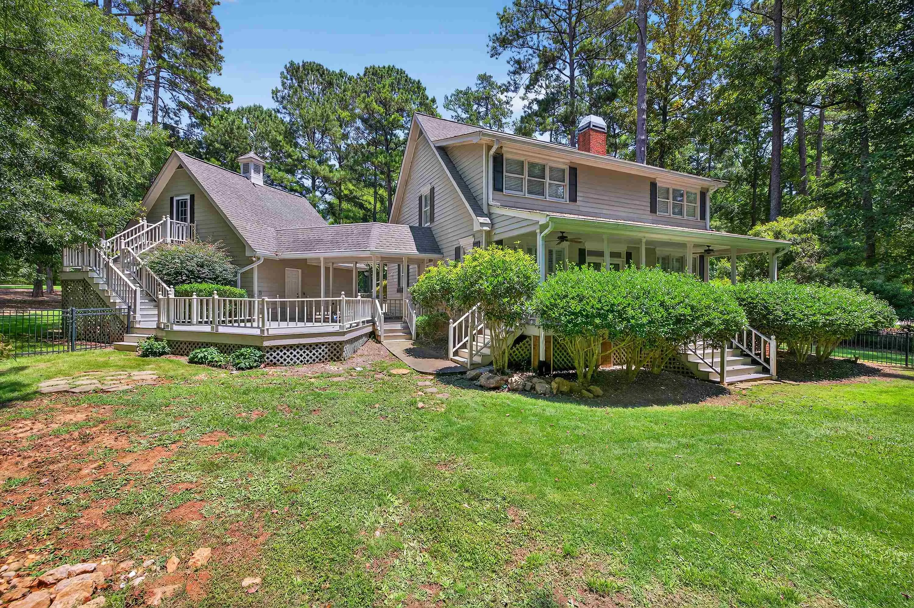 Great Lake Access home in the quiet Bennett Springs section of Reynolds Lake Oconee. Distant views of the Lake and day use docks about 200 yards away from the back fenced yard. Nice updated kitchen with lots of storage, SS appliances, granite counters, breakfast bar and newer cabinets, all with pull out drawers for maximum usage. Hardwood floors throughout the lower level except for Master Bedroom. Wall of windows with Plantation Shutters bring in lots of natural sunlight and the beautiful wooded surroundings. Updated Master bath with walk in closet, laundry room, double sinks and walk in Shower. Upstairs has 2 large bedrooms, with large J&J bath and two other bonus rooms for offices, gym etc. This home offers large covered porches with a large deck entertaining area between the 2 car garage with ample storage above the garage. Nice lake view from the back porch to the common area leading to the Lake. A membership opportunity is available to enjoy all the great amenities of Reynolds. Value, privacy, views and setting make this affordable Reynolds home hard to beat.