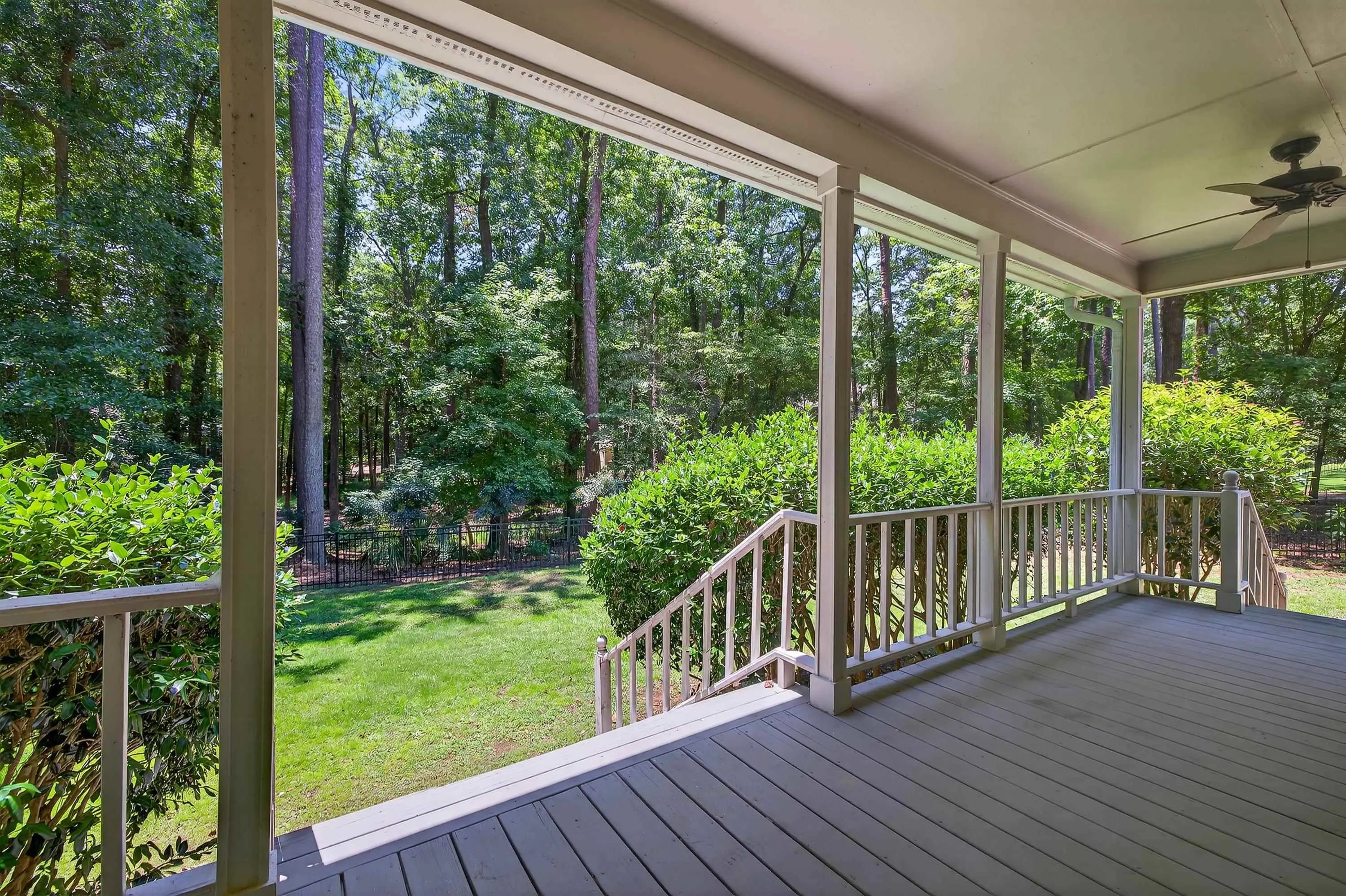 - Exterior FeaturesCovered Deck, Covered Porch, Deck, Storage Room