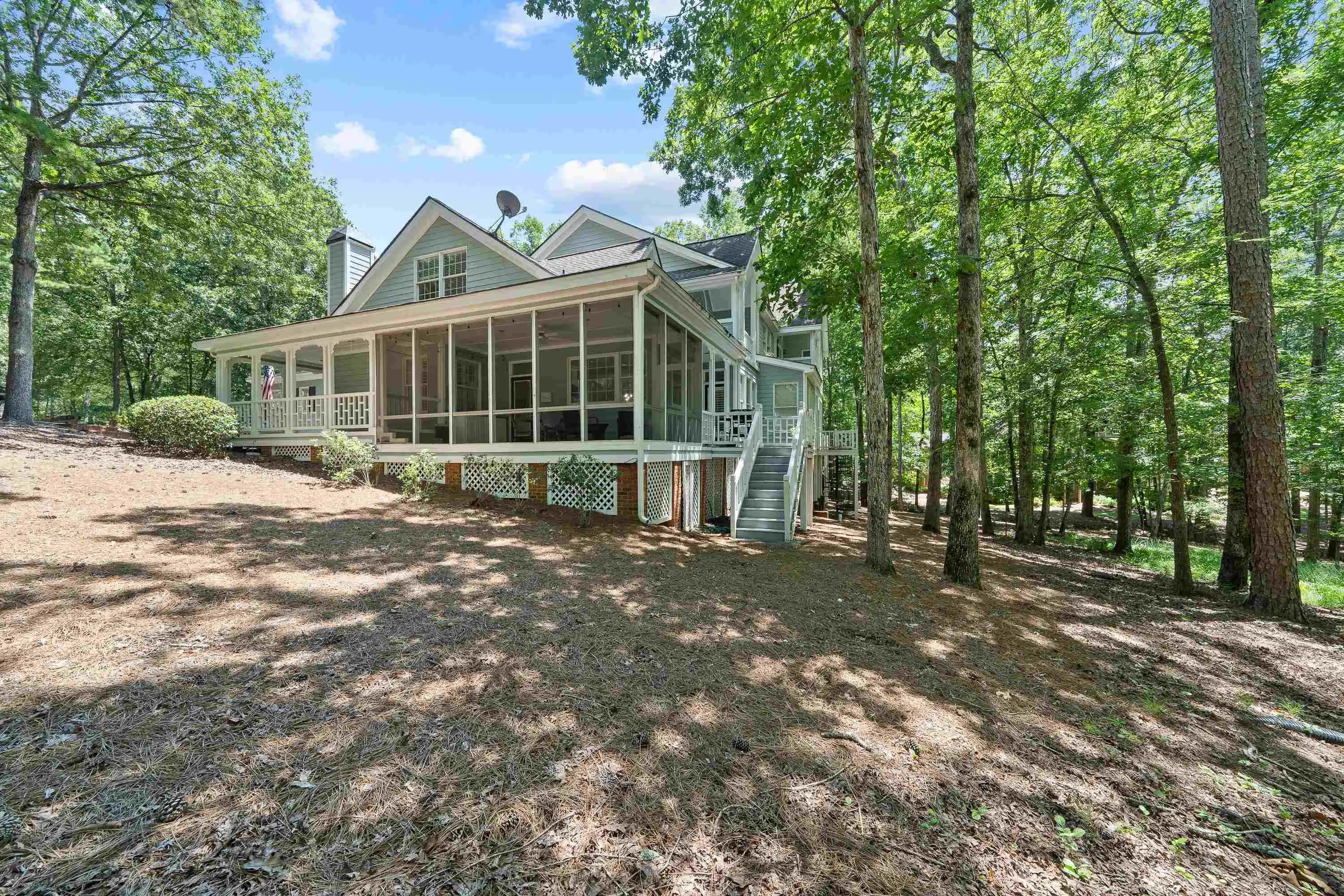- Exterior FeaturesCovered Deck, Covered Porch, Porch, Screened Porch