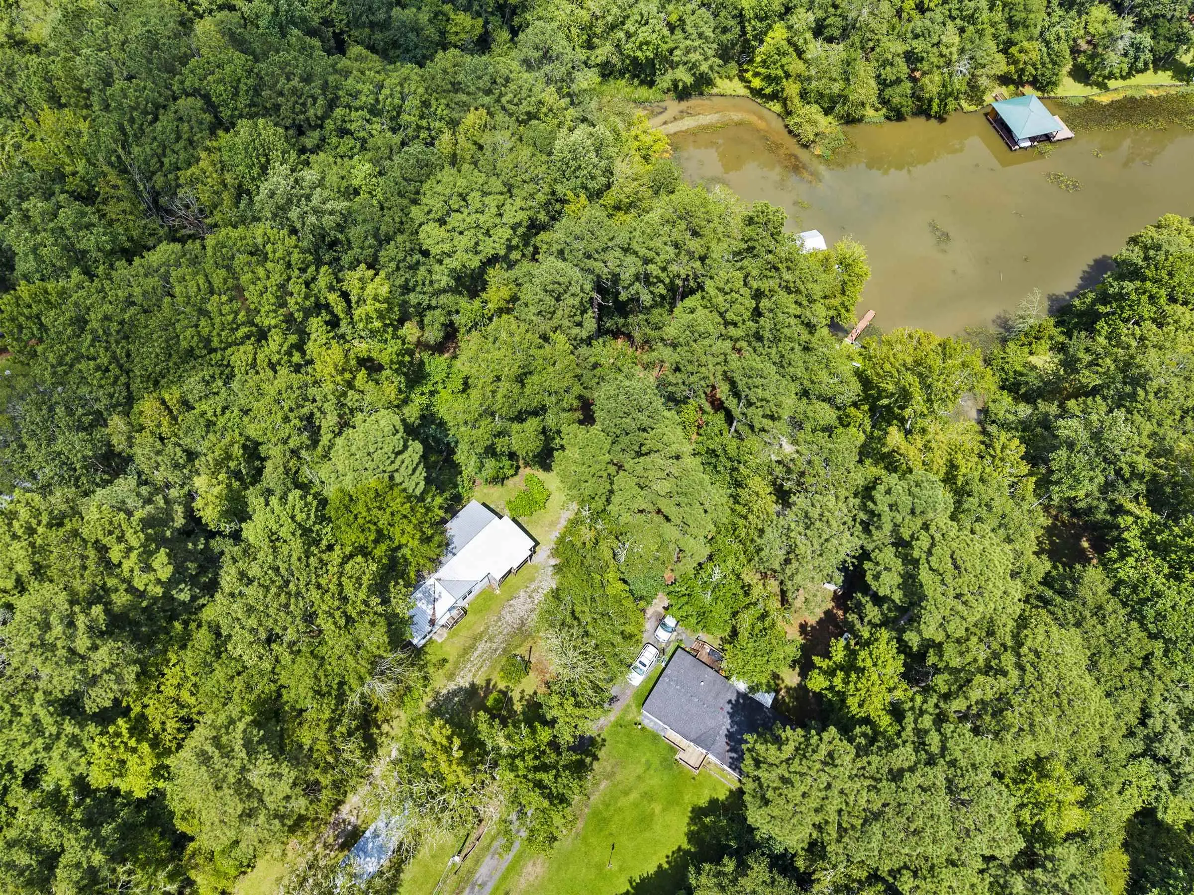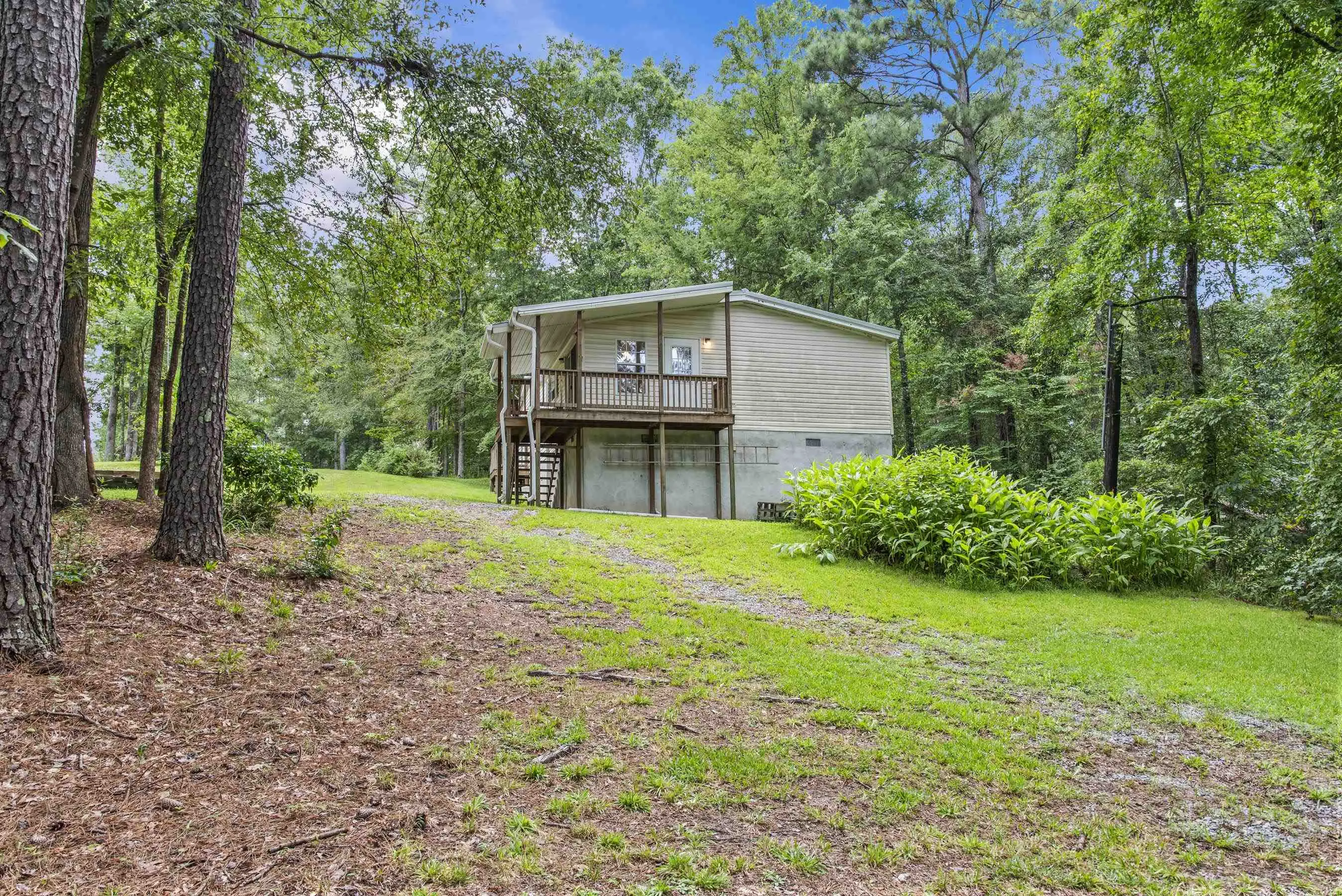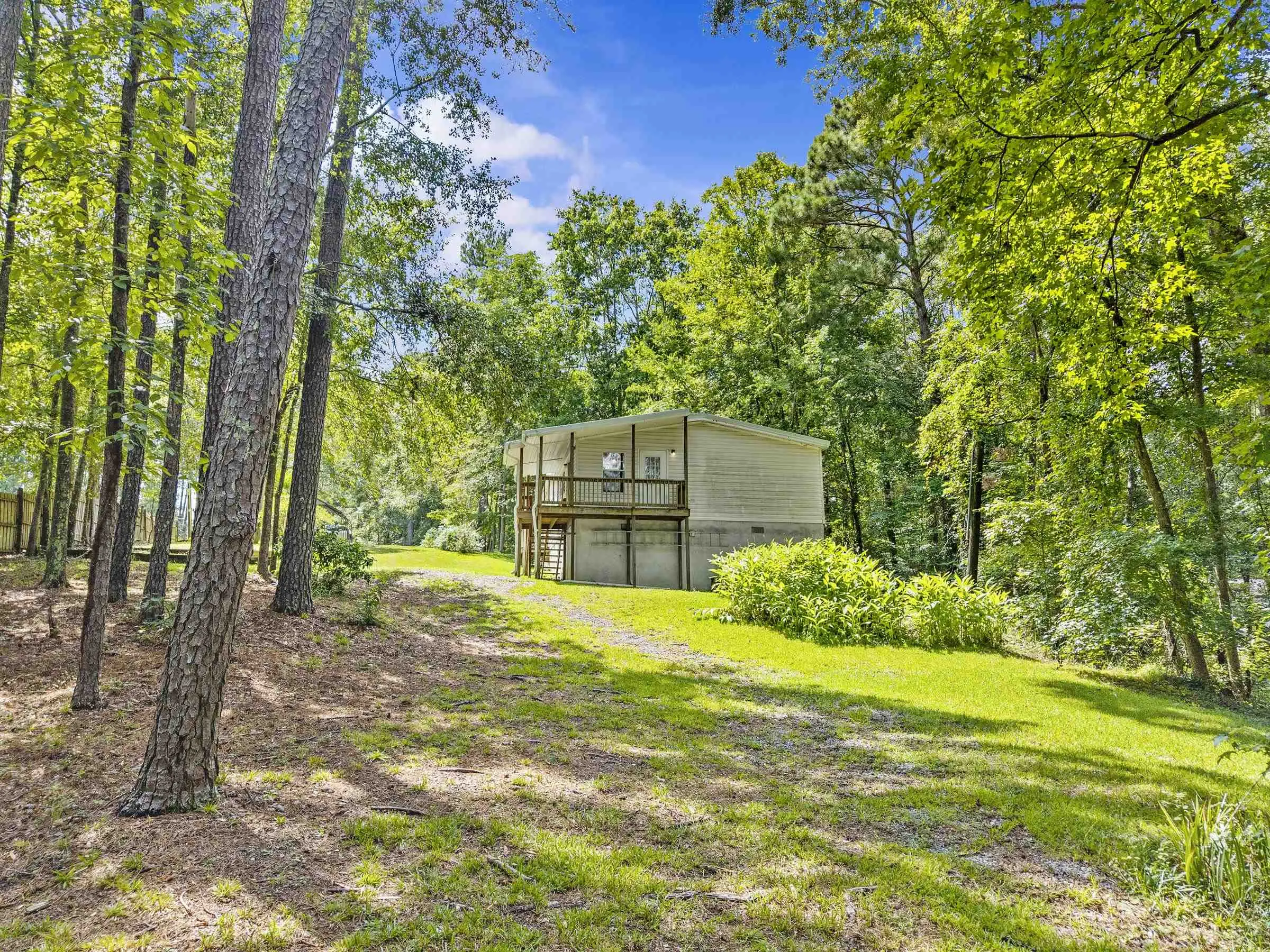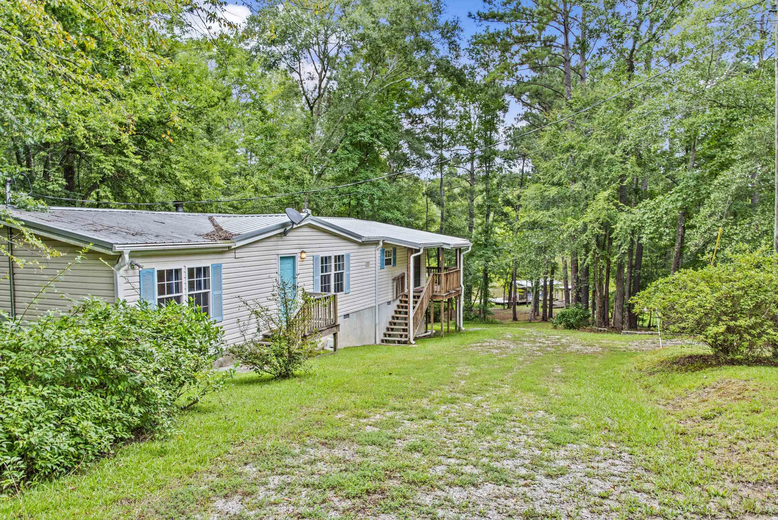 2+ acre fee simple lot on Lake Sinclair! Lots of land and spread out space! Gentle slope to water. Single boathouse in place - 2002 doublewide home in good condition and sold fully furnished! Crawl space recently encapsulated - great extra storage space. Toothbrush ready!