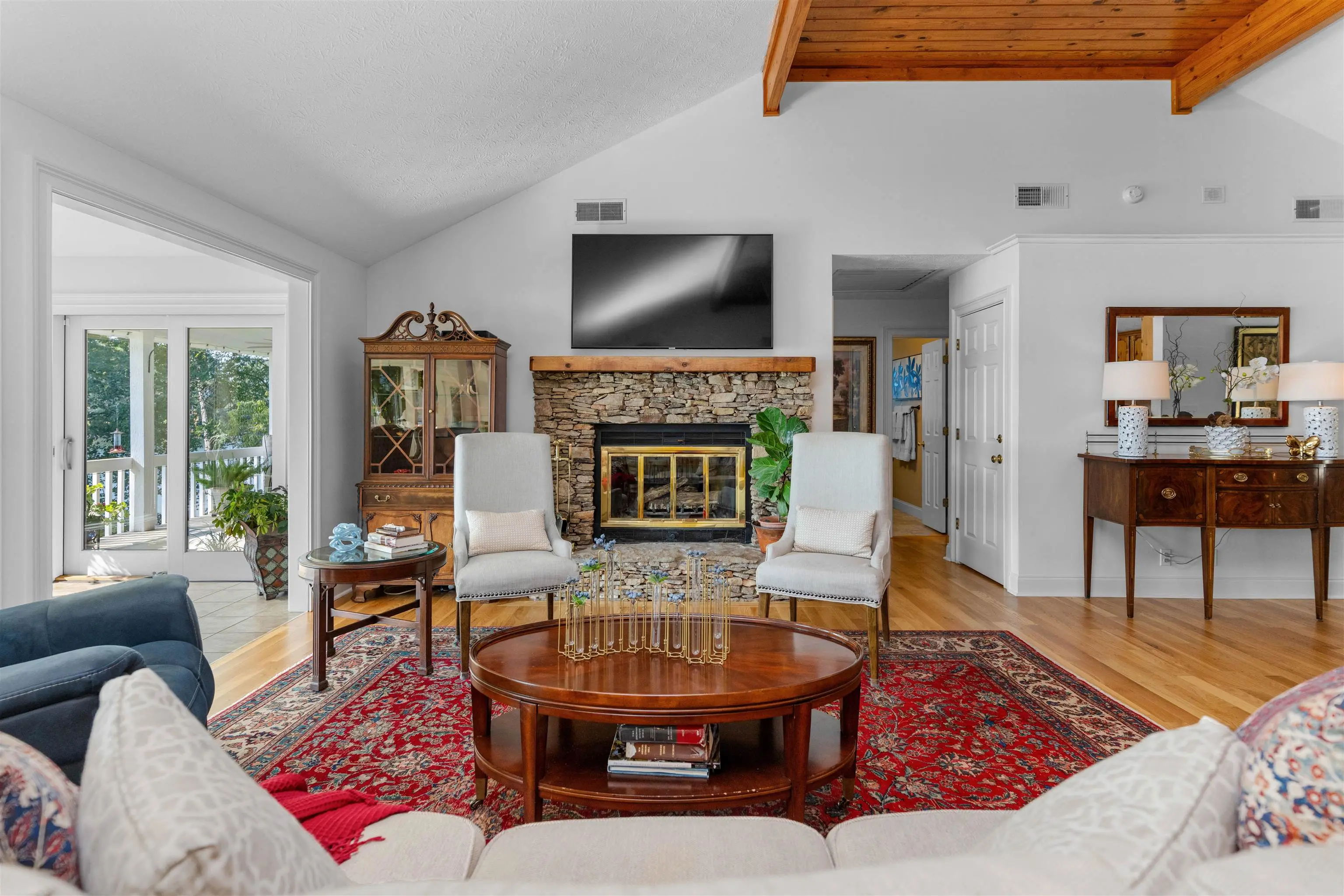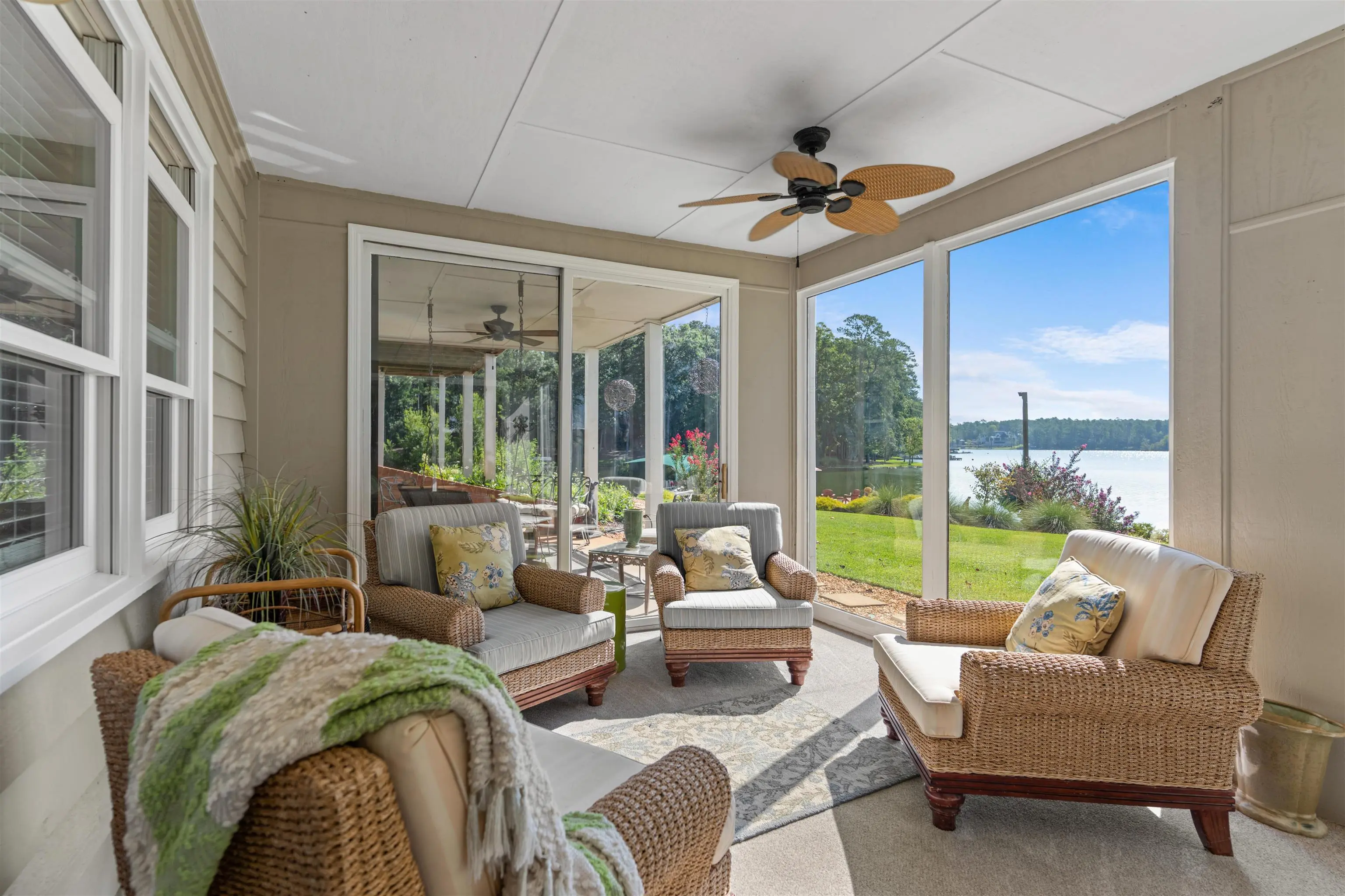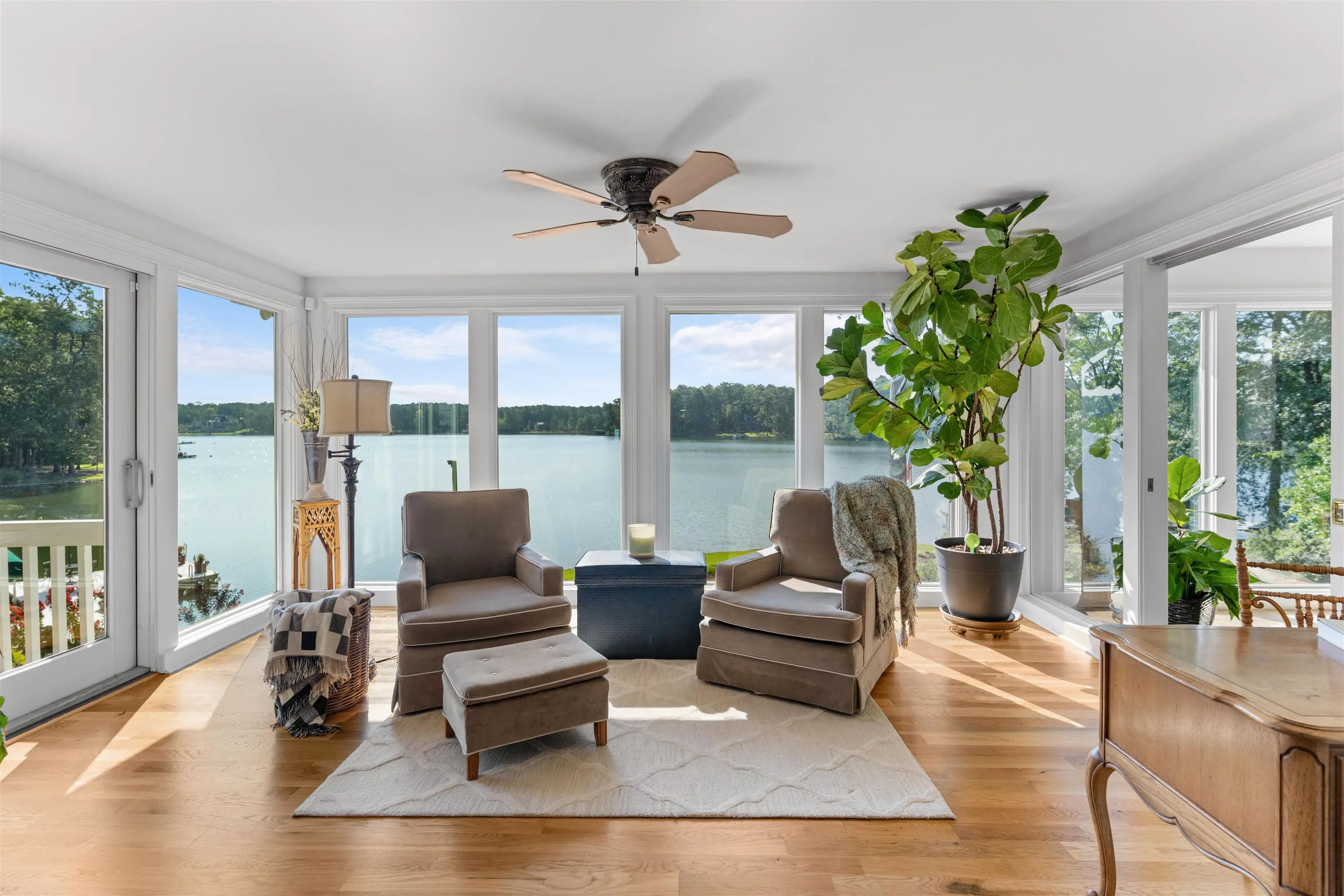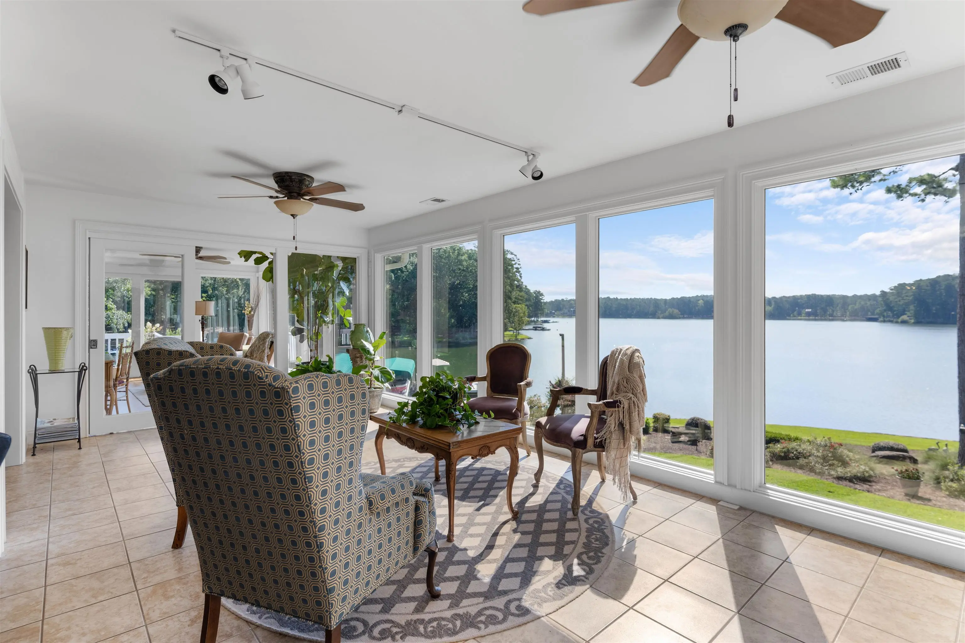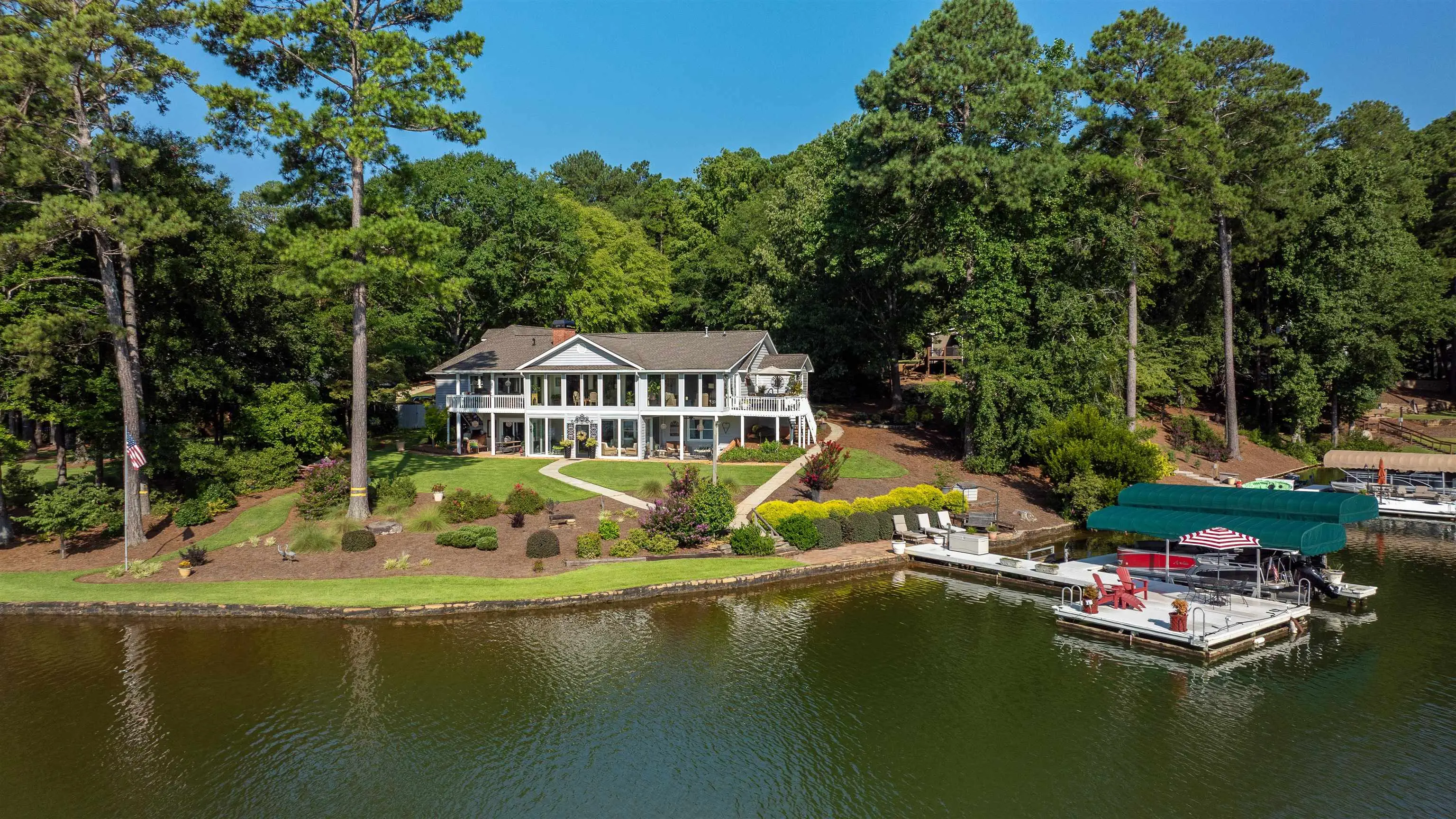 0.8 mi to Richland Connector • 0.3 mi to Walker Church Rd • Across from Reynolds Homesteads • Deep Water Dock (12+ ft) • Sunrise Views over Lake Oconee • 3D + Video Tours Included Spectacular lakefront home on the Richland side of Lake Oconee offering over 200 ft of water frontage, panoramic 180° sunrise views, and deep water at the dock (12+ ft)—a perfect blend of luxury and lake life. Located directly across the cove from The Homesteads Estates of Reynolds Lake Oconee and a short boat ride to the Ritz-Carlton Lake Oconee, this custom timber-frame residence sits on a beautifully landscaped 0.96-acre lot with granite seawall, vinyl Max dock, two boat lifts, and a jet ski lift. The main level showcases an open-concept design with hardwood floors, stone fireplace, and great room that opens to a sunroom overlooking the lake. The gourmet kitchen includes granite countertops, breakfast bar, cooktop, wall oven, built-in microwave, and gas line option. A formal dining room connects seamlessly to the great room and features lake views. The private office with exterior entry provides flexible workspace. The primary suite on the main level offers stunning lake views, deck access, an updated spa-style bath, dual sinks, soaking tub, separate shower, and custom built-ins. The terrace level is designed for entertaining with a second kitchen, family room, sunroom, guest bedroom, cedar closet, bunkroom, and lakefront storage. A bonus/flex room sits above the secondary two-car garage, ideal for guests, hobbies, or home gym. Outdoor living includes covered porches, grilling deck, and covered patio by the water—ideal for dining and relaxation. Additional highlights: irrigation system with lake pump, whole-house water softener, security system, tankless water heater, two HVAC units, deer fencing, attic fan, and professional landscaping. Conveniently located near Lake Oconee Village shopping, Publix (8 mi), and Lake Oconee Academy (7 mi). Experience luxury lakefront living close to the best amenities in Greene County. Includes 3D walkthrough and video tour links in MLS.