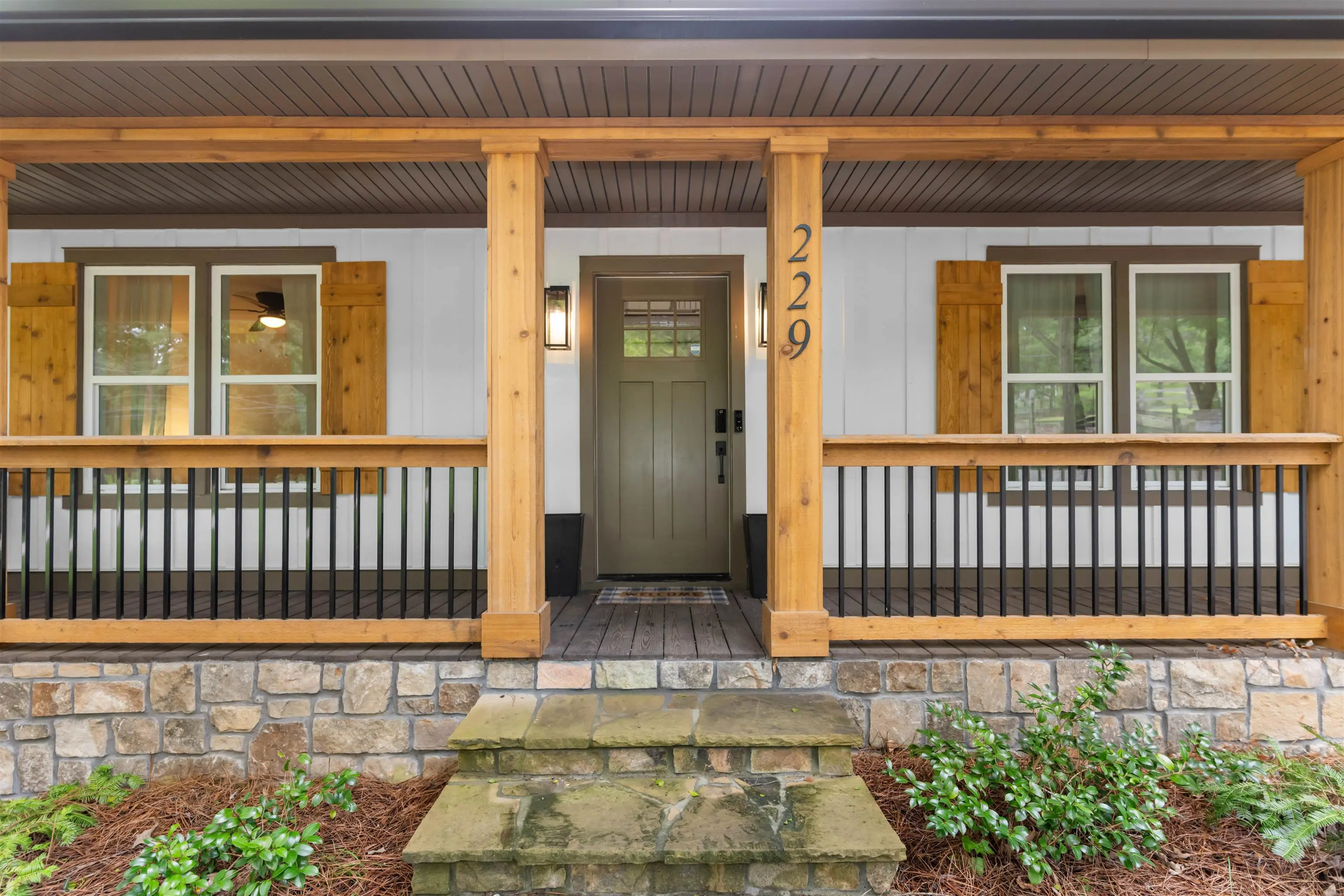 - Exterior FeaturesCovered Deck, Covered Porch