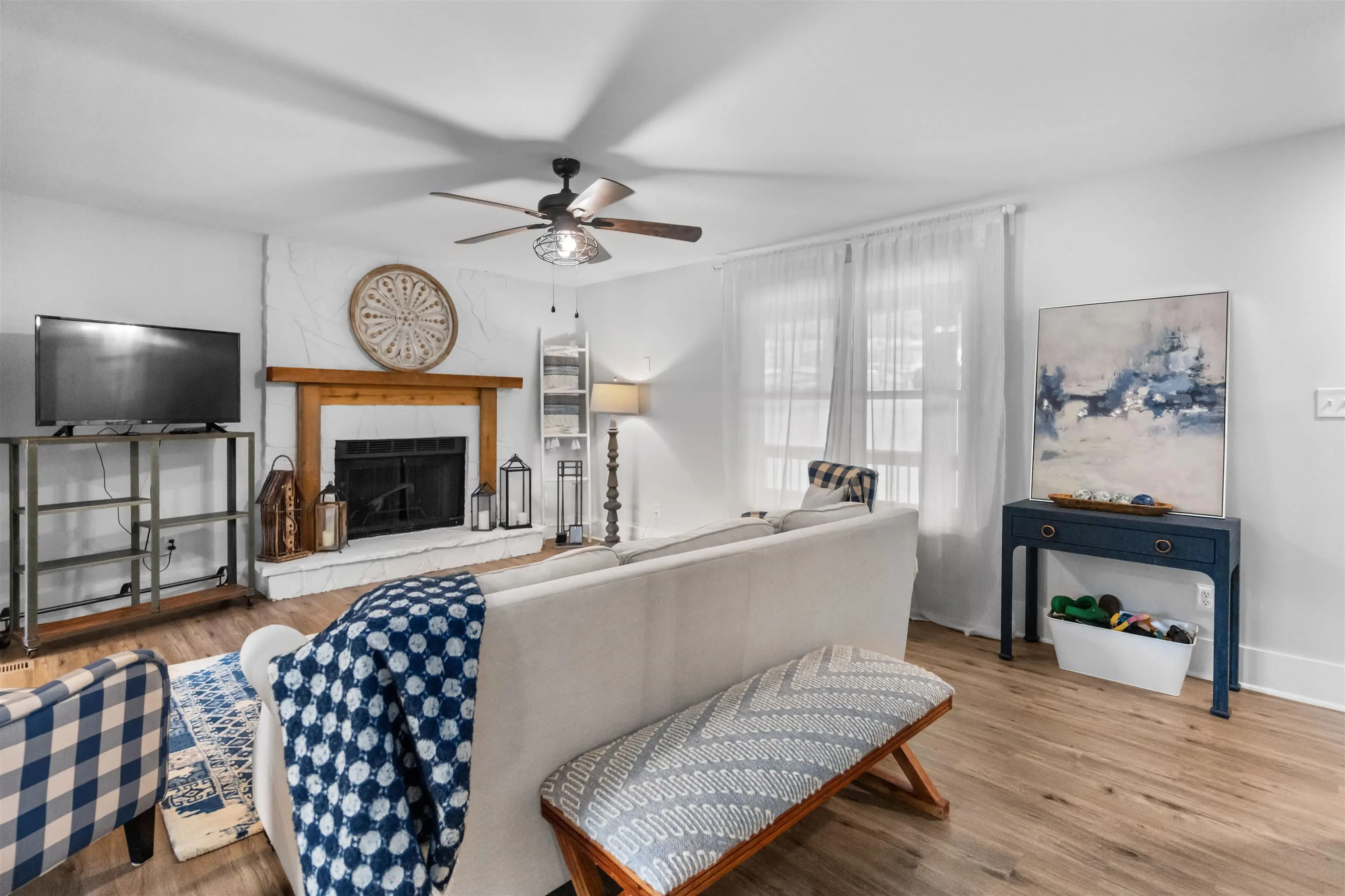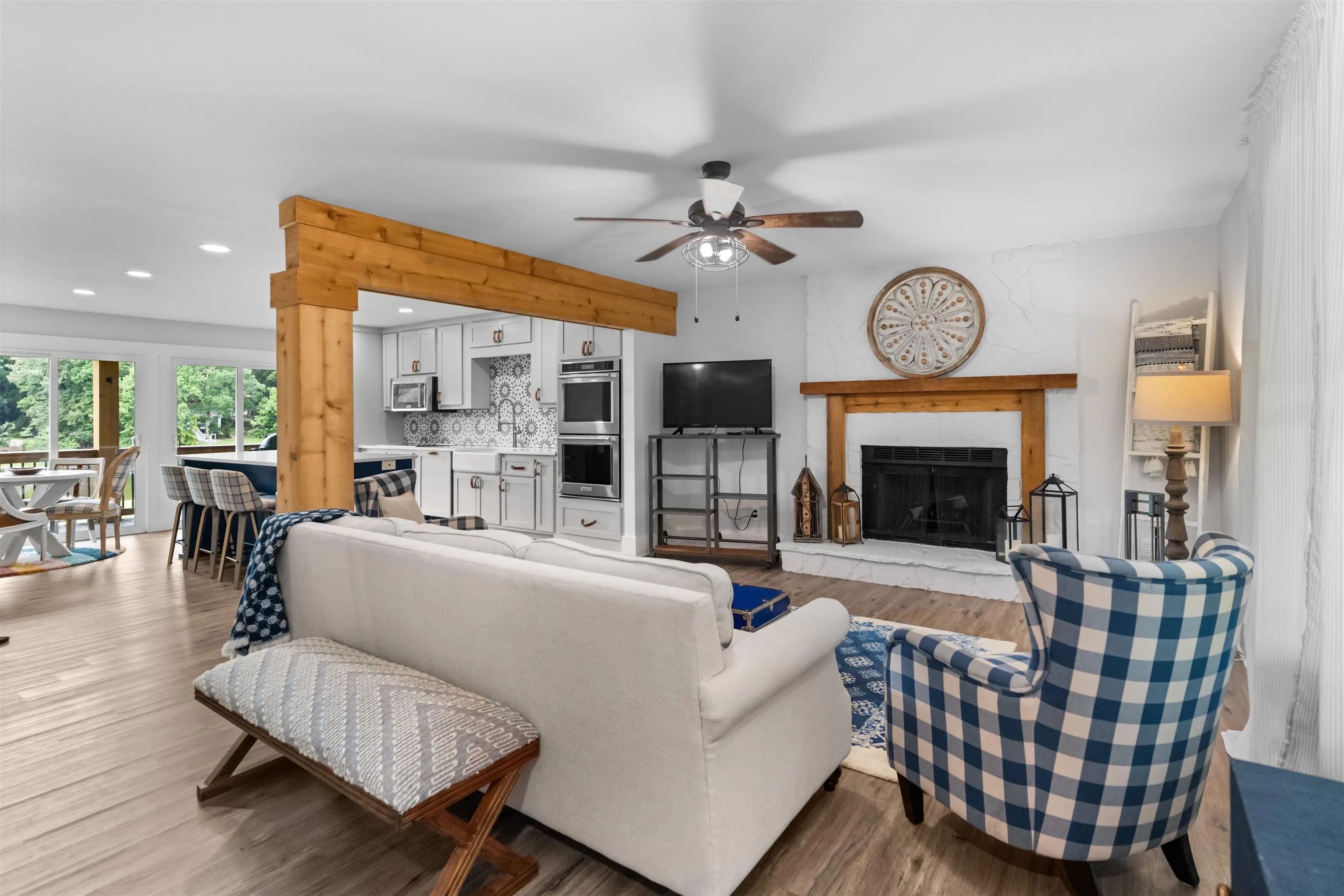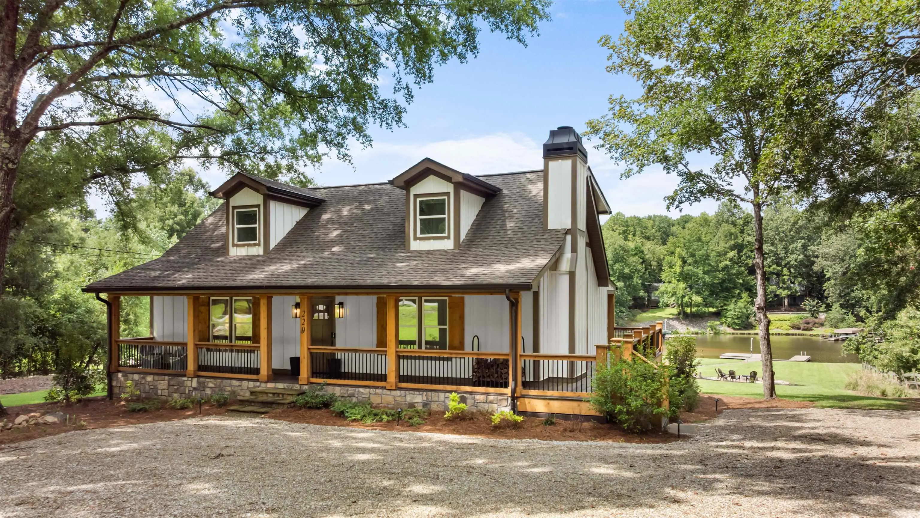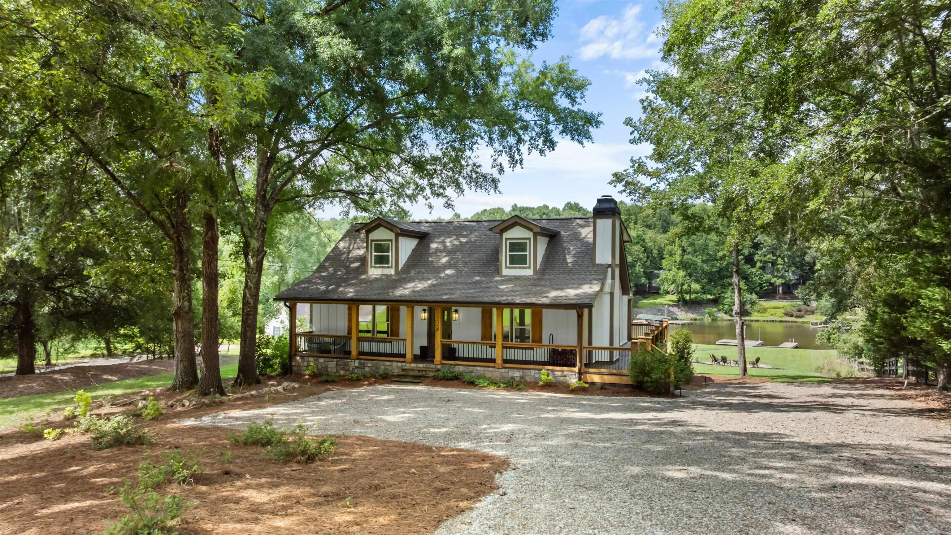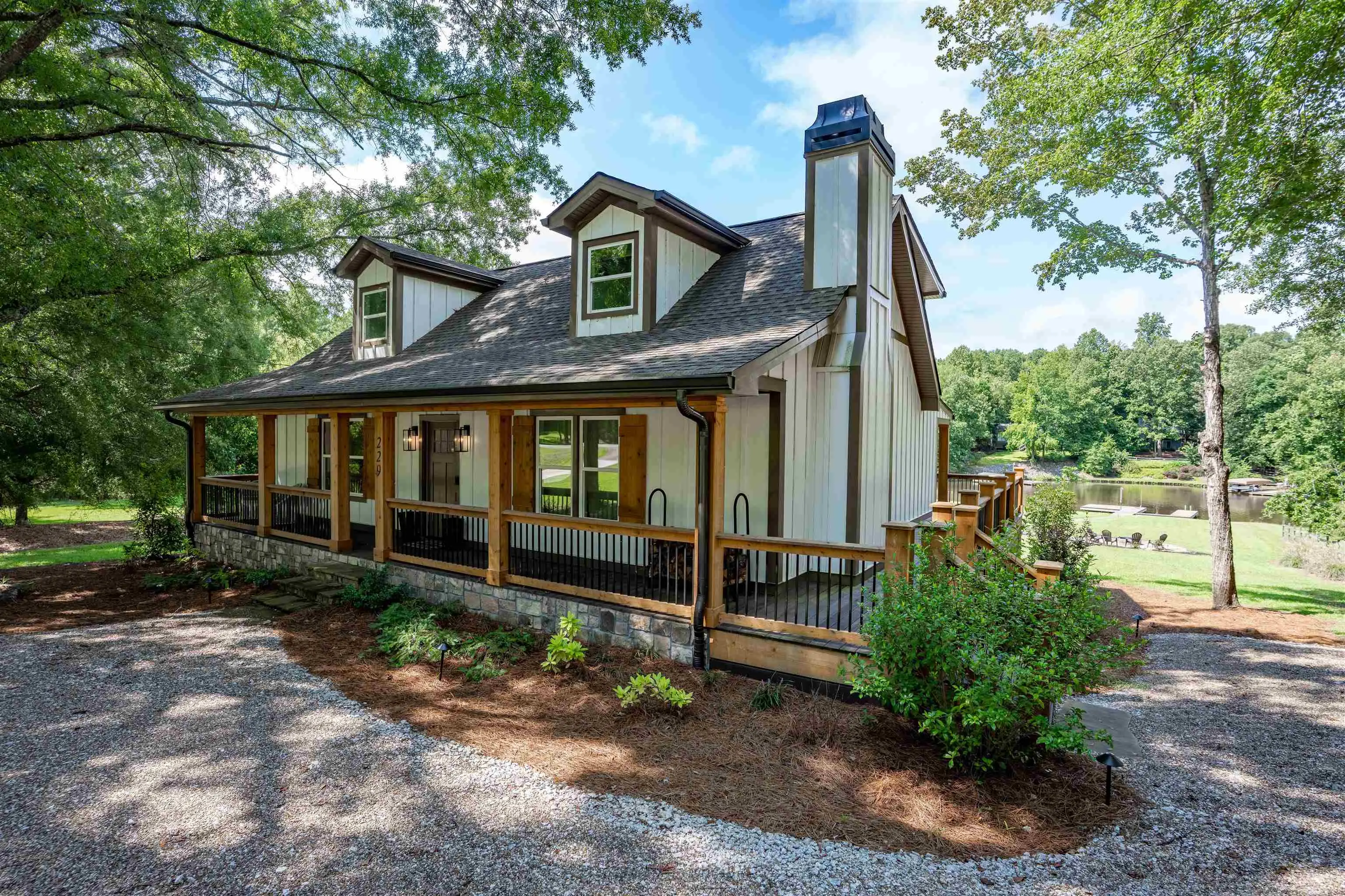 Your dream lake house is here—welcome to East River Bend! Set on a level waterfront lot in the heart of Lake Oconee, this stunning home has been completely renovated from top to bottom and feels brand new. The exterior shines with Hardie siding, cedar-trimmed columns, new doors and windows, and fresh landscaping with a cozy fire pit. A crushed slate pathway leads to the dock with cleats, lighting, and a seawall—perfect for enjoying life on the water. The expansive back deck, complete with stone accents and an extended covered porch, offers year-round outdoor living. Inside, the chef’s kitchen impresses with a farmhouse sink, high-end appliances, custom cabinetry with leather pulls, a navy island, and a custom bar and pantry. Every bathroom has been updated with modern tile, vanities, and fixtures, while new flooring, trim, baseboards, lighting, and ceiling fans carry a fresh, stylish look throughout. Comfort is assured with a new water heater, HVAC systems, and ductwork. With space for a pool and or detached garage, easy access to local attractions by car or boat, and every upgrade already done, all that’s left is to move in and start enjoying lake life!
