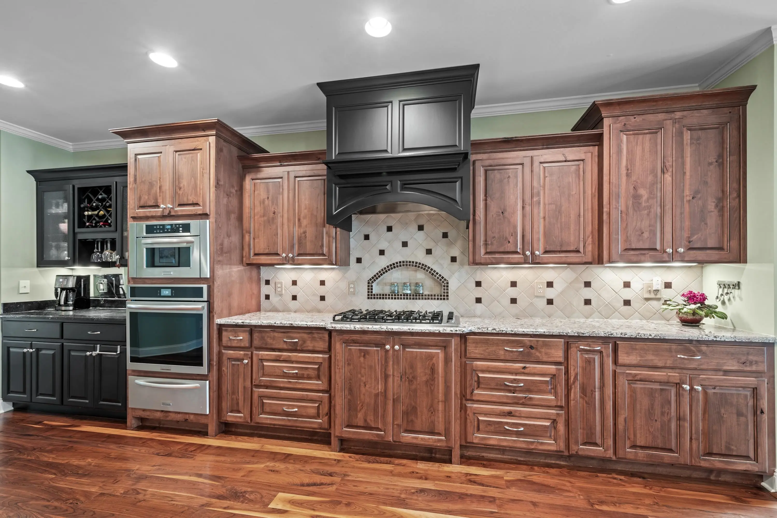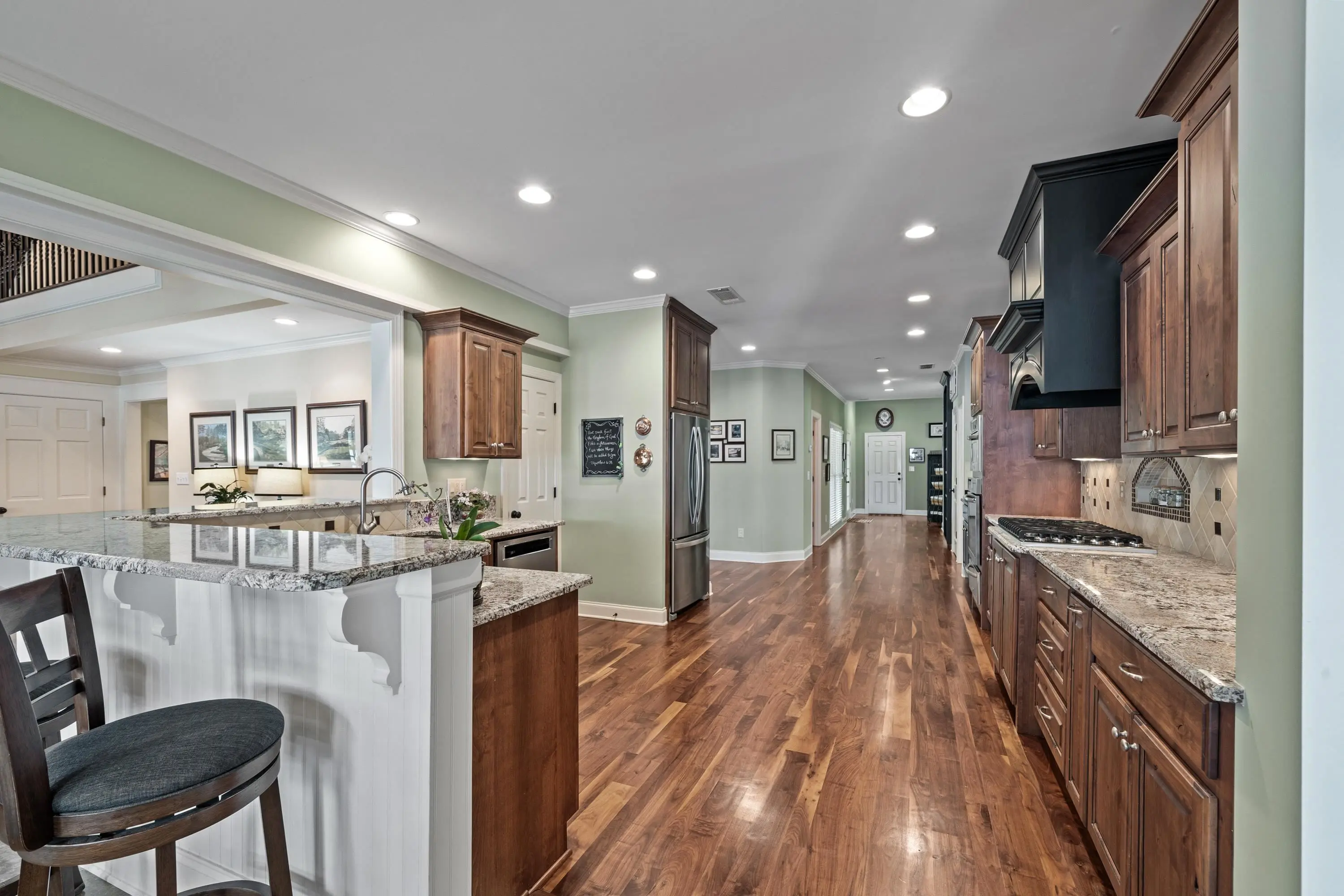 - AppliancesBuilt in Microwave, Cook Top, Dishwasher, Refrigerator, Vent Hood, Wall Oven, StainlessSteel Appliances