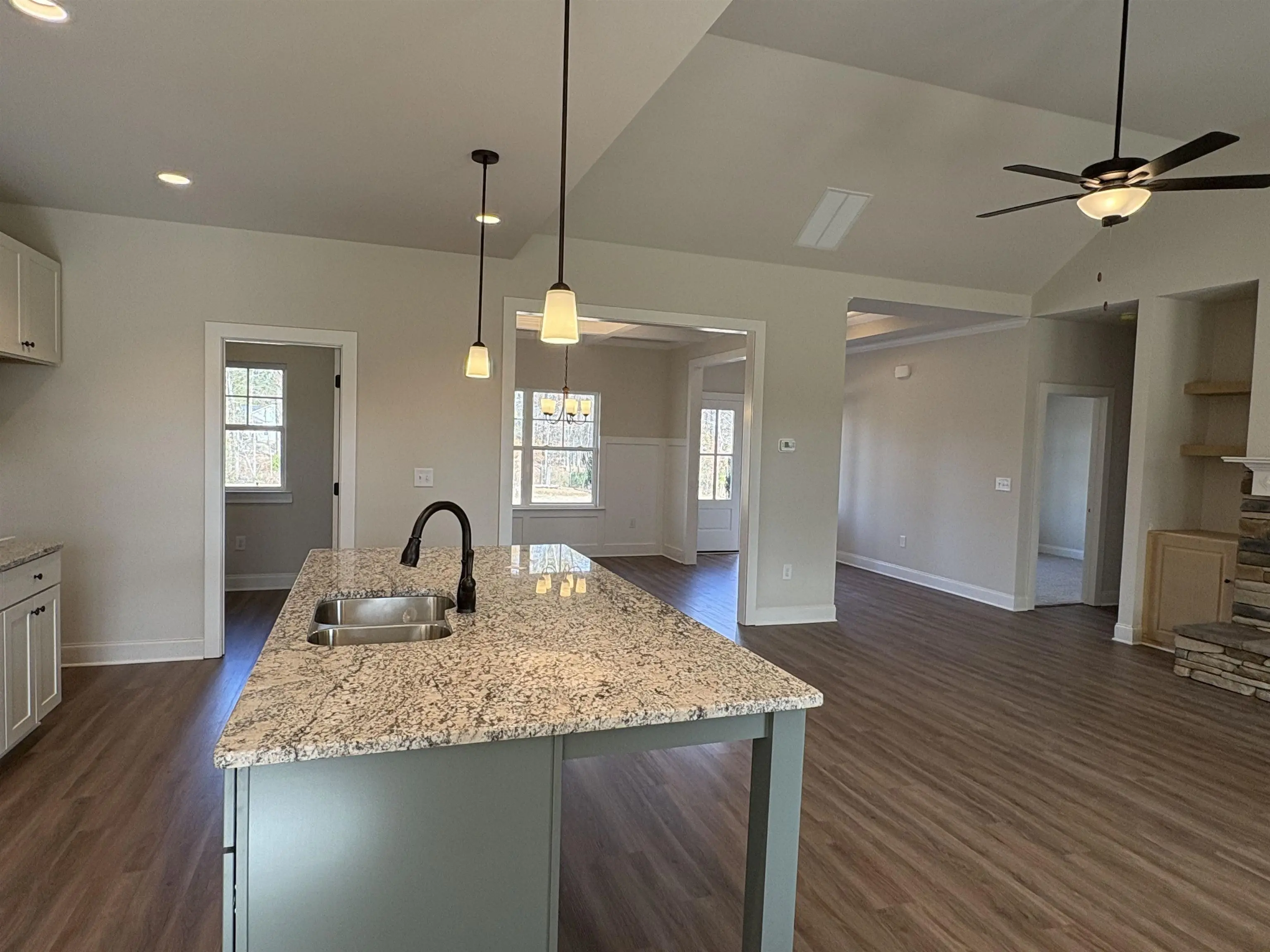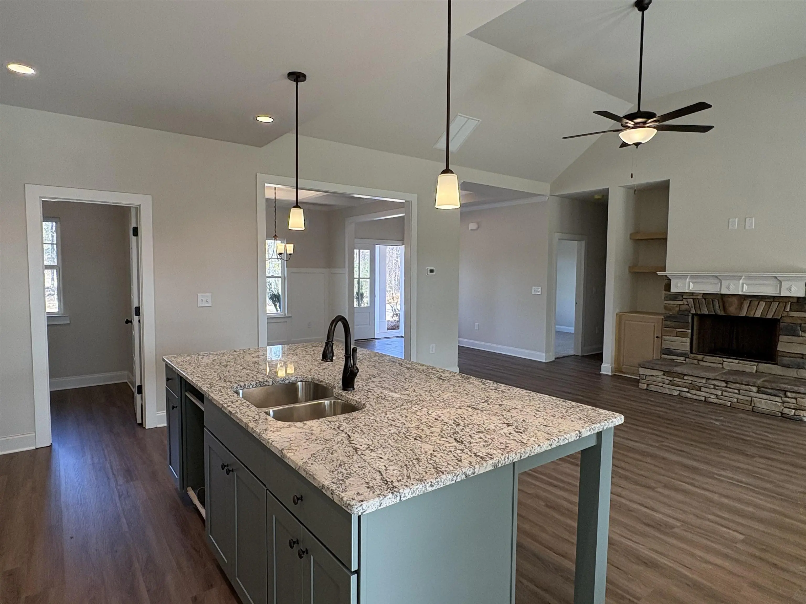 Discover the charm of the Beaufort plan in the highly sought-after Meadow Crest Subdivision. This brand-new 4-bedroom, 3.5-bath home spans 2,694 sq. ft. and is ideally situated in a quiet, upscale neighborhood just minutes from Lake Oconee, shopping, dining, and boat ramps. Step inside to an open floor plan featuring a large island kitchen with a walk-in pantry, stylish cabinetry, stainless steel appliances, and granite countertops. Enjoy meals in the breakfast area or in the separate dining room, which boasts a beautiful coffered ceiling. The vaulted great room is a cozy gathering space with fireplace and built-in shelving. The main-level primary suite offers a trey ceiling, a luxurious bathroom with a separate tub and shower, dual sinks, and an expansive walk-in closet. Also on the main floor are two additional bedrooms with walk-in closets and a shared Jack & Jill bathroom, along with a convenient laundry room and powder room. The fourth bedroom or study with a full bath is located above the two-car attached garage. Outdoor living is a delight with covered front and back porches perfect for relaxation. The home comes with blinds throughout, sod lawn with sprinkler system, and is located in a quiet neighborhood with streetlights, low HOA fees, and proximity to everything the lake area has to offer. The seller is offering to cover some closing costs when you choose preferred lender Kelly Dover of Cross Country Mortgage.