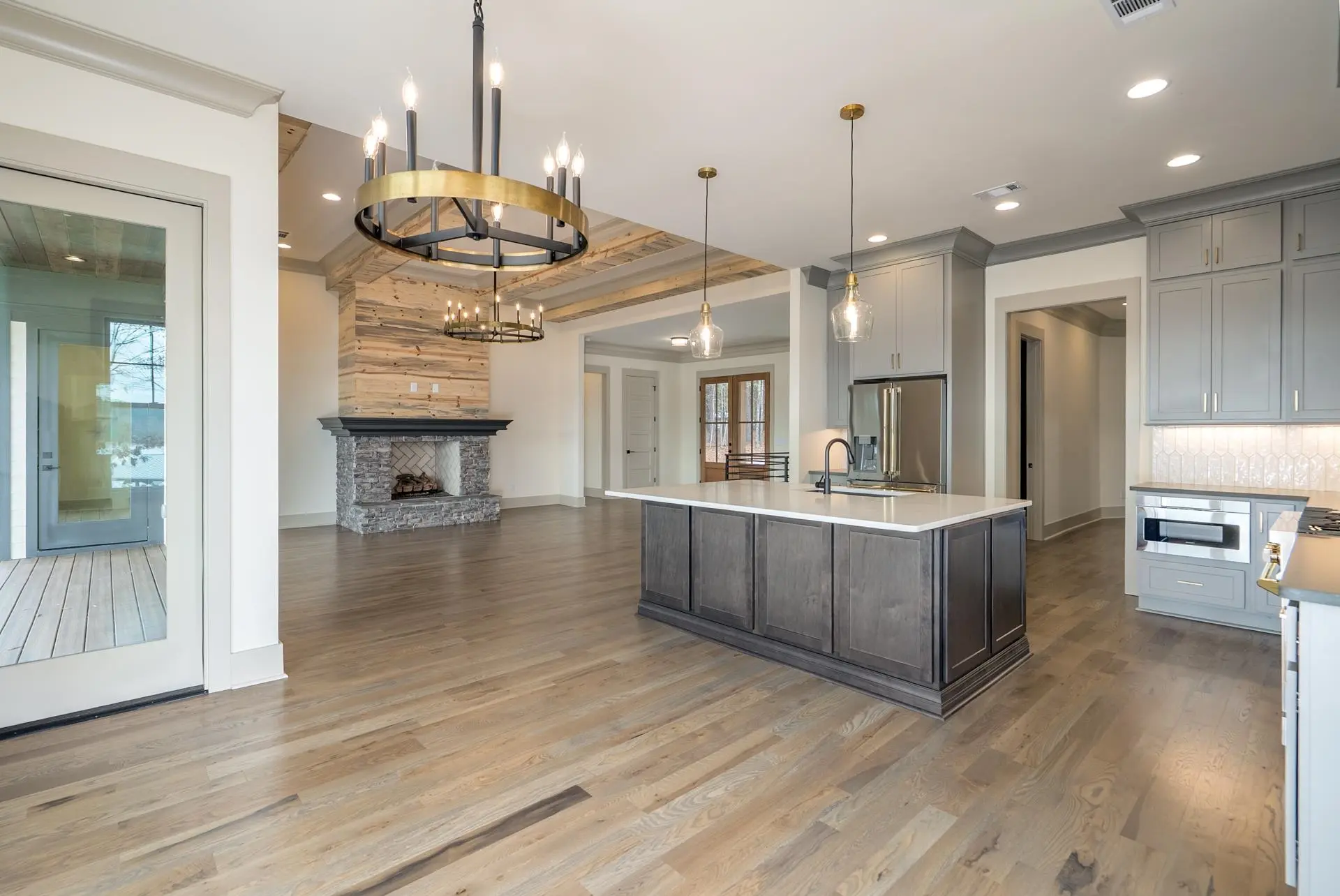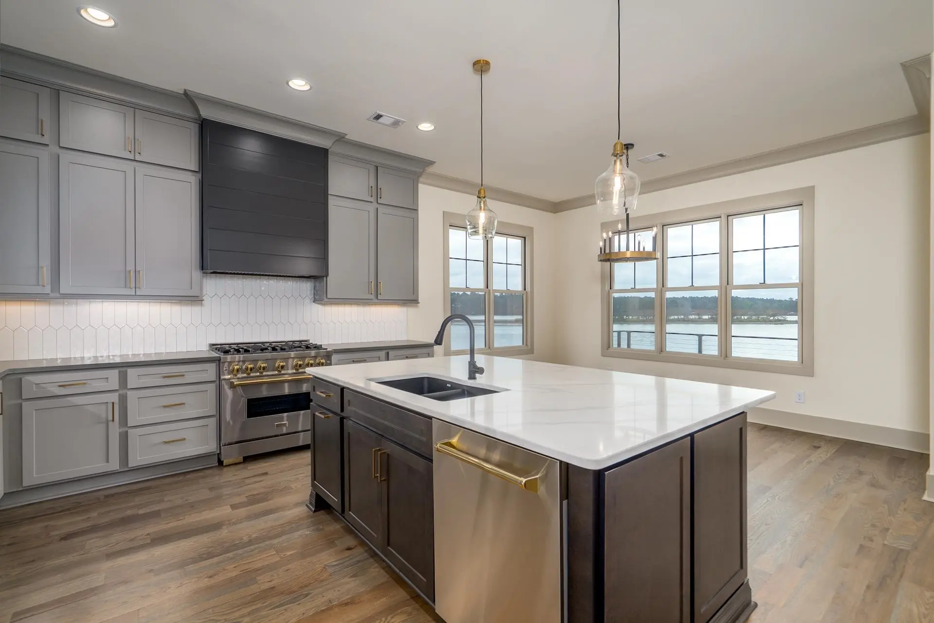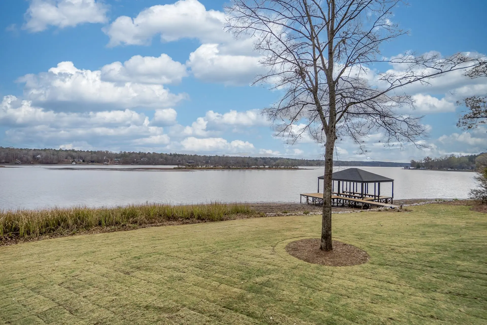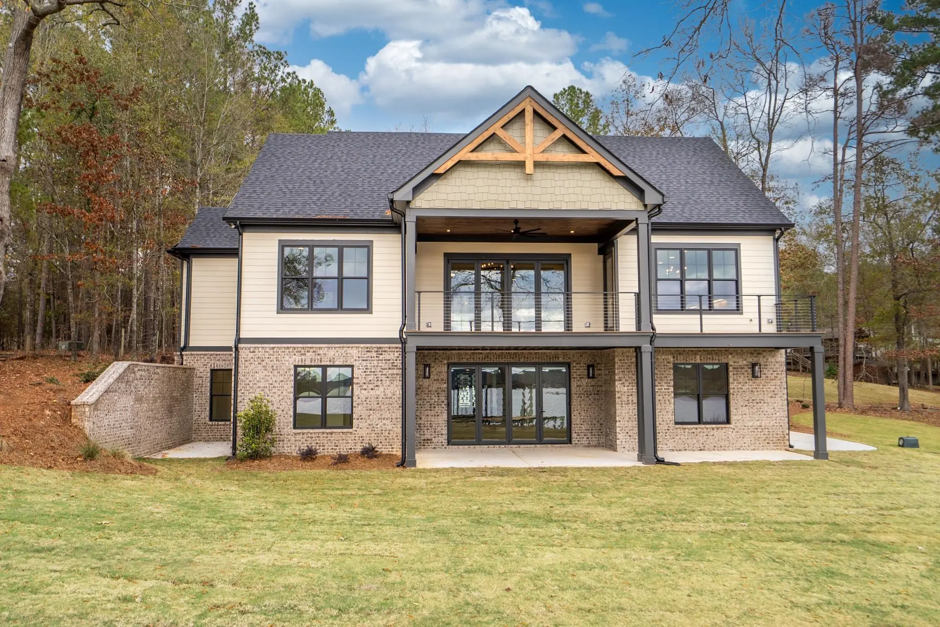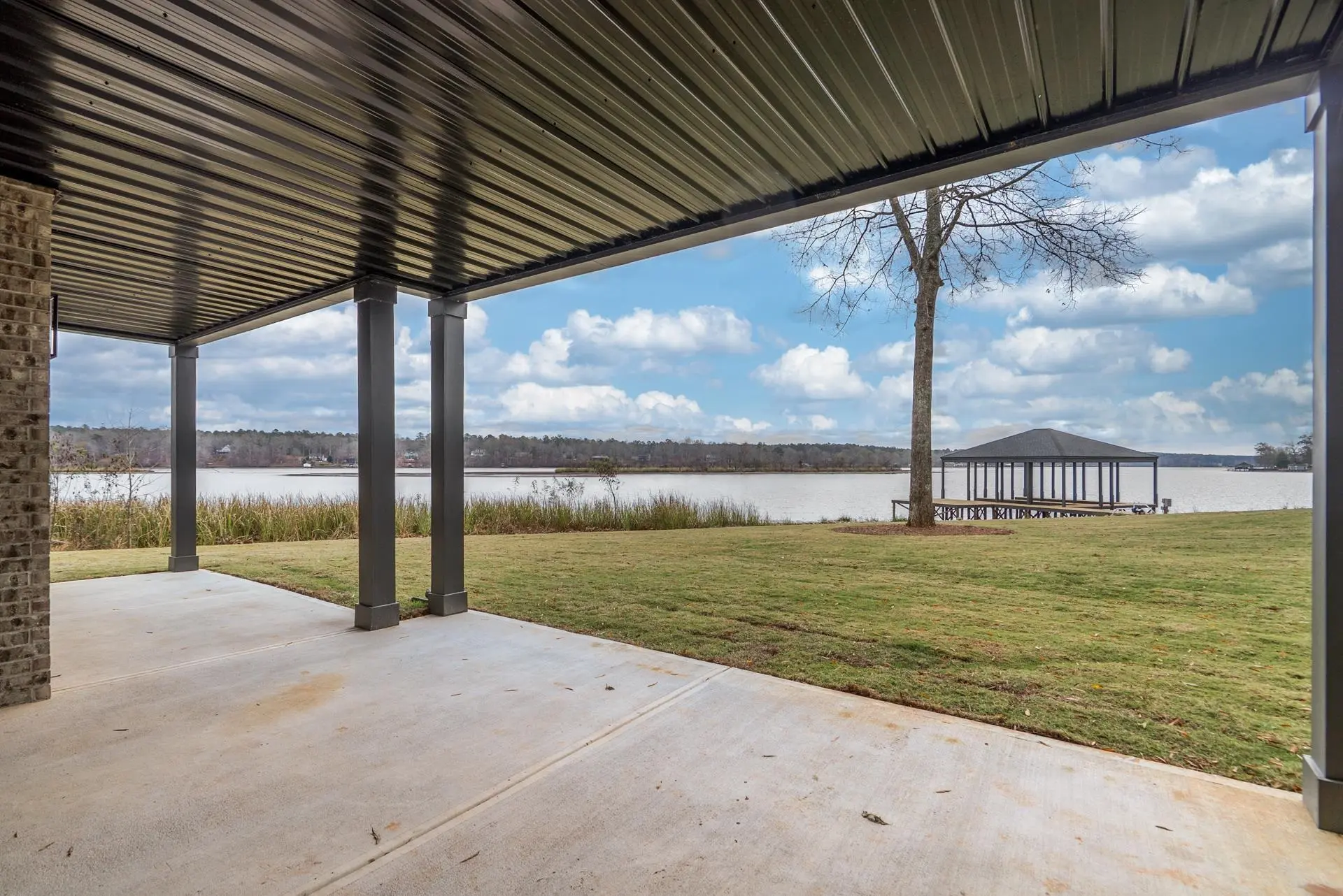 New Construction! This Lake Sinclair waterfront home was completed 12/01/25 and is located on a 1.15 ac point lot that offers sweeping 3 mile main lake views. Brick with Hardie board trim, siding and shakes. 4BR/3.5 BA with master on the main. Oak floors on the main level with custom tile baths. Open plan with 10 ft ceilings and 8 ft doors. Chef's kitchen with custom cabinets, large island, Z line SS appliances and quartz counters. Huge walk in pantry. Large utility/mud room. Great room with stone fireplace highlighted by beamed ceilings and shiplap accent walls. Tile shower with a free standing tub in primary bath. Double vanities with quartz counters. Fold away patio doors that maximize the panoramic lake views and bring the outdoors in. Composite decking with aluminum rails and cable with no pickets to block the view. 3 BR/2 Ba on the terrace level with LPV flooring and custom baths. Entertainment room with a wet bar and beverage fridge. Massive flex room that could be used as a home theater or a very spacious bunk room(5th BR). Covered patio. 2 car garage. 5 ft depth at double boat shelter. Professionally landscaped yard with lake pump irrigation system. One year home warranty.