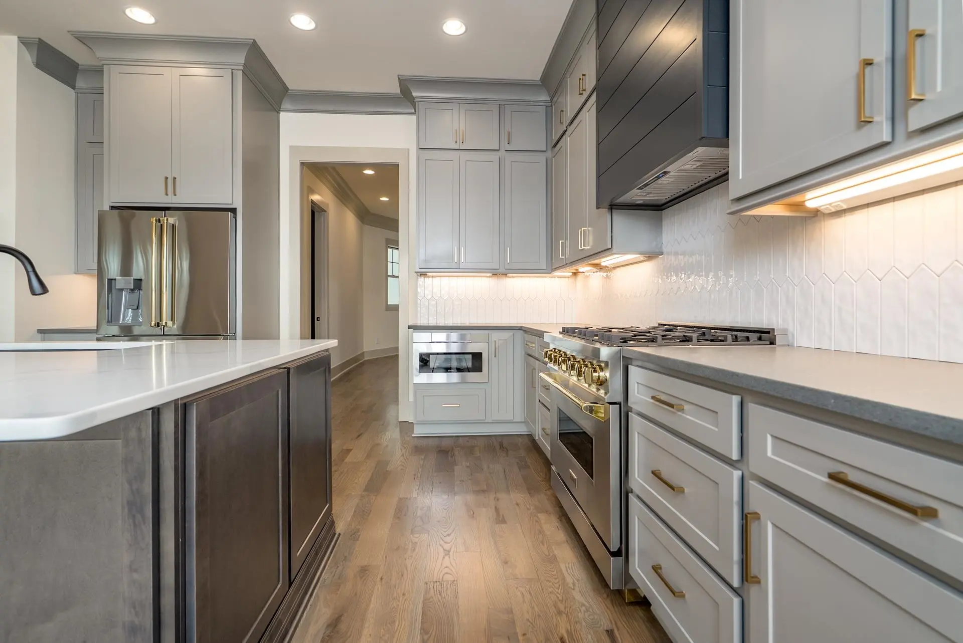 - AppliancesBuilt in Microwave, Dishwasher, Range, Refrigerator, Vent Hood, StainlessSteel Appliances