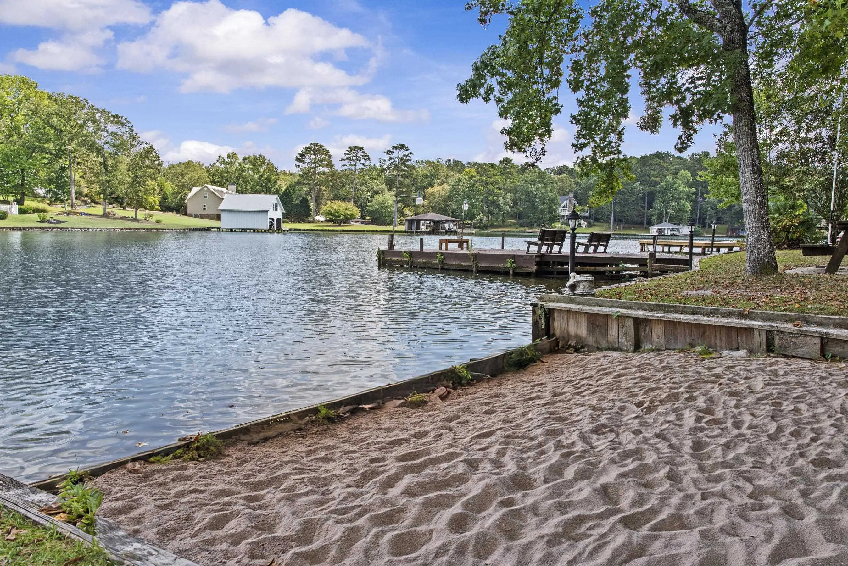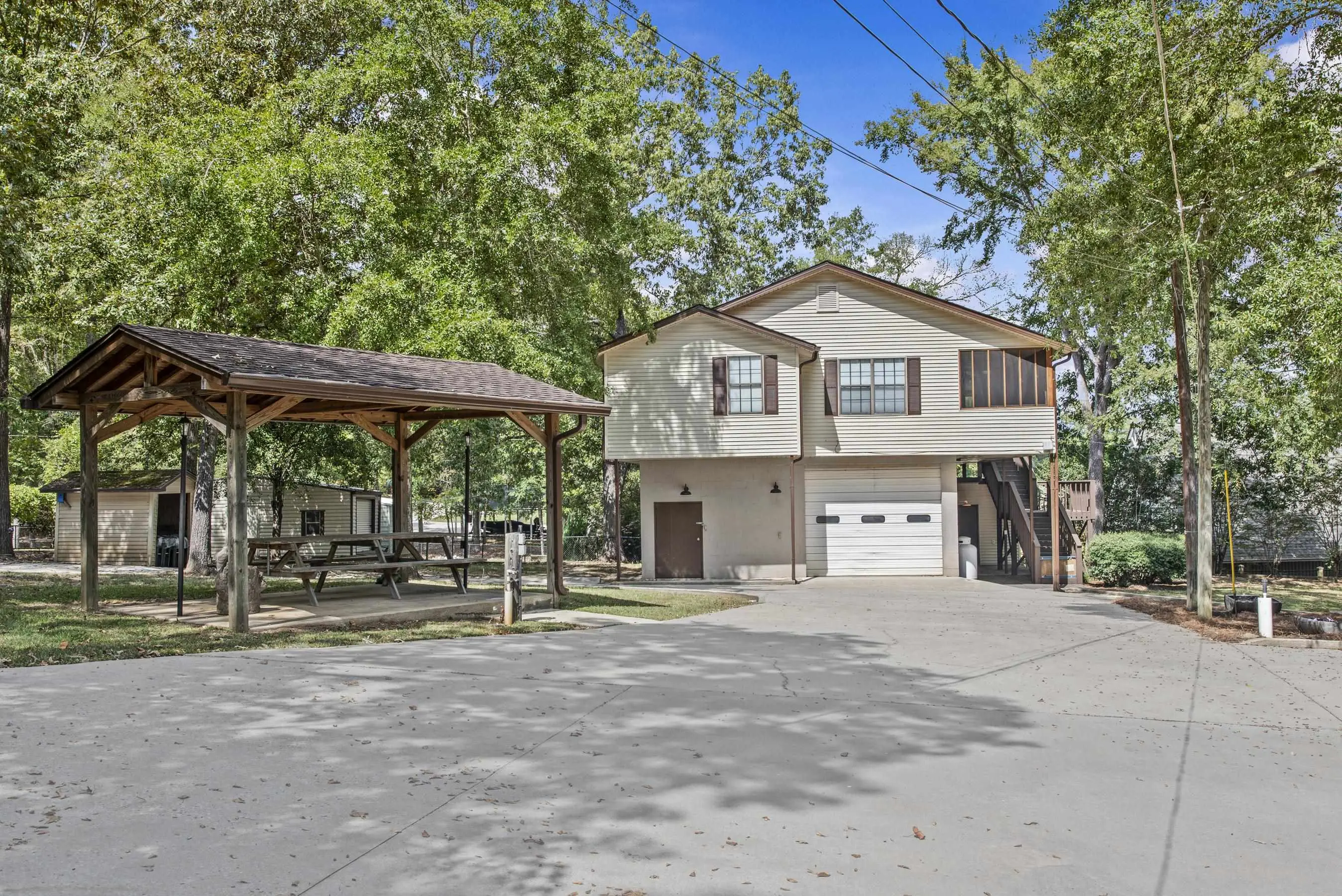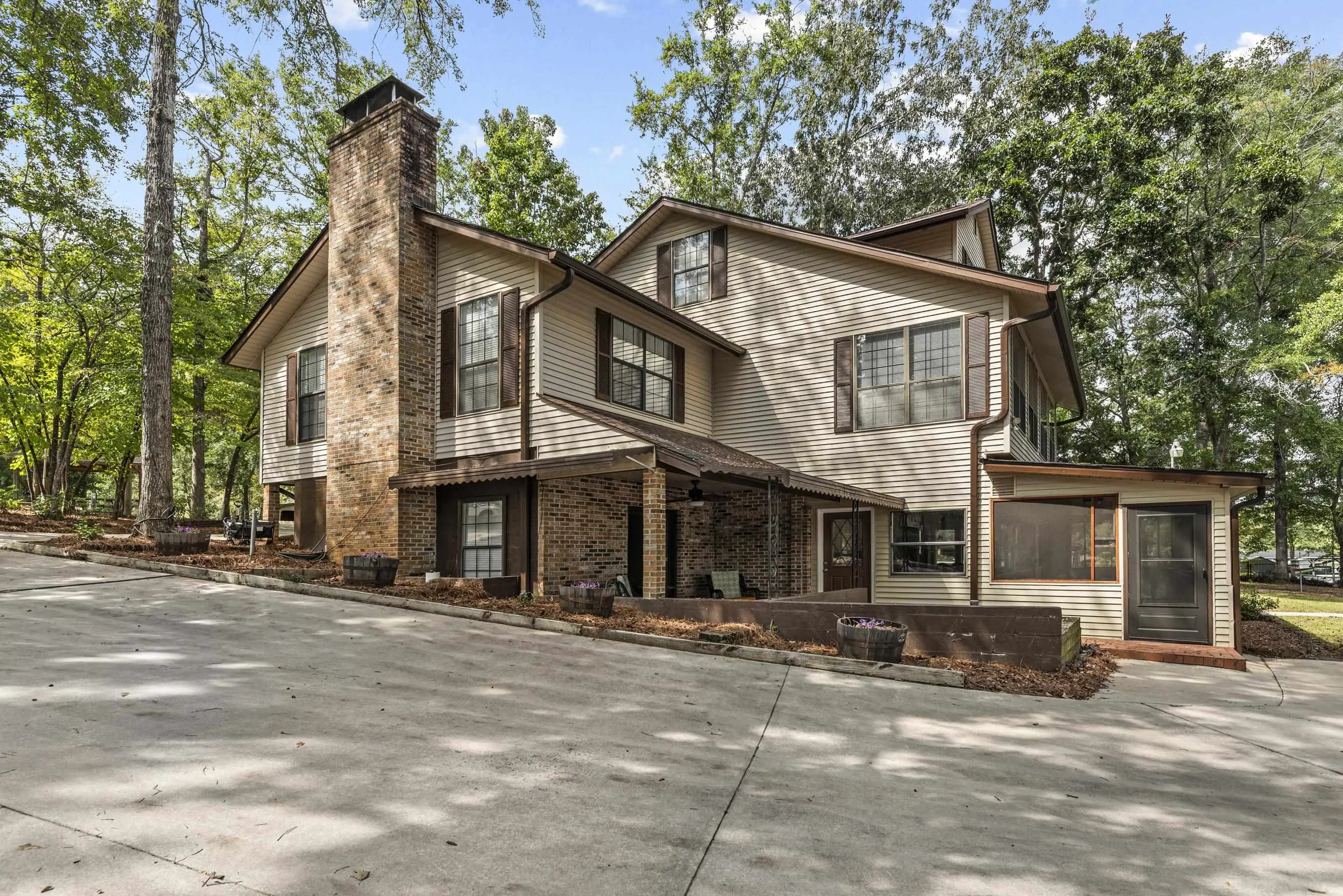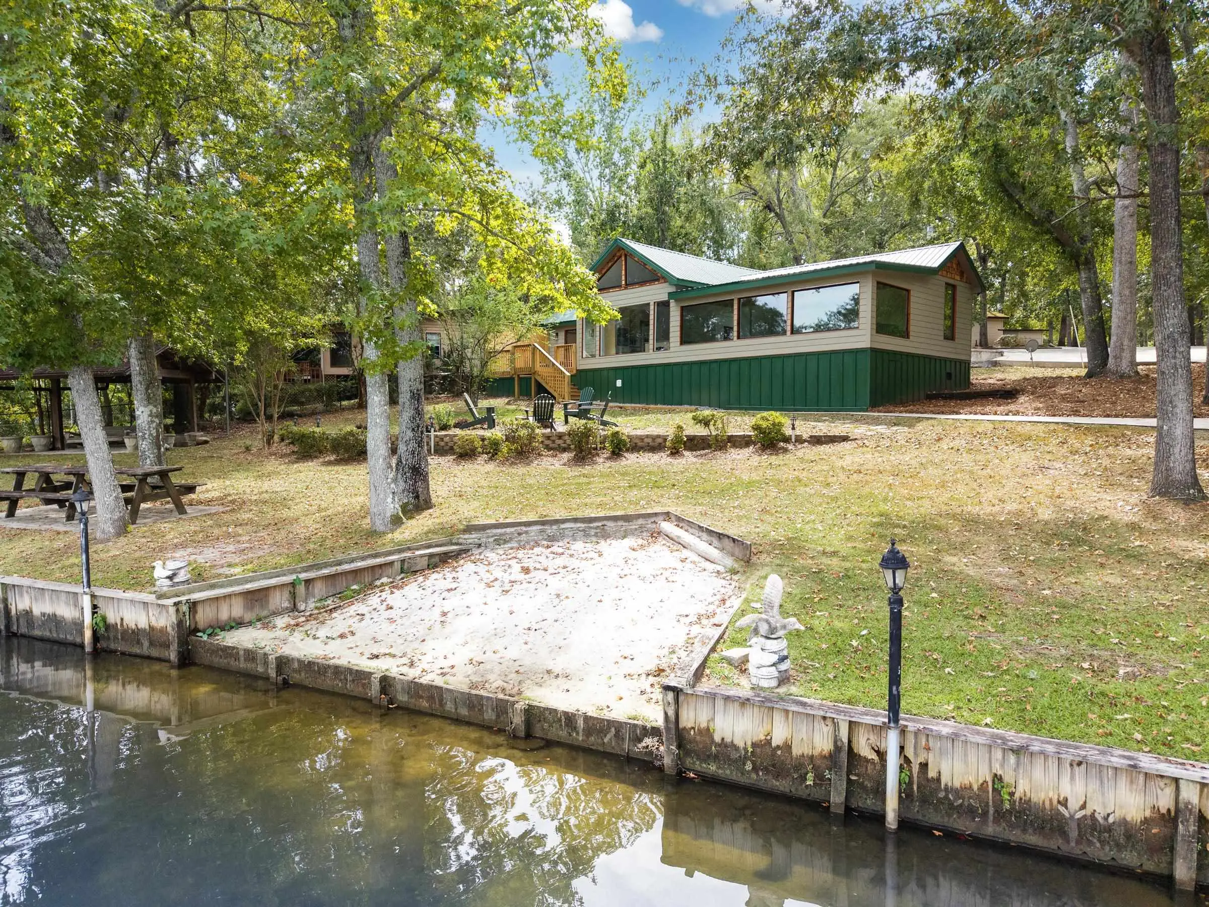Situated on DEEP WATER with one of the most EXPANSIVE SHORELINES on Lake Sinclair, this rare property spans 2.35 PRIVATE FULLY FENCED ACRES with MULTIPLE RESIDENCES and unmatched OUTDOOR ENTERTAINMENT AREAS â including picnic tables, bar, swings and fire pits. Offering SPECTACULAR VIEWS and direct access to the lake from every structure, this property is ideal for INVESTORS, MULTI-GENERATIONAL LIVING, or those seeking a premier waterfront retreat. Main house currently operating as a SUCCESSFUL SHORT TERM RENTAL, with the GARAGE APARTMENT also providing LONG TERM RENTAL INCOME. Main House: Over 3,500 sq. ft. 5 spacious bedrooms | 4 full bathrooms Expansive living areas designed for comfort and entertaining Panoramic lakefront views from the living spaces and bedrooms All new appliances. Garage Apartment: Approximately 1,700 sq. ft. 2 bedrooms | 1 bathroom Currently under a long-term lease, generating steady rental income Perfect for investment, extended family, or guests Private balcony with sweeping lake views All new appliances. Fully Remodeled Guest Home: Approximately 1200 sq. ft. Recently updated, modernized mobile home residence with 2 ensuite bedrooms + powder room Serene lakefront setting with stunning water views Features all new appliances. Additional Property Features: Large dock for boats, jet skis, and other recreational watercraft Private beach with boat access, perfect for swimming and lakefront activities Expanded parking for boats, trailers, and guest vehicles Extra-large garage with bathroom and storageâ large enough for workshop space, or potential boat storage Extra outdoor storage sheds for tools, lake gear, or equipment All residences feature all new appliances, new HVAC systems, hot water heaters, and a new well water pump 3 RV hookups for added flexibility Furnishings available separately for a turnkey opportunity. ALL FEE SIMPLE