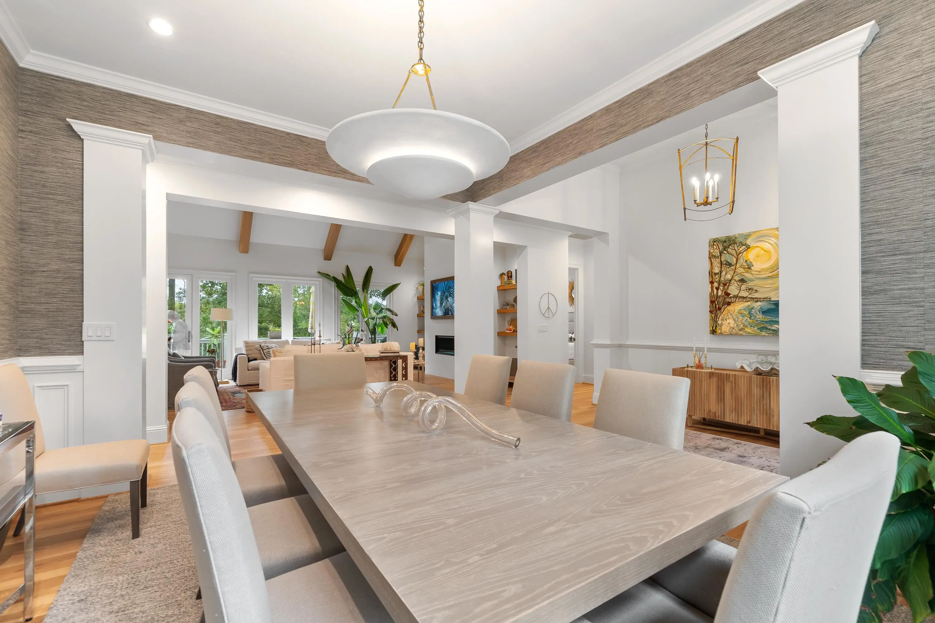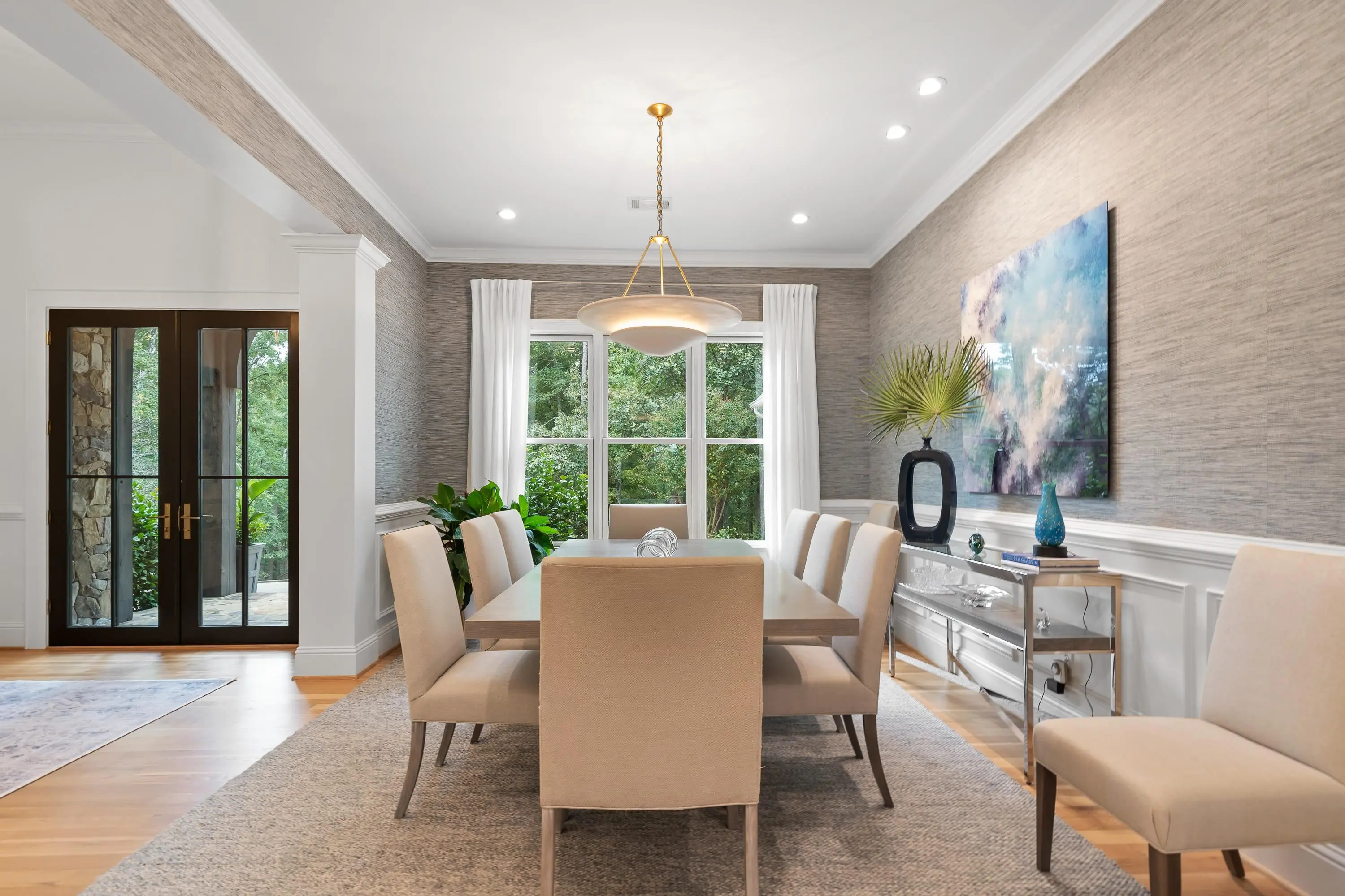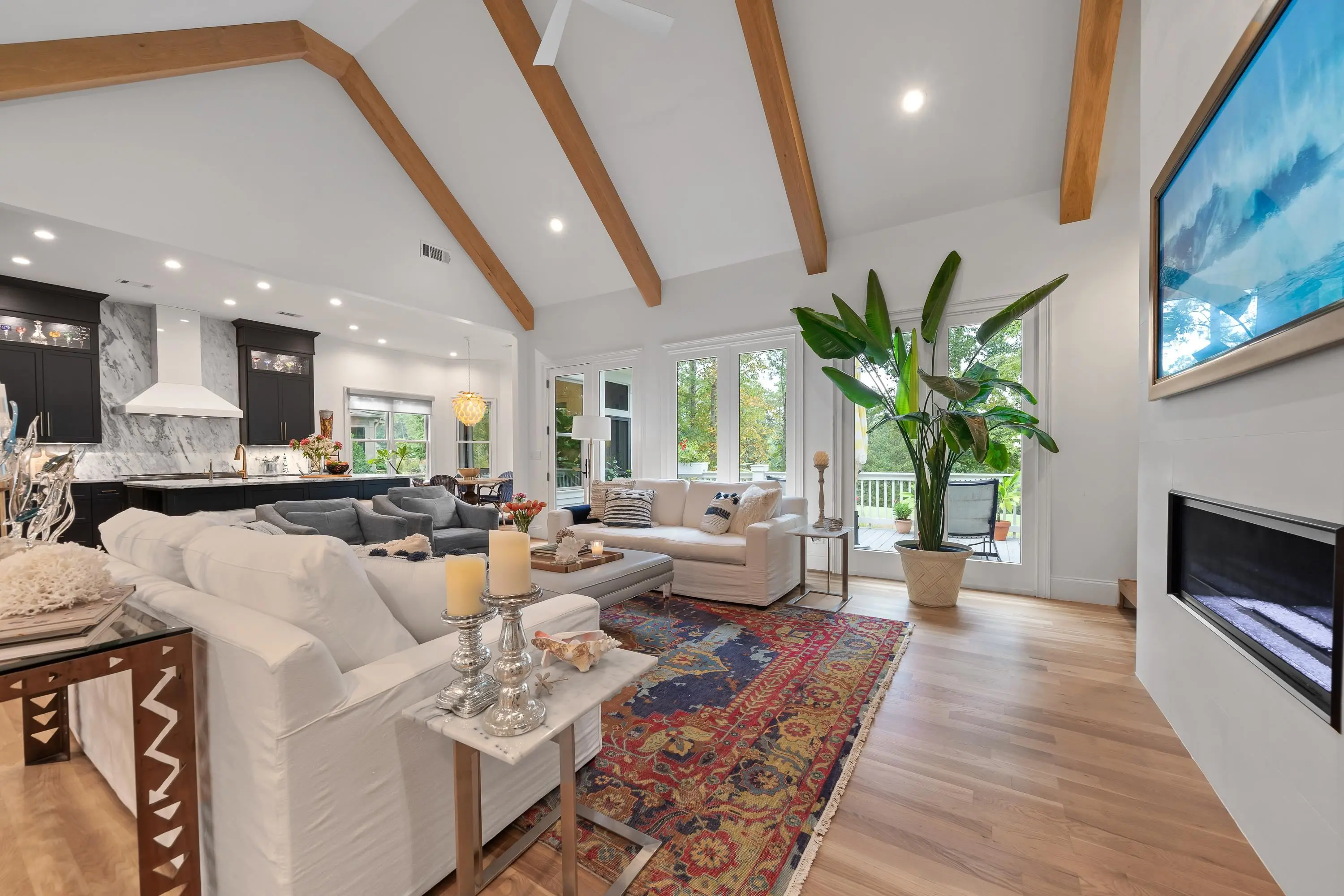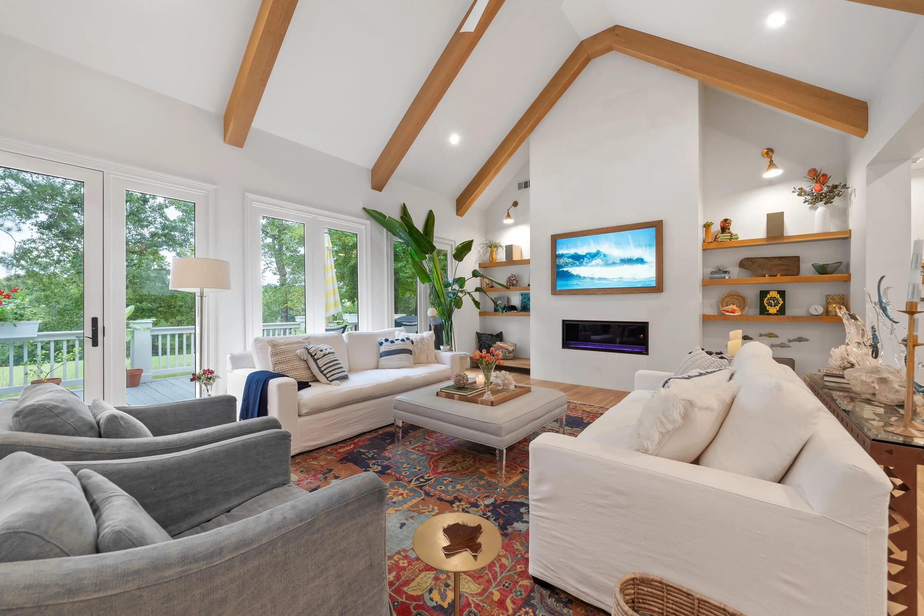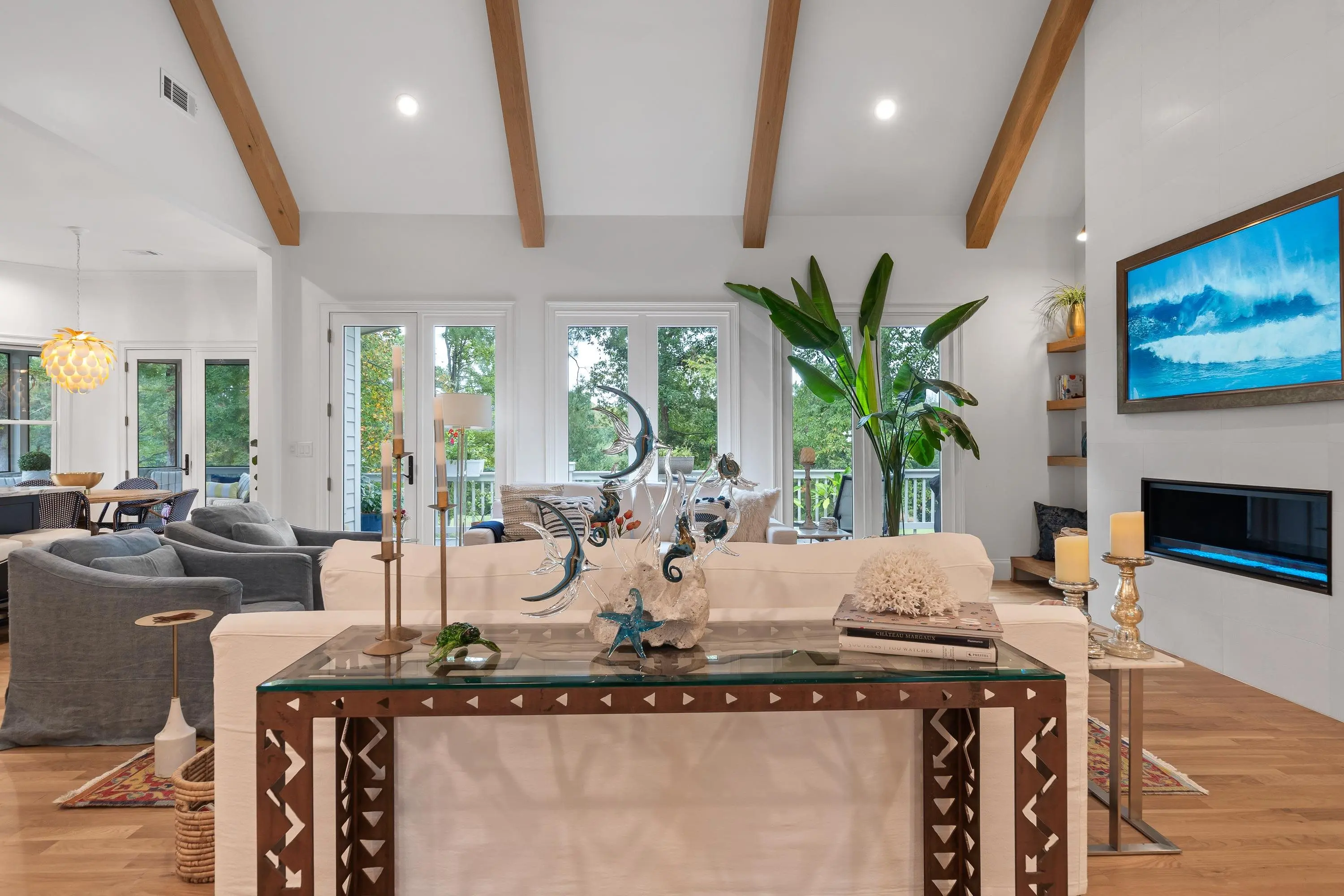Step into refined elegance and effortless comfort with this masterfully renovated 5-bedroom, 4.5-bath estate, perfectly positioned on the 15th hole of the National Golf Course. With sweeping fairway vistas and serene views of Lake Oconee, this home offers a rare blend of sophistication and tranquility. Designed for the modern homeowner, every inch of this residence has been completely renovated to elevate both form and function. Located along the scenic path to a community day dock and boat slip, and just moments from the coveted Richland Pointe amenities, this property delivers the ultimate Lake Oconee lifestyle. Inside, discover a layout tailored for entertaining and relaxation. The newly opened kitchen and great room now boast soaring 11- and 14-foot ceilings, accented by custom cabinetry, BlueStar appliances, leathered quartzite countertops, and striking white oak beams. The upstairs suite above the garage now features a full bath, while the primary suite has been completely reimagined with a spa-inspired bath, including a luxurious tub-in-shower design. Countless upgrades that must be seen to be fully appreciated. This is more than a home—it’s a lifestyle. Schedule your private tour today and experience the exceptional craftsmanship and unparalleled setting for yourself.