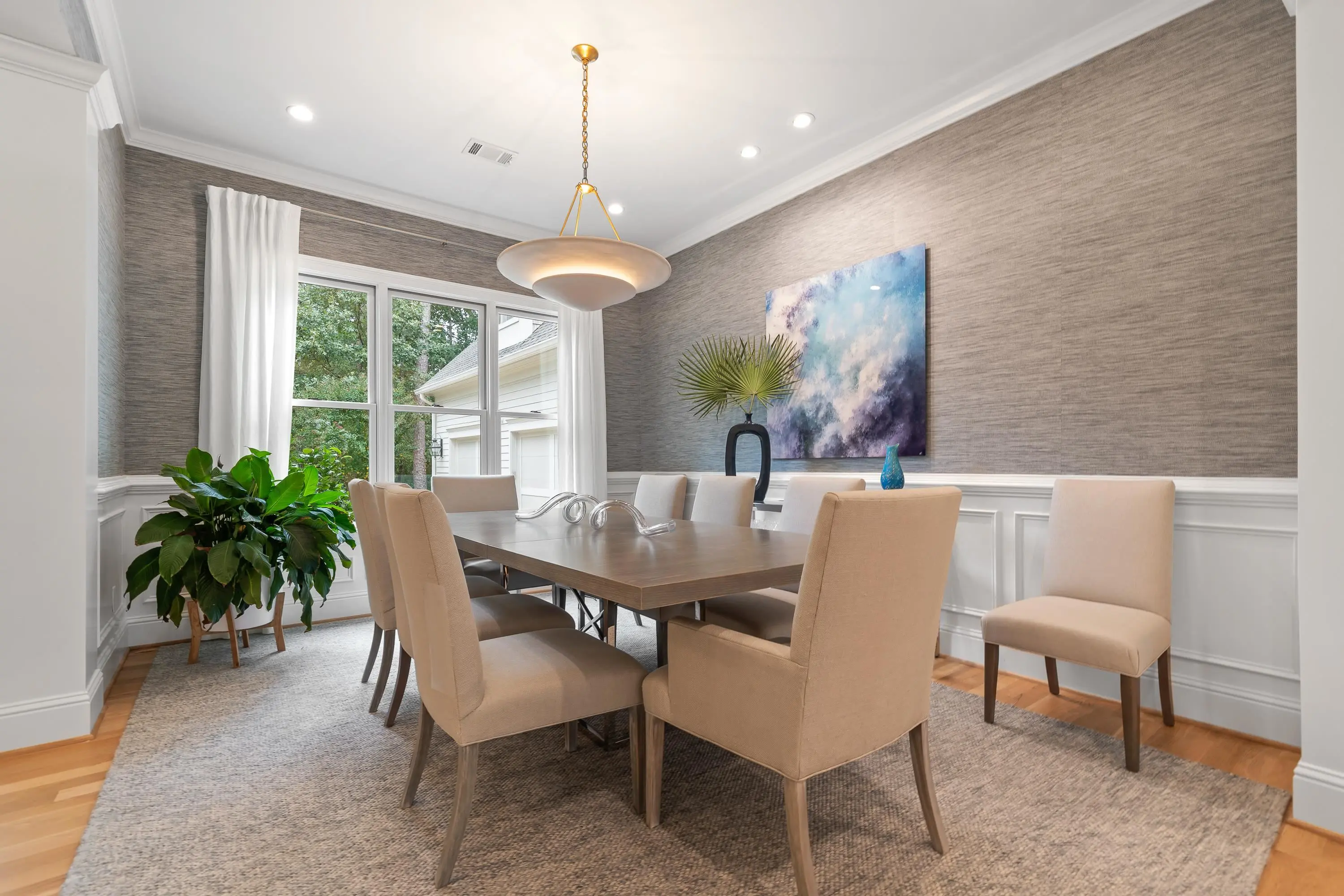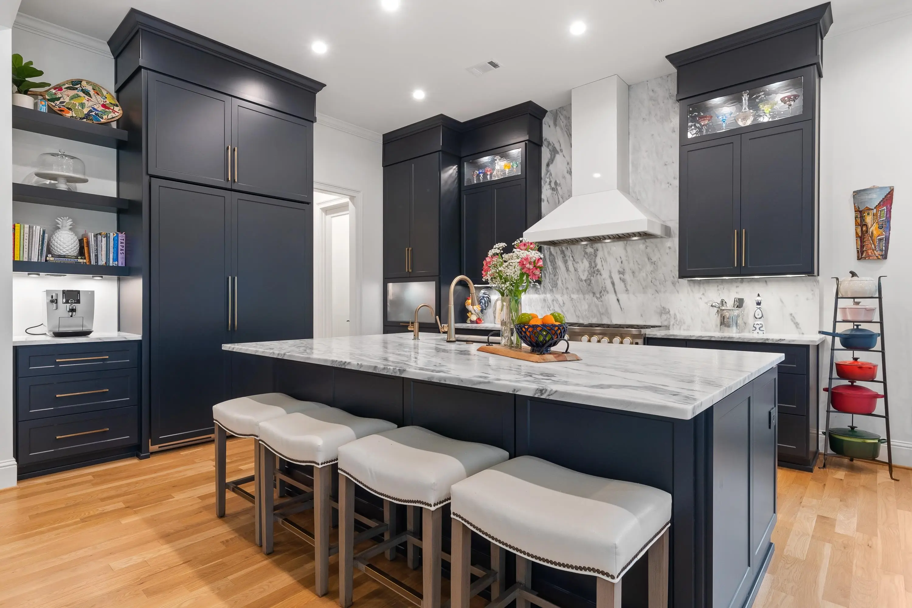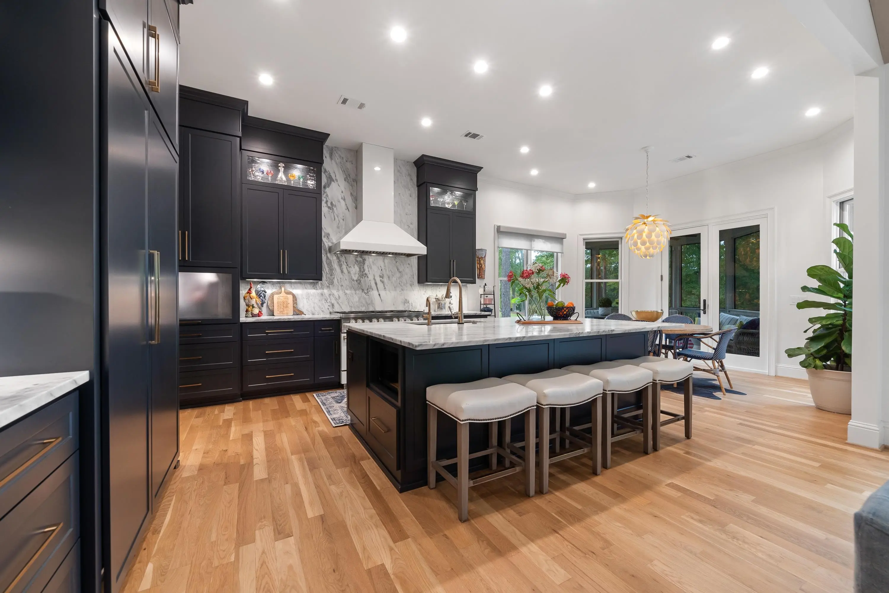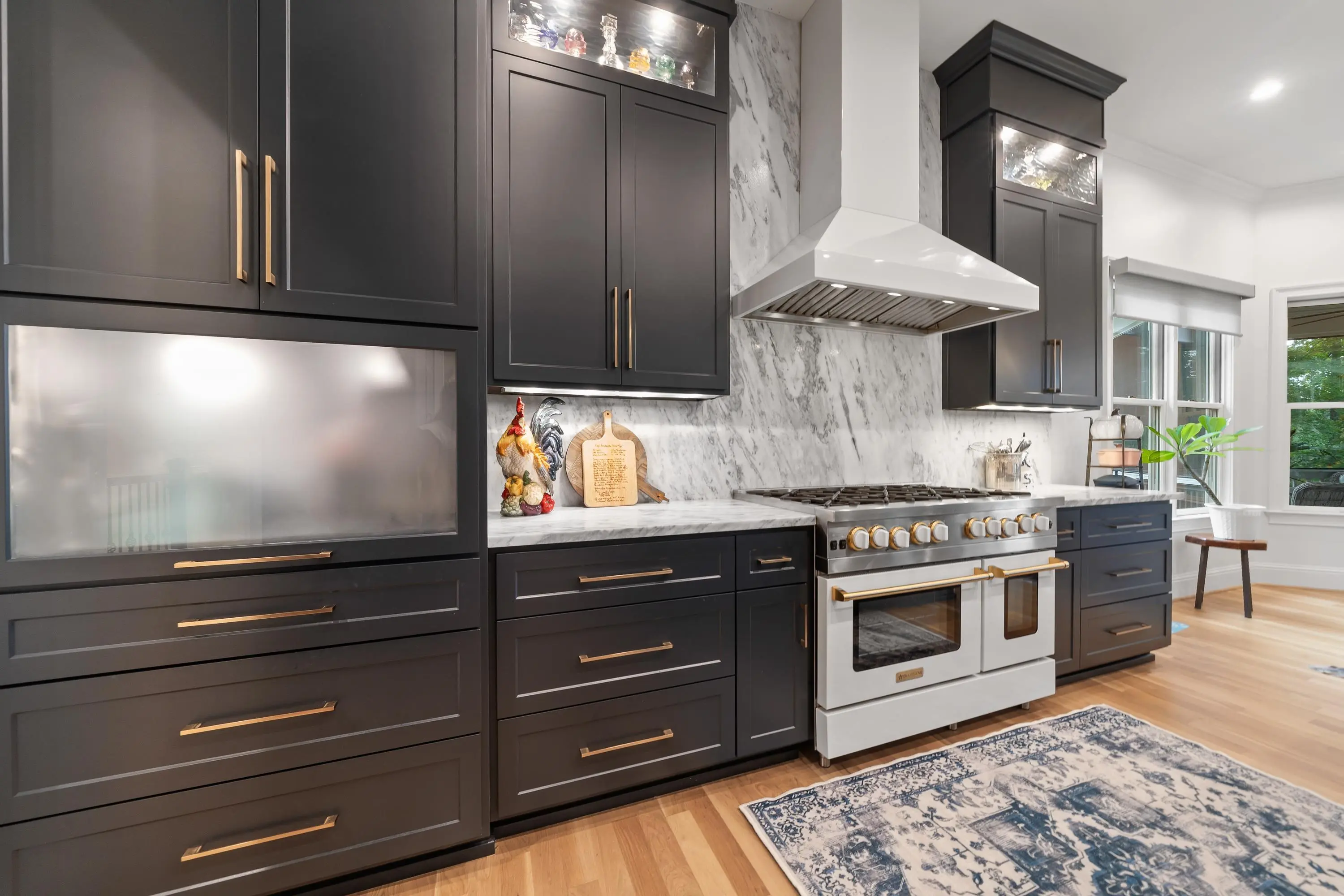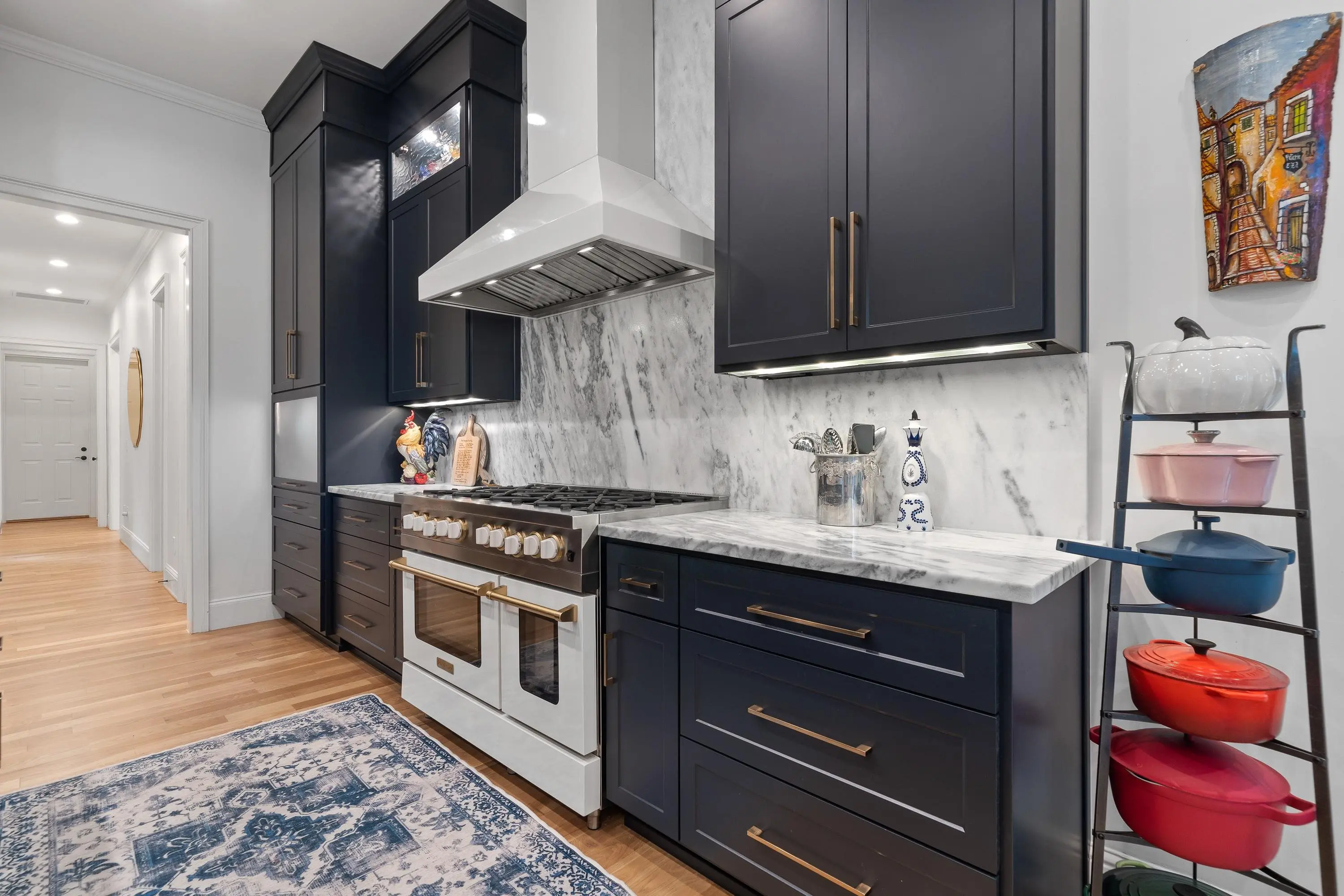 - AppliancesDouble Ovens, Range, Refrigerator, Vent Hood