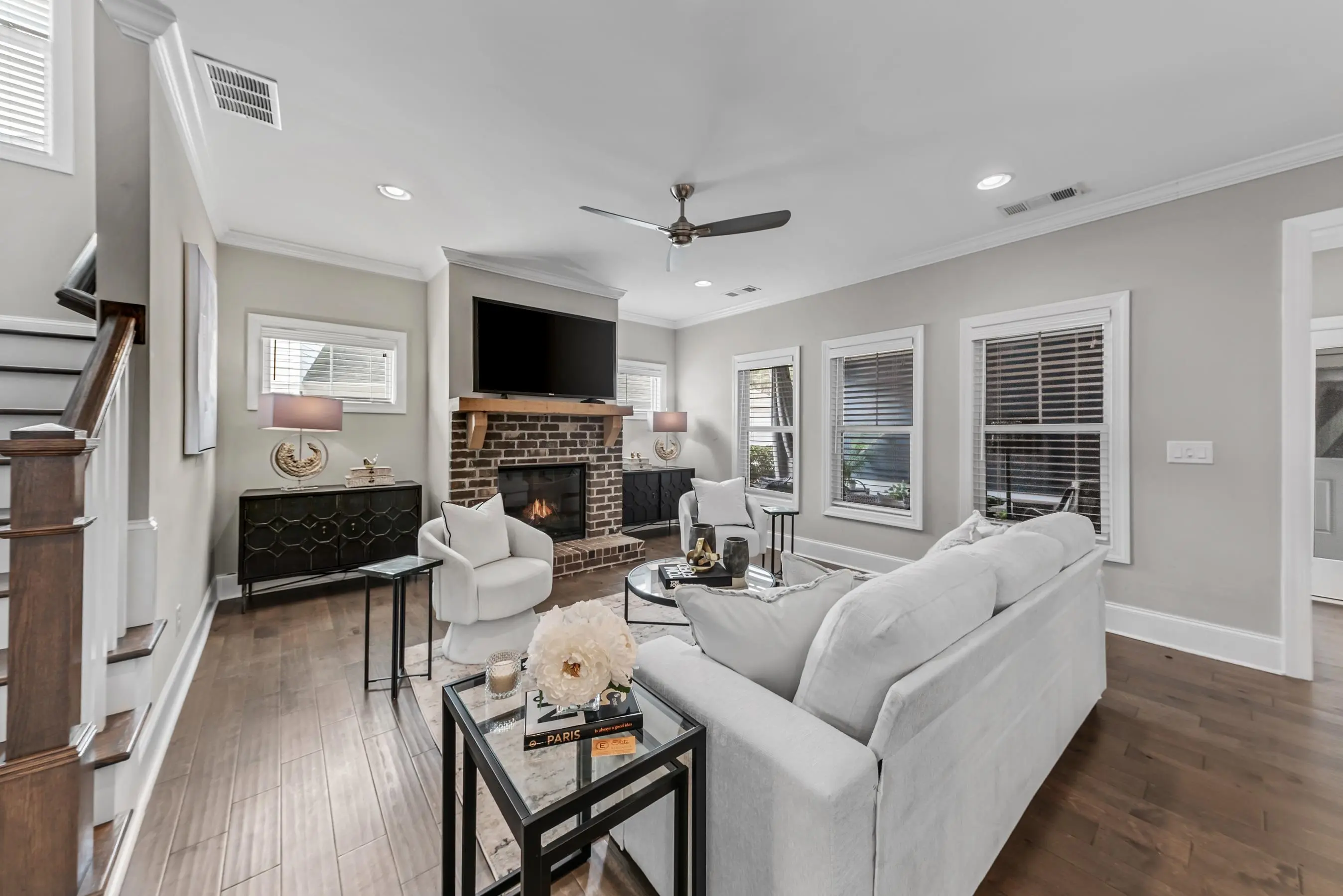 LOW MAINTENANCE, MOVE-IN READY CHARM IN SOUGHT AFTER CARRIAGE RIDGE OF THE GATED HARBOR CLUB GOLF COMMUNITY ON LAKE OCONEE. This open concept home combines charm and functionality, ideal for easy everyday living and effortless entertaining. You're welcomed by a spacious, light filled foyer that opens to a formal dining room and continues effortlessly into the kitchen. Designed for both function and style, the kitchen showcases a large island, stone countertops, and a walk in pantry that keeps everything organized and convenient. It flows directly into the great room, where a beautiful brick fireplace adds warmth and charm to the space. One of the standout features is the screened in patio, offering a peaceful second living space perfect for morning coffee, outdoor dining, and relaxing. The main level primary suite provides comfort and privacy, complete with a spacious ensuite bath and plenty of natural light. Upstairs, an open loft serves as a versatile space, ideal for a media room, playroom, or home office. The second bedroom has its own ensuite bath and walk in closet, while the third and fourth bedrooms share a Jack and Jill bathroom with a gracious double vanity and separate tub, offering privacy and functionality. Located in the heart of Harbor Club, you're just a short walk from the community fitness center, pickleball courts, dog park, and other resort style amenities. Donât miss your chance to enjoy the best of Harbor Club living at Lake Oconee!