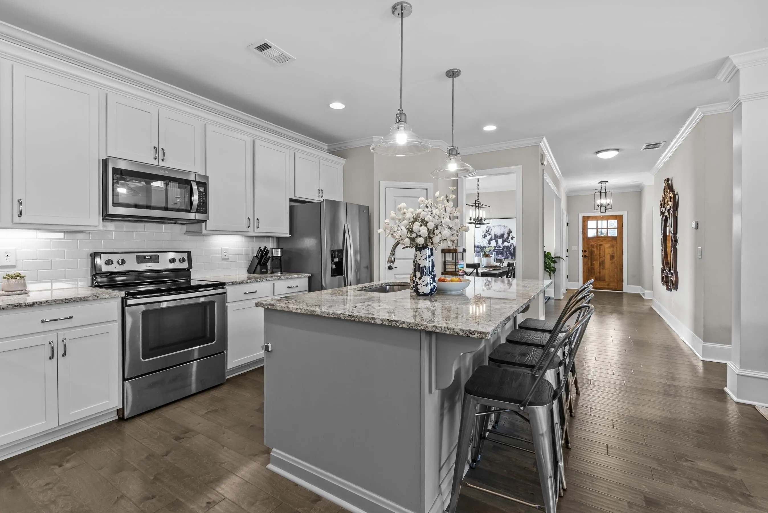 - AppliancesBuilt in Microwave, Dishwasher, Dryer, Freezer, Range, Refrigerator, Washer, StainlessSteel Appliances