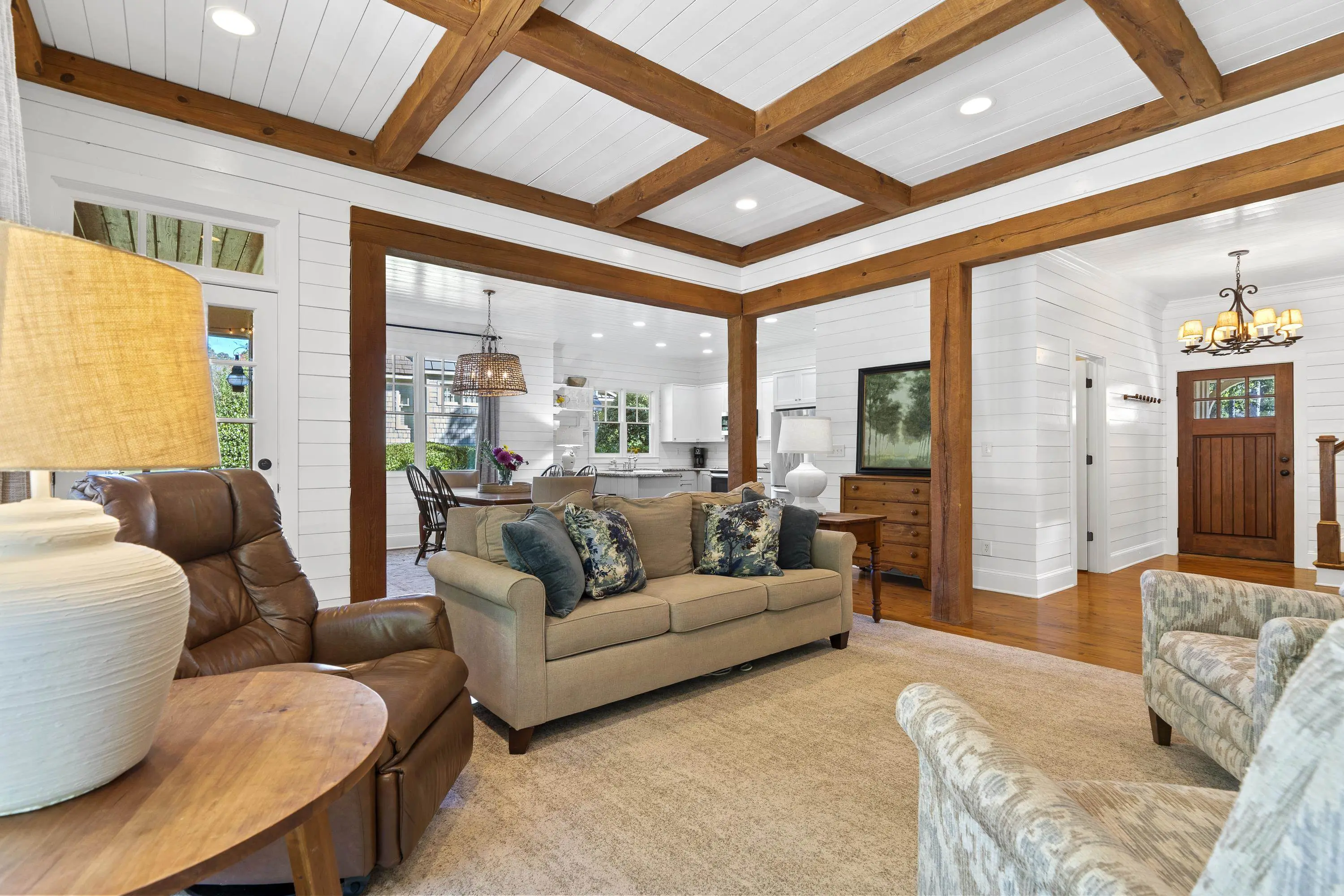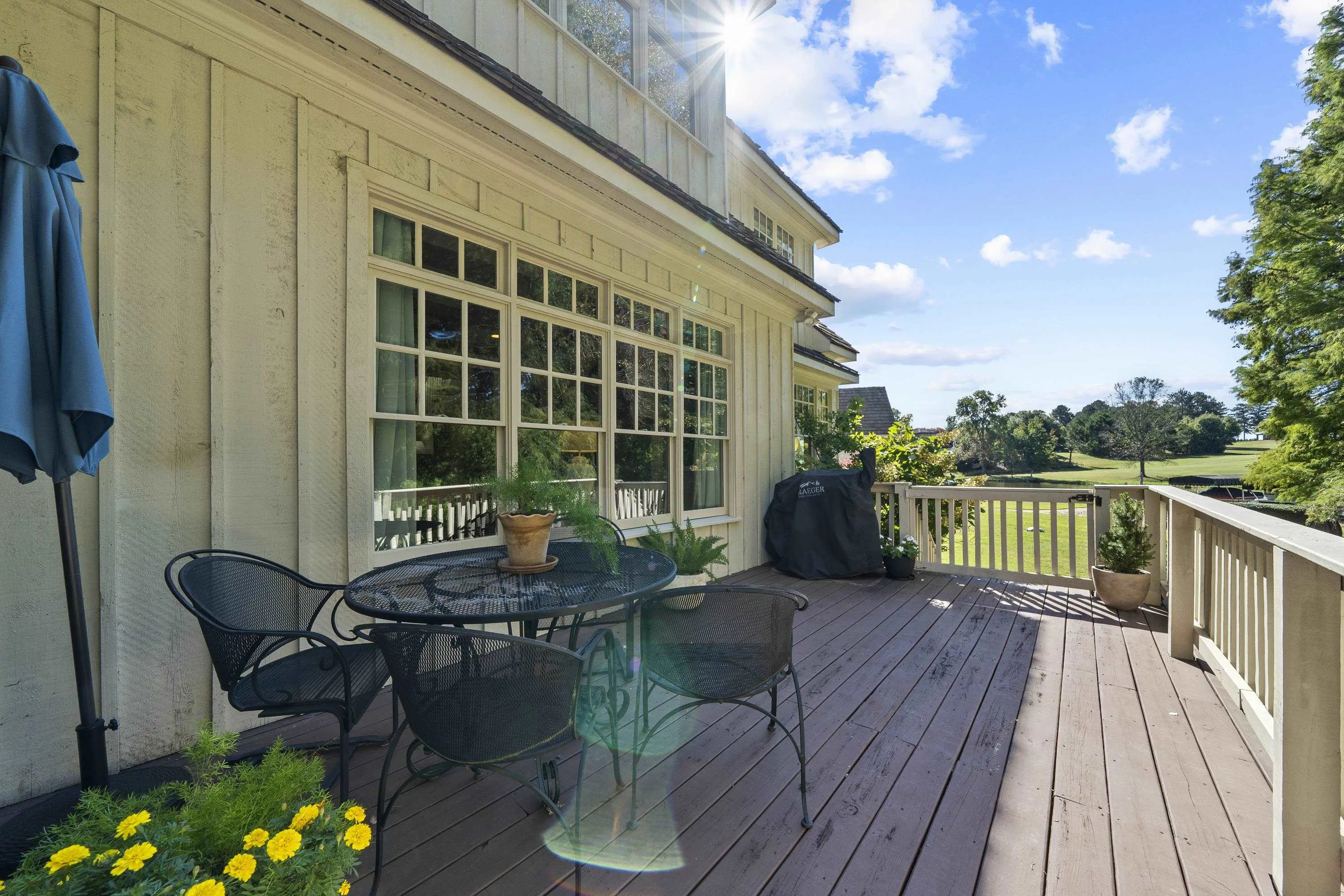 Golf course living in the Grove at Cuscowilla! This charming, like new cottage was recently updated and is located just steps away from the private boat docks and the Lakeside Pavilion. The popular, open floor plan offers 4 bedrooms, 3.5 baths and a large bonus room (which works great as an office) plus a screened porch with masonry fireplace and deck. The recently updated kitchen offers granite countertops, stainless steel appliances and is open to the living room which is accented with built-in cabinets, rustic beams and a masonry fireplace. The primary bedroom is on the main floor with a large walk-in closet and totally renovated ensuite complete with dual vanity, separate shower and soaking tub. Upstairs there is an additional bedroom w/ ensuite, plus jack and jill bedrooms with a shared bath and a bonus room. You can even see the Lake from the back porch. There is a custom laundry room with storage and a golf cart garage. A Cuscowilla Golf or Social Membership is available. Conveniently located, just a short golf cart ride away from the Clubhouse, swimming pool and golf course. The Landscape maintenance is included in the POA dues.
