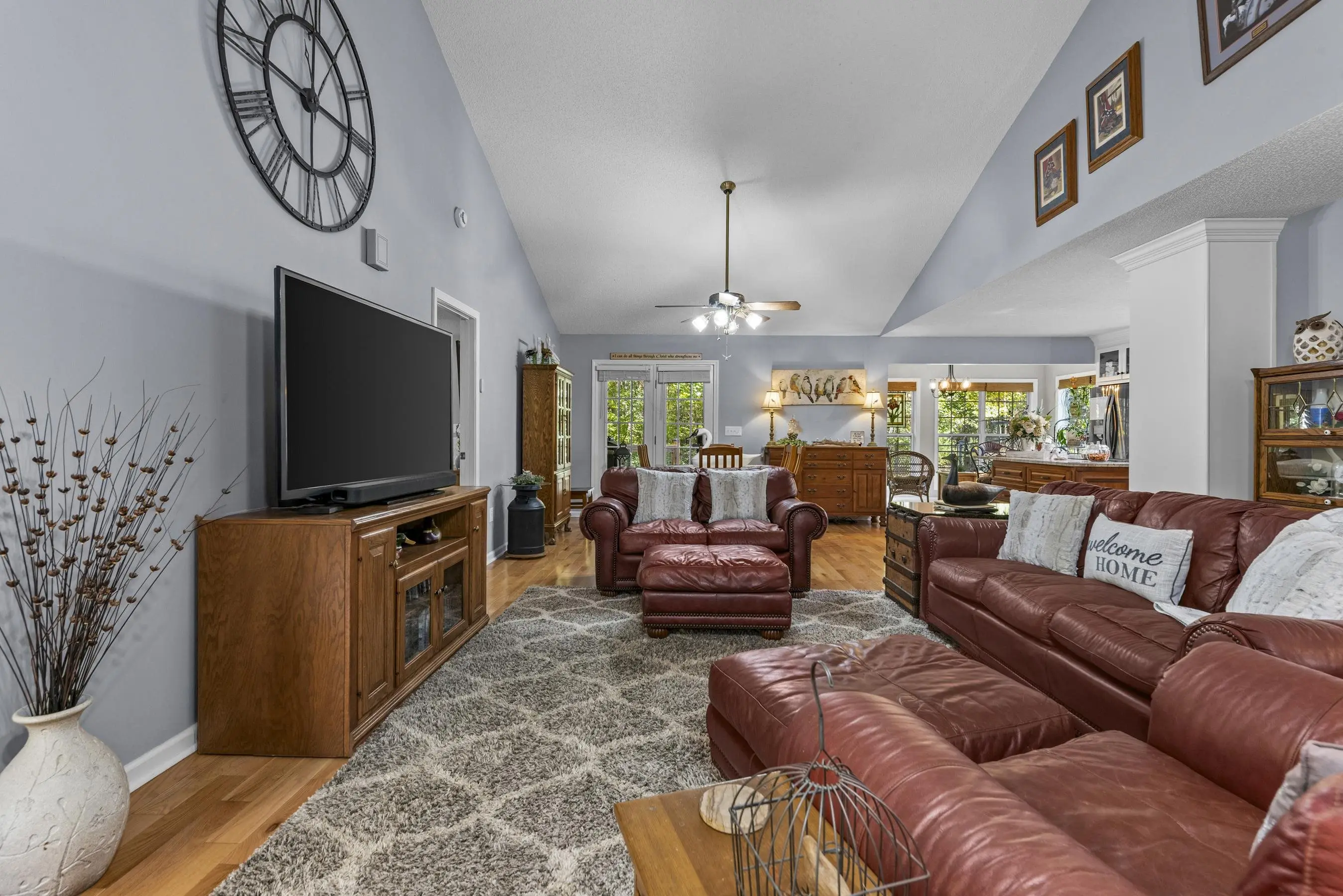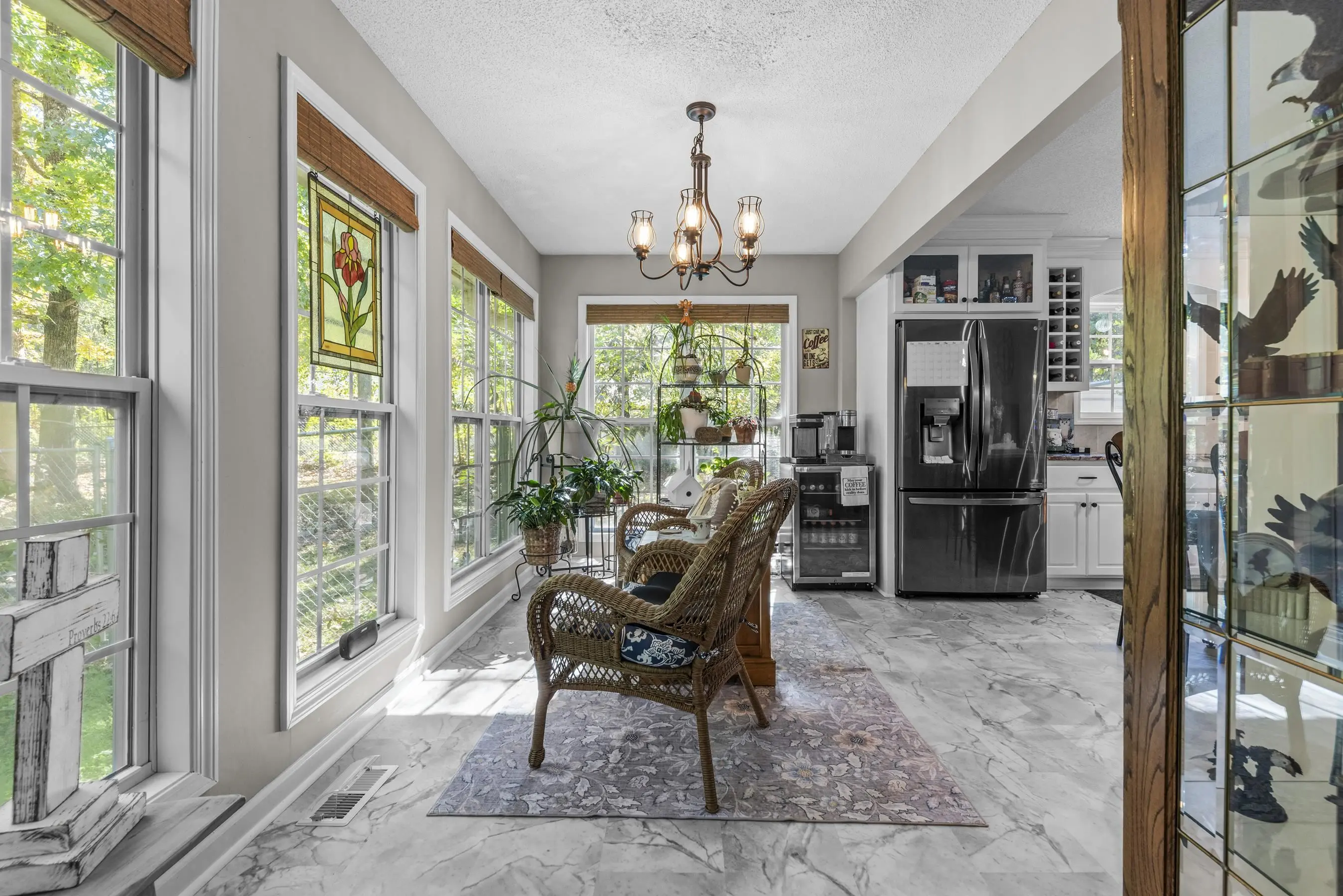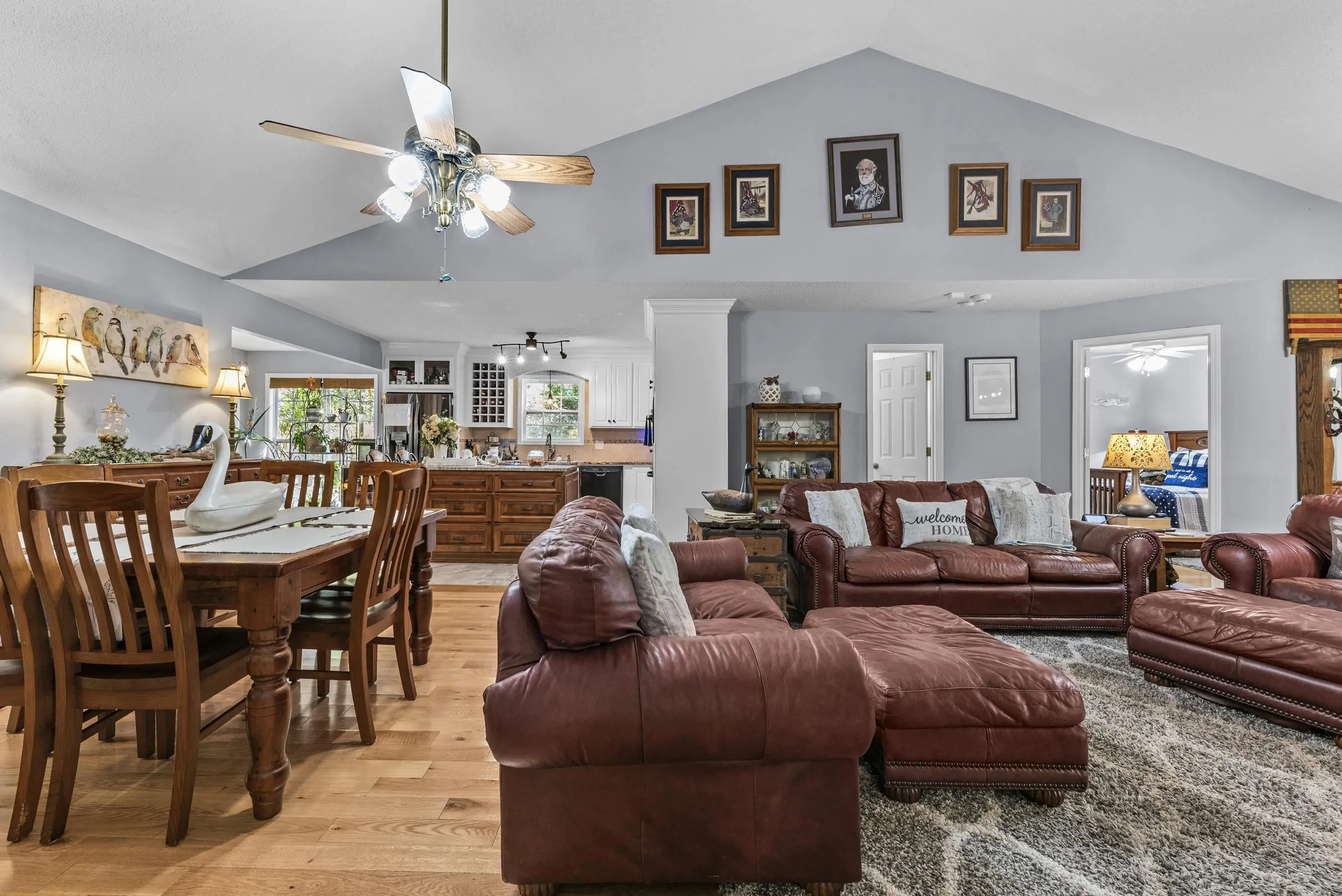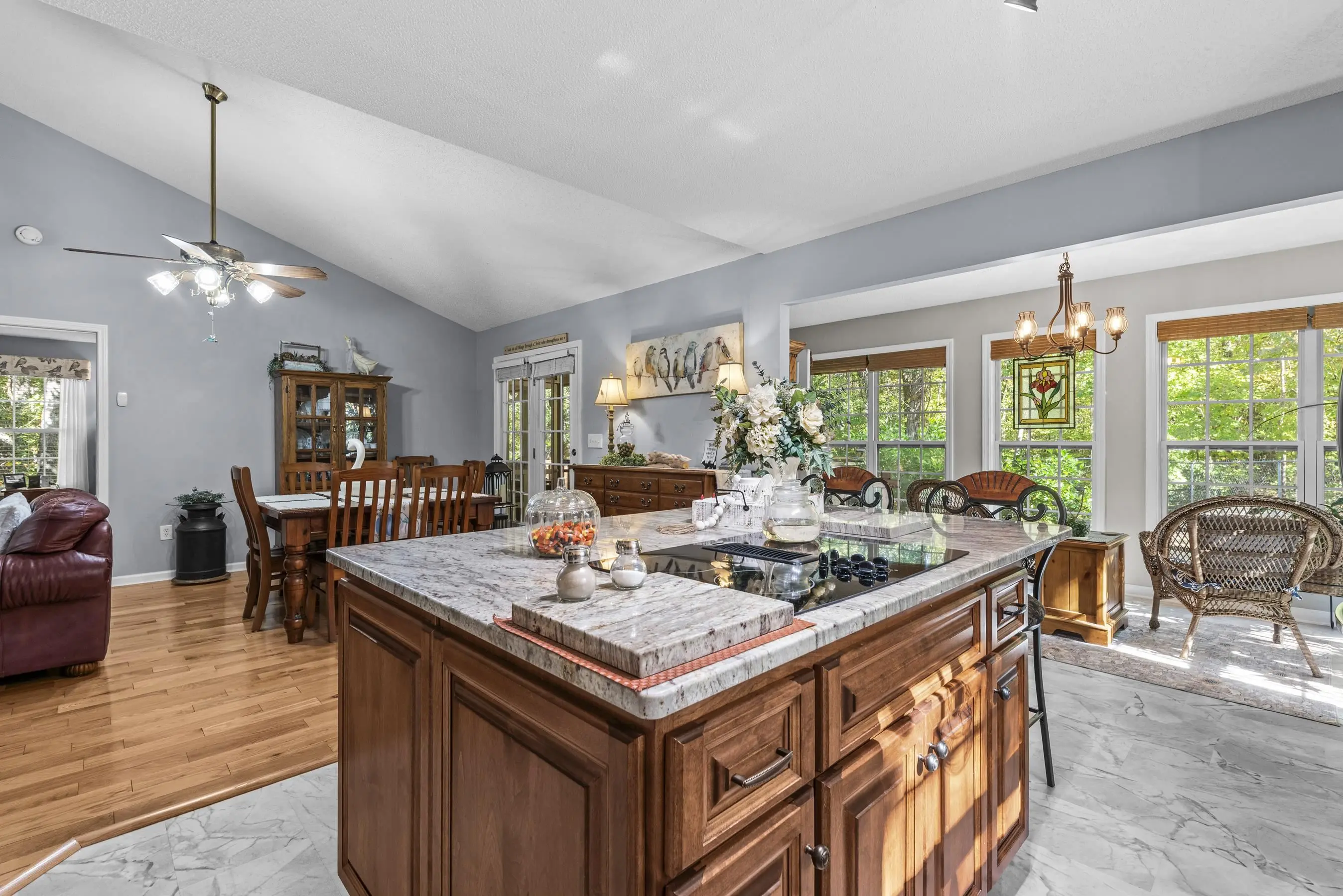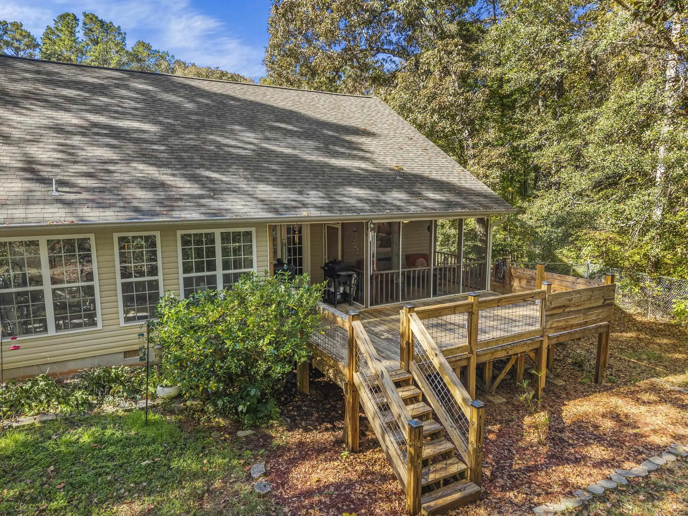 ONE LEVEL RANCH in EXCELLENT CONDITION in AWESOME LAKE COMMUNITY! This well maintained 3 bedroom 2 bath gem with major curb appeal features vaulted family room, stone fireplace, updated granite/stainless kitchen. Sunroom off kitchen is delightful. Open spacious floorplan - 3rd bedroom is small and used as an office. Grilling deck and screened porch offer quiet wooded setting overlooking private fenced yard. New roof w/gutter guards and new septic drain fields. 1.5 car attached garage and separate large wired workshop. Located 1/2 mile from the Twin Bridges Marina makes for easy lake access! A wonderful lifestyle awaits!