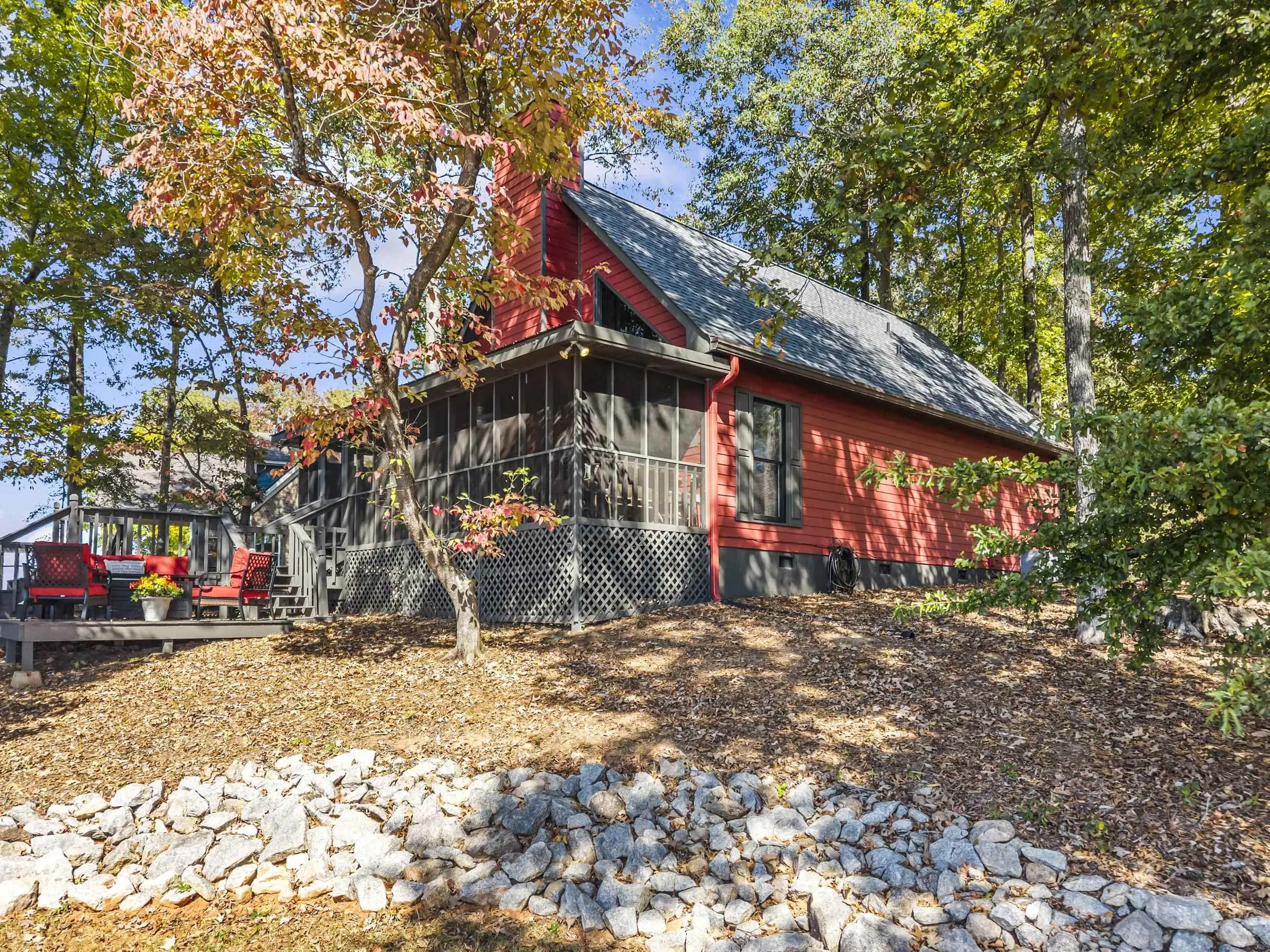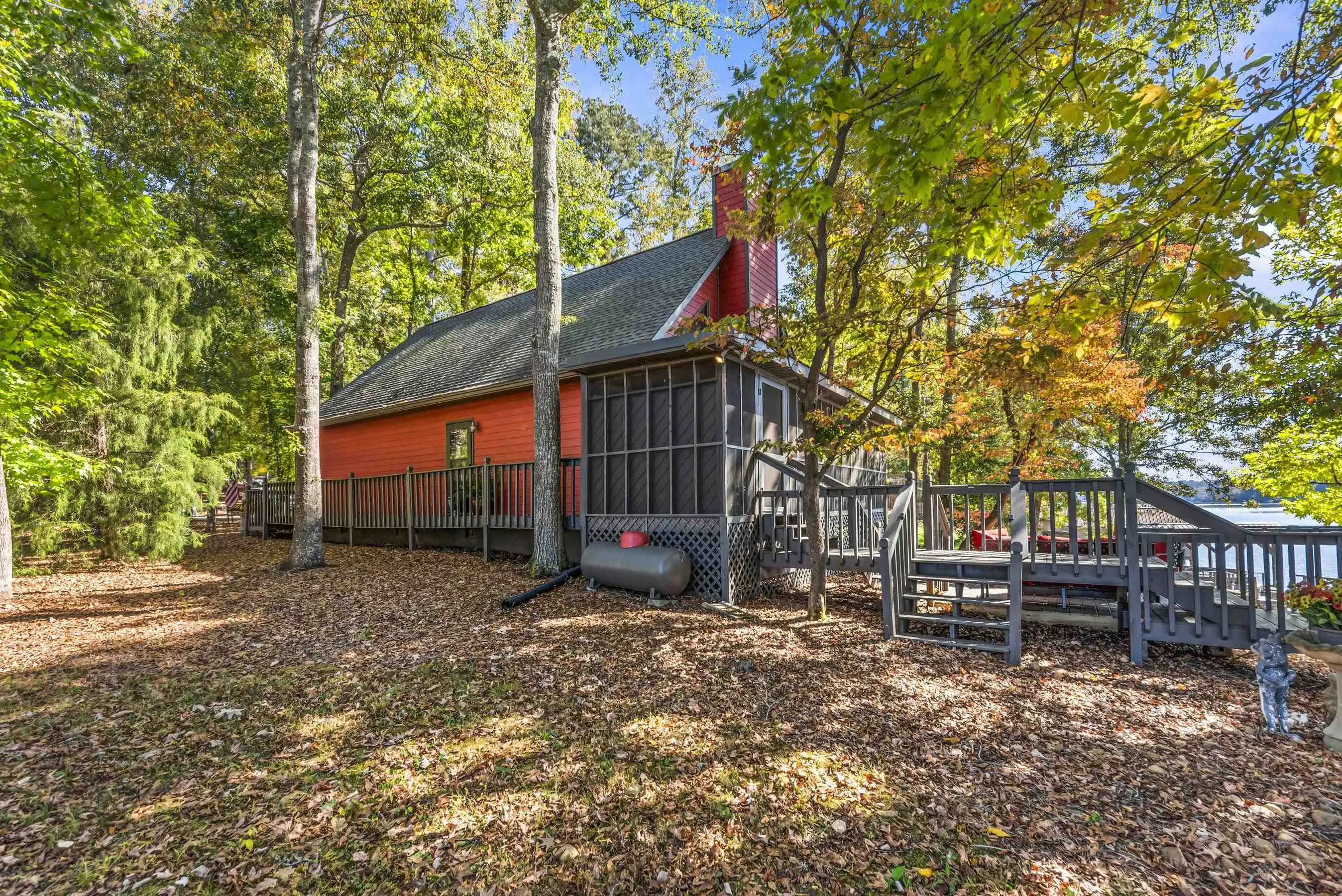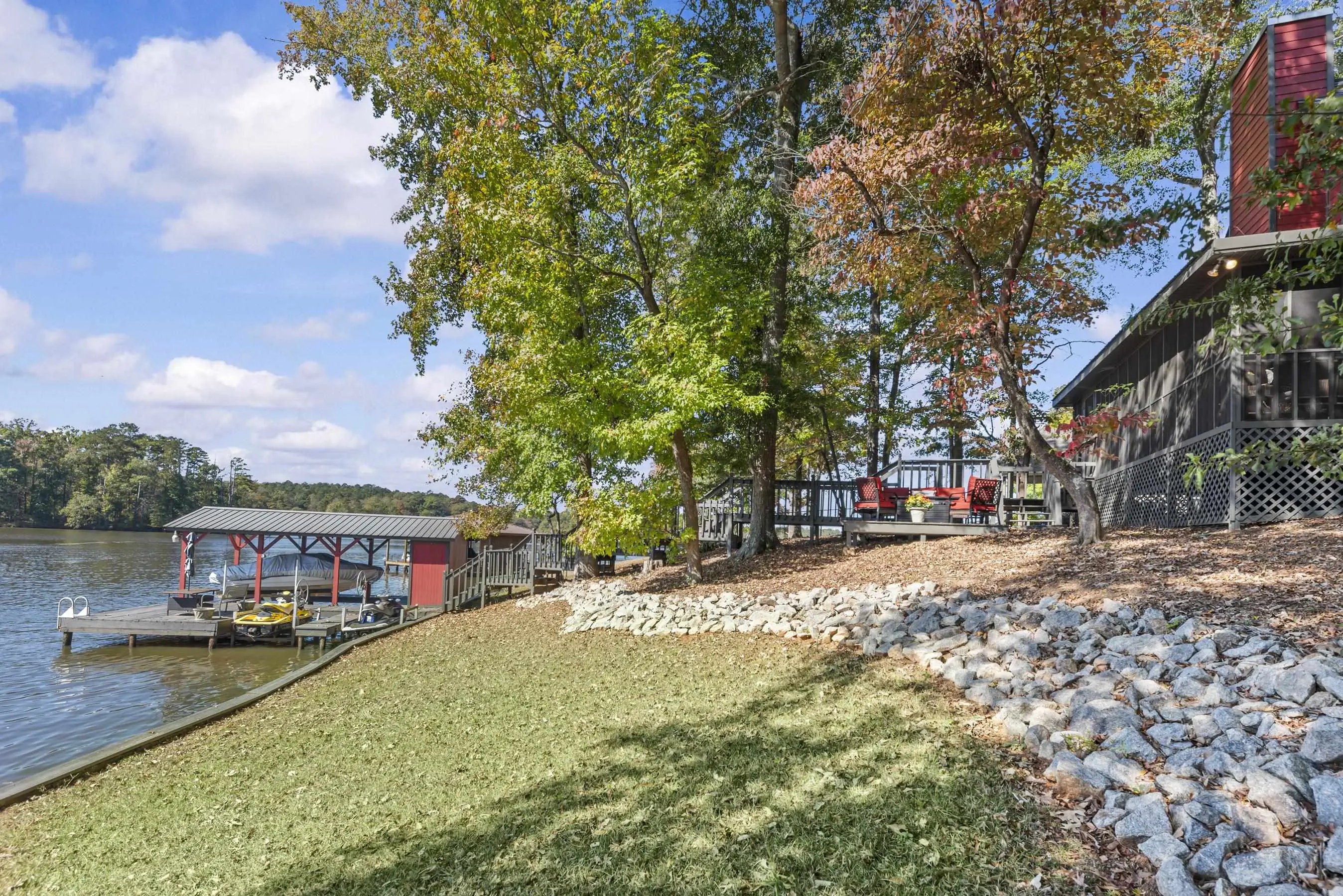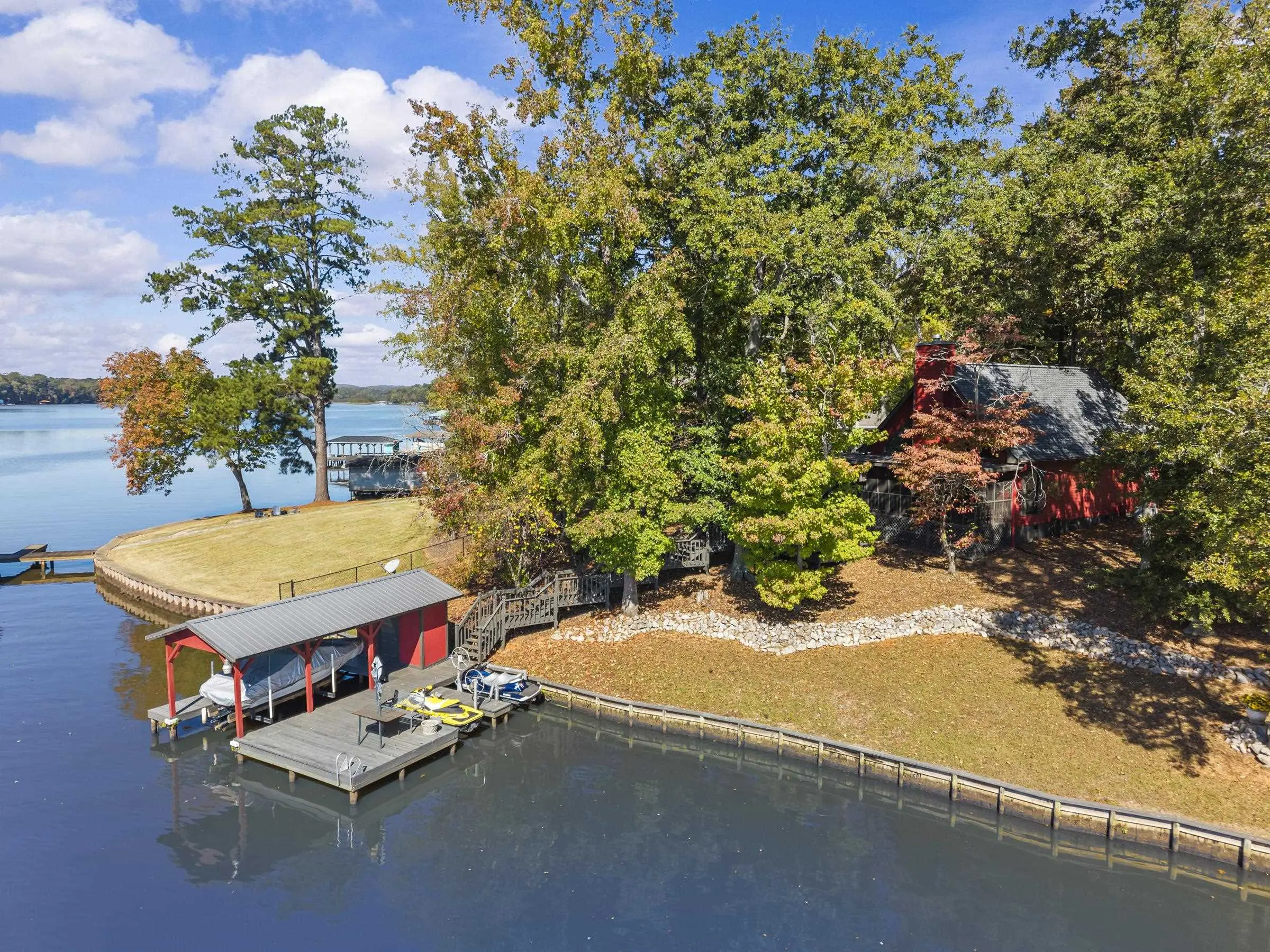 OOOOHHHHH LOOK AT THIS ONE! TRUE DOLLBABY A-FRAME OOZING RUSTIC LAKE CHARM WHILE EXUDING MINT CONDITION VIBERY! This is a "RUN-TO-IT" property! Yes, it's small....BUT SO VERY SWEET! Quality and love have been poured into this long time owner's home. Incredible lakeside screened porch, new quality sliding lakeside doors, fresh decking featuring firepit area - Single boathouse with jet ski lifts and DEEP WATER overlooking nothing but protected natural shoreline across the lake. This one is special. SOLD FULLY FURNISHED WITH BOAT! Fee simple.