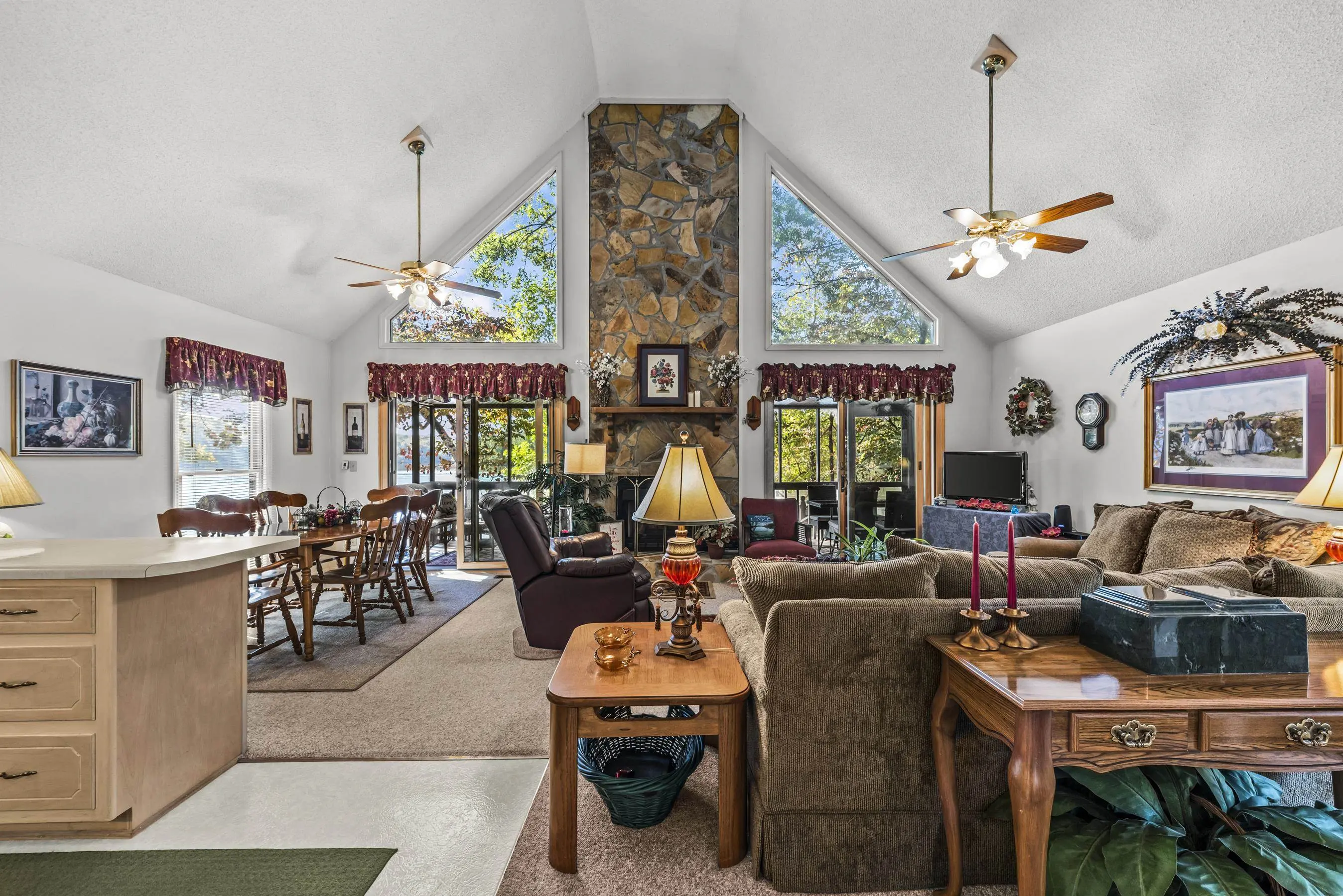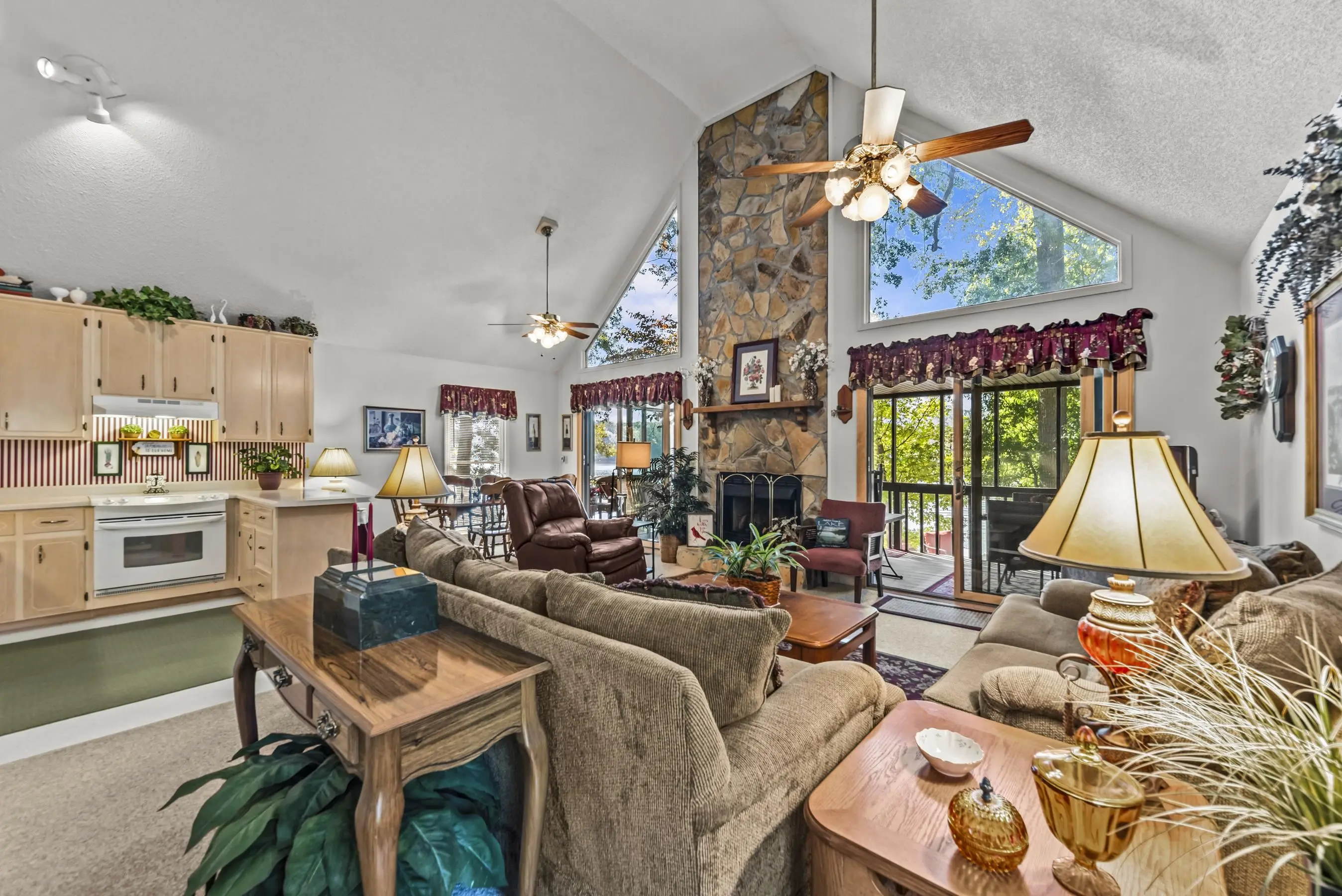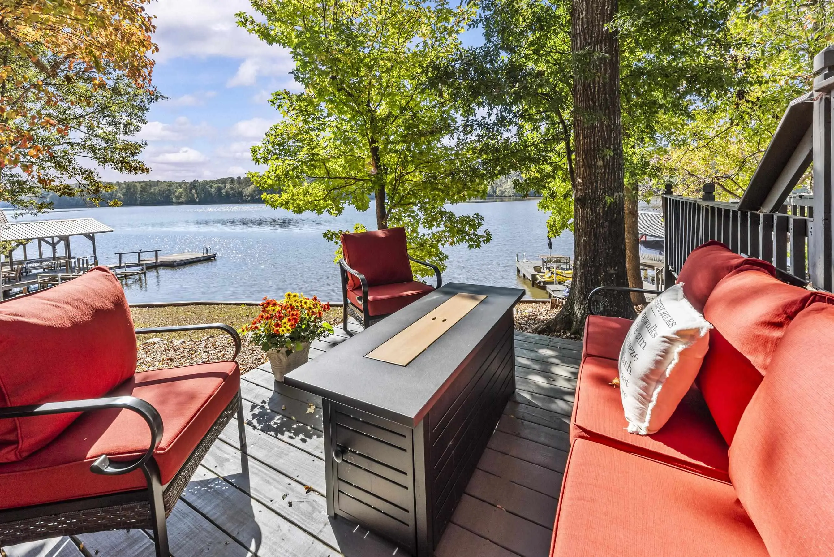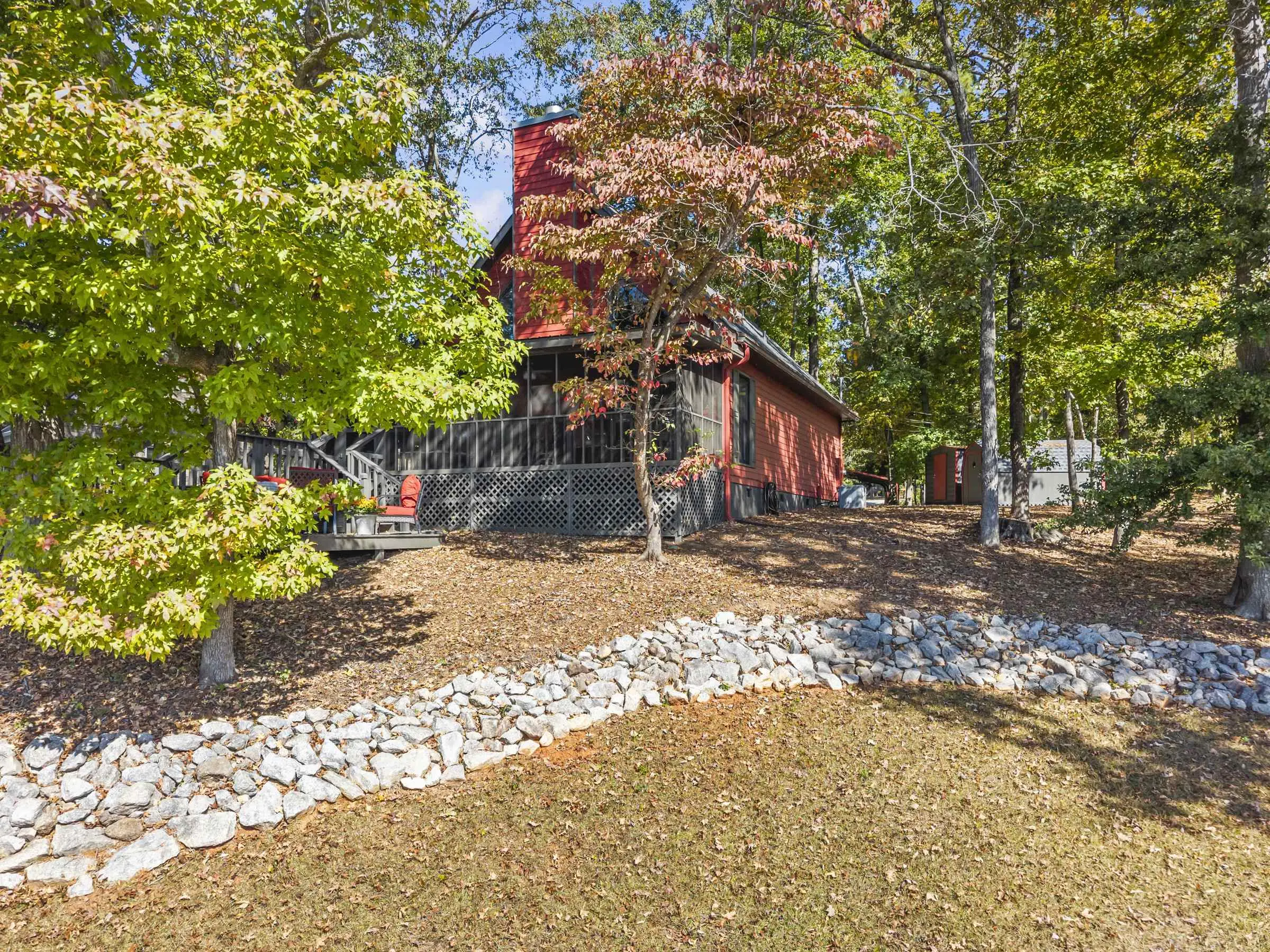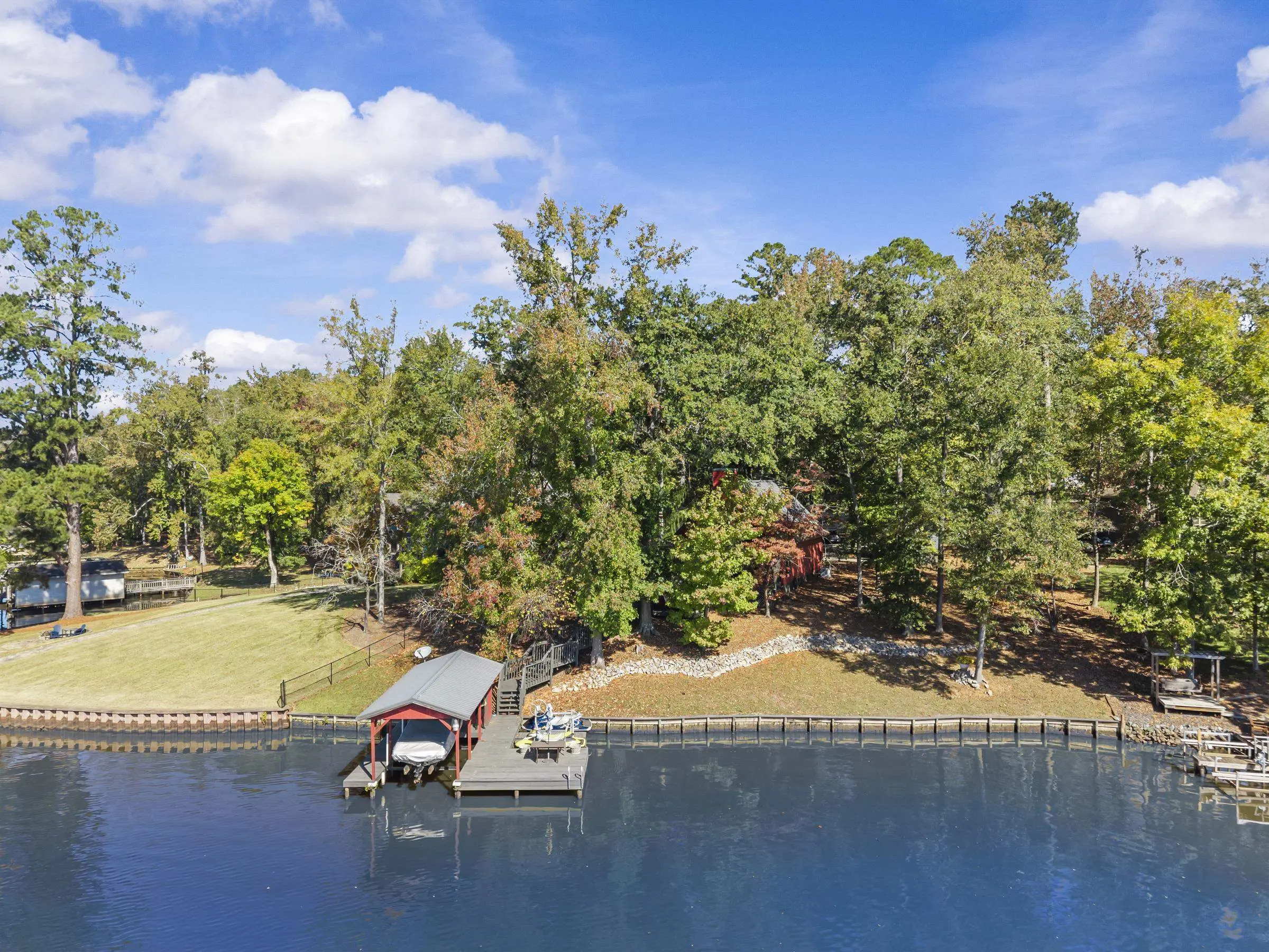 OOOOHHHHH LOOK AT THIS ONE! TRUE DOLLBABY A-FRAME OOZING RUSTIC LAKE CHARM WHILE EXUDING MINT CONDITION VIBERY! This is a "RUN-TO-IT" property! Yes, it's small....BUT SO VERY SWEET! Quality and love have been poured into this long time owner's home. Incredible lakeside screened porch, new quality sliding lakeside doors, fresh decking featuring firepit area - Single boathouse with jet ski lifts and DEEP WATER overlooking nothing but protected natural shoreline across the lake. This one is special. SOLD FULLY FURNISHED WITH BOAT! Fee simple.