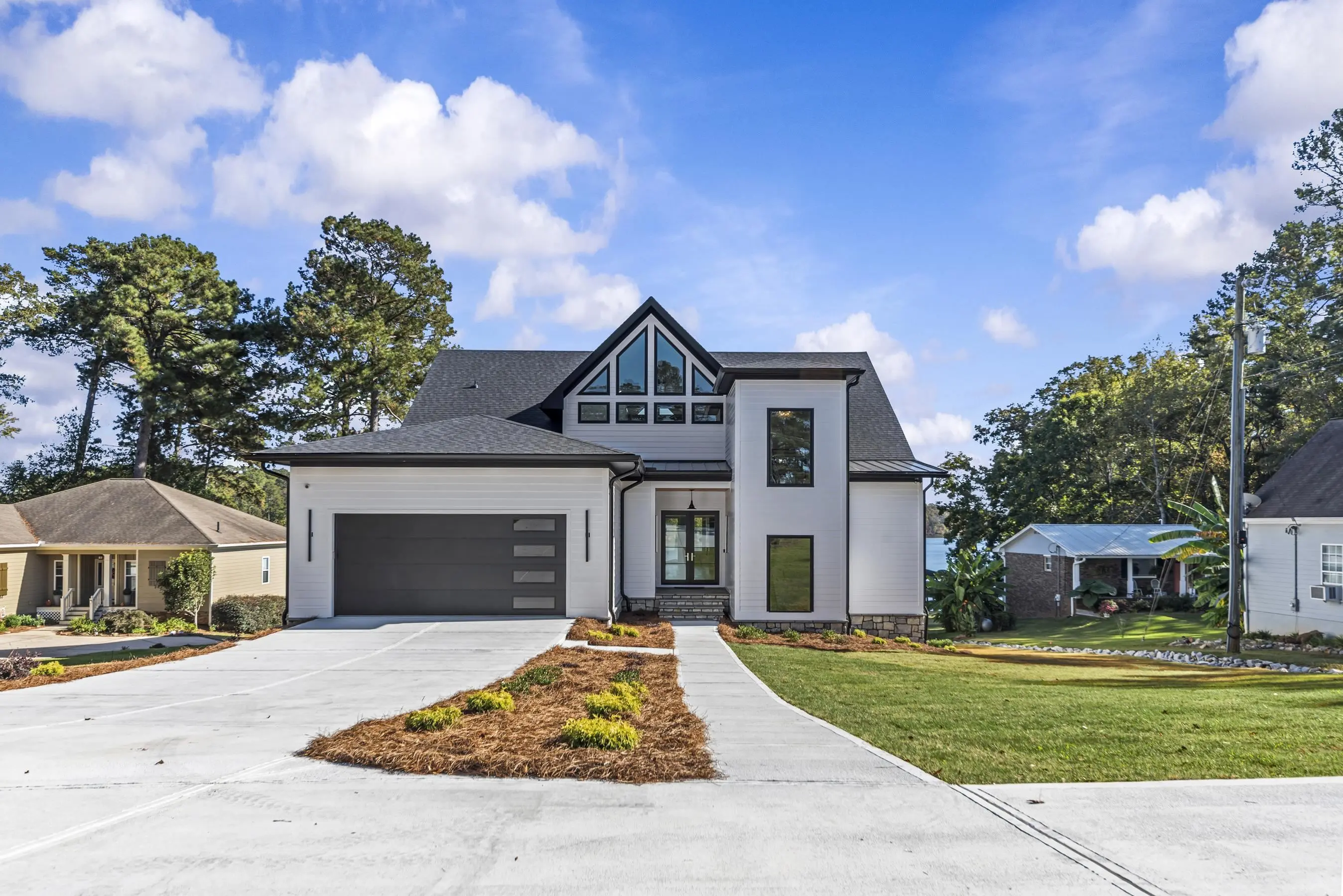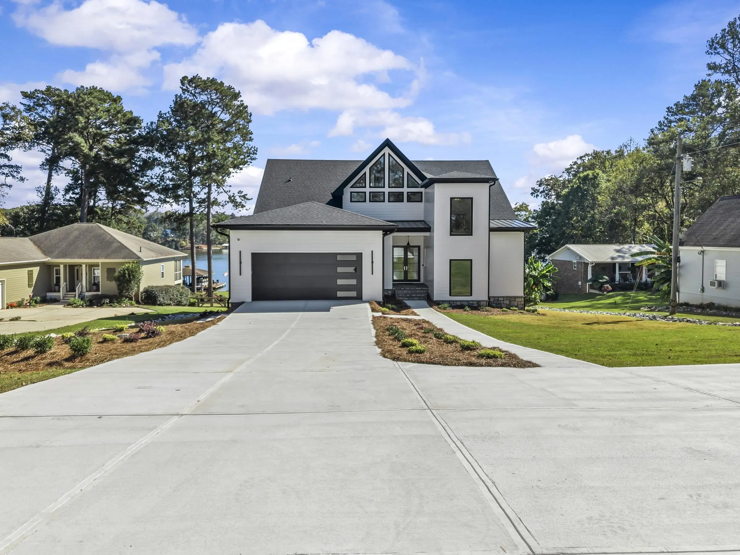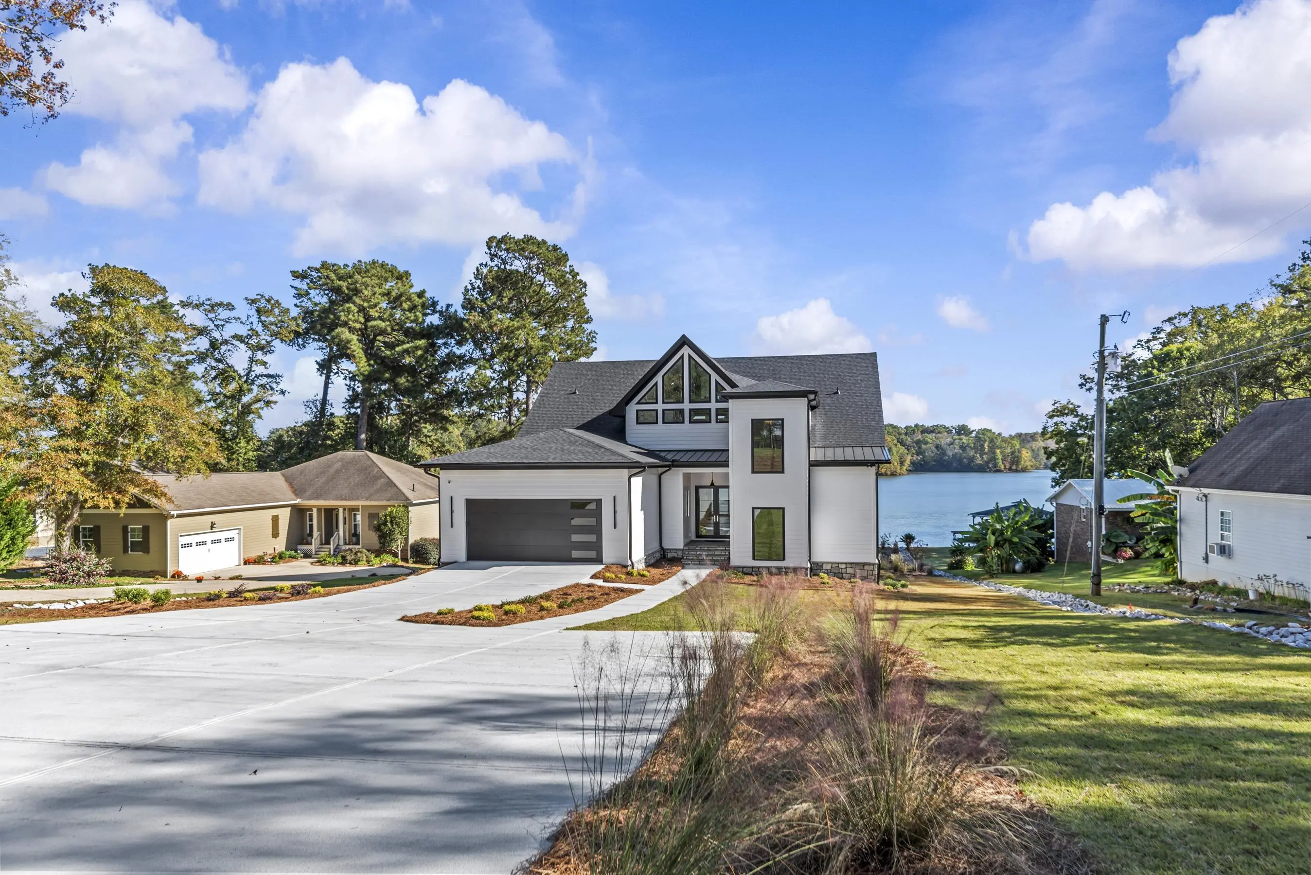 Welcome to 1089B Crooked Creek Road. Discover the perfect blend of modern luxury and timeless design in the new lakefront construction masterpiece on the coveted shores of Lake Sinclair. This expansive 5 bedroom, 5 full bath, 1 half bath home is thoughtfully designed for effortless entertaining and relaxed everyday living. Step inside to soaring 28 ft vaulted ceiling in Great room showcasing meticulous craftmanship at every turn--wooden beams, custom tiled fireplace, custom cabinetry, modern lighting and full wet bar. Main level features a serene primary suite w/ fireplace, extra large shower, soaking tub and walk in closet w/ custom shelving. Loft level offers 2 additional bedrooms with 12 ft ceilings, ensuite baths, closets w/ custom shelving and generous finished space. Terrace level features a large family room w/ 10 ft ceilings, wet bar w/ full refrigerator, laundry room and 2 additional bedrooms with expansive lake views. Open concept layout seamlessly connects the gourmet kitchen, living and dining areas, all adorned with modern fixtures and designer finishes. Outdoors your private resort style oasis awaits. Relax on the covered porch overlooking beautifully landscaped grounds. The new max boathouse and seawall make boating, fishing, and lake days effortless. Perfectly situated minutes from Crooked Creek Marina, this home offers and unbeatable location and lifestyle. Whether you are searching for an extraordinary primary residence or a remarkable second home investment in the rapidly growing Lake Sinclair market, this property checks all the boxes. Home also features a 3 story elevator for convenience. Schedule your private tour today and experience lake living redefined. Owner is Licensed Real Estate Agent in Georgia.