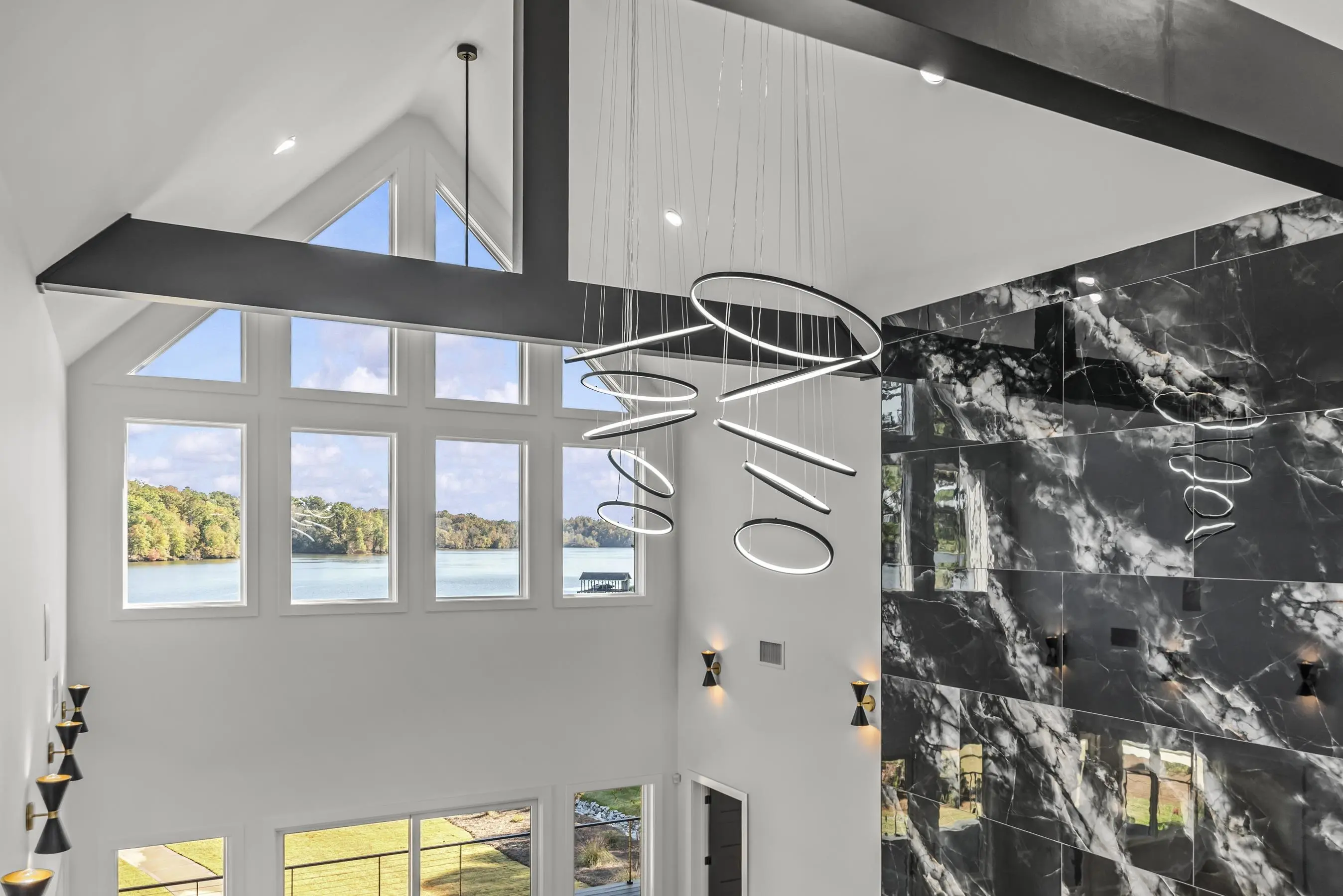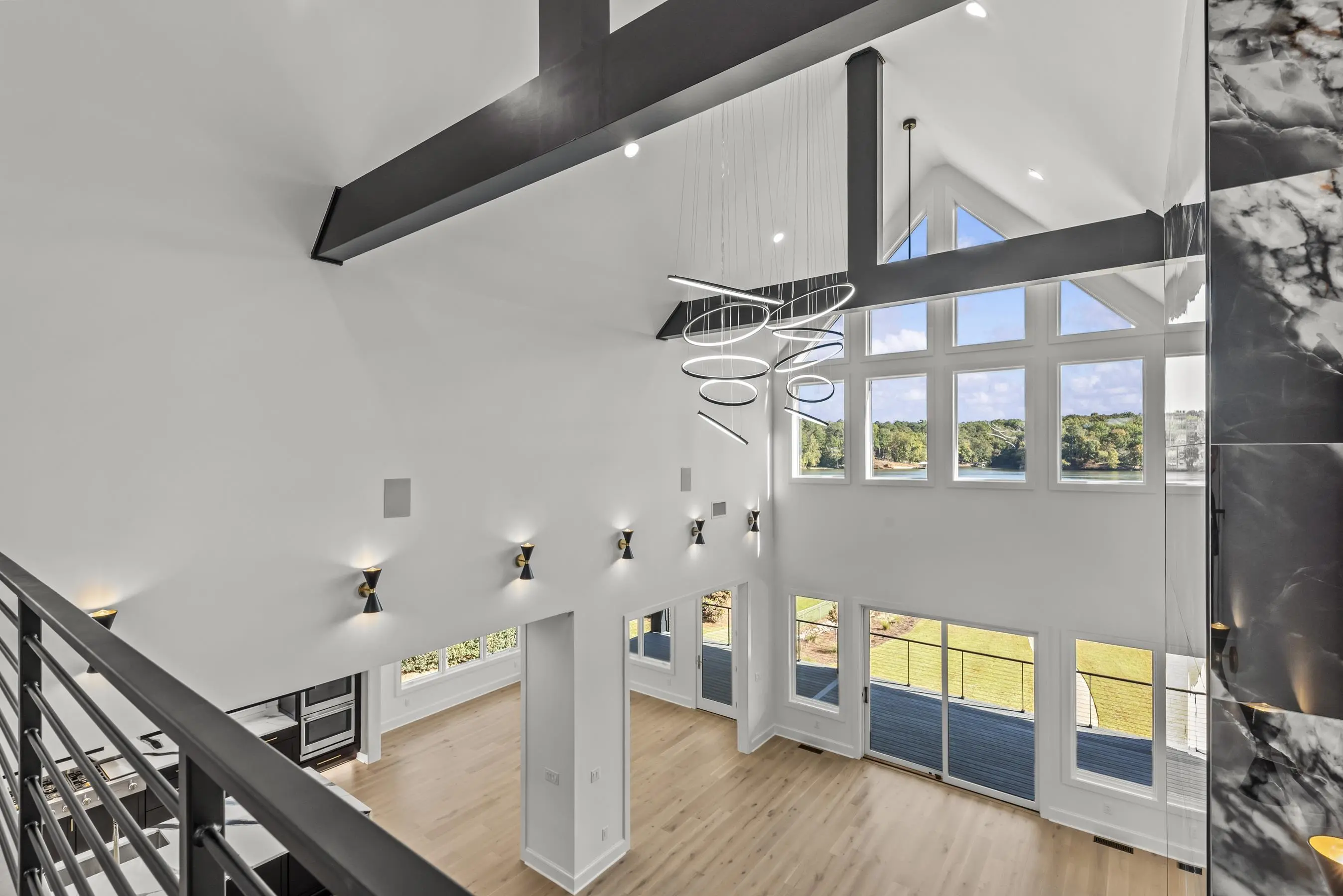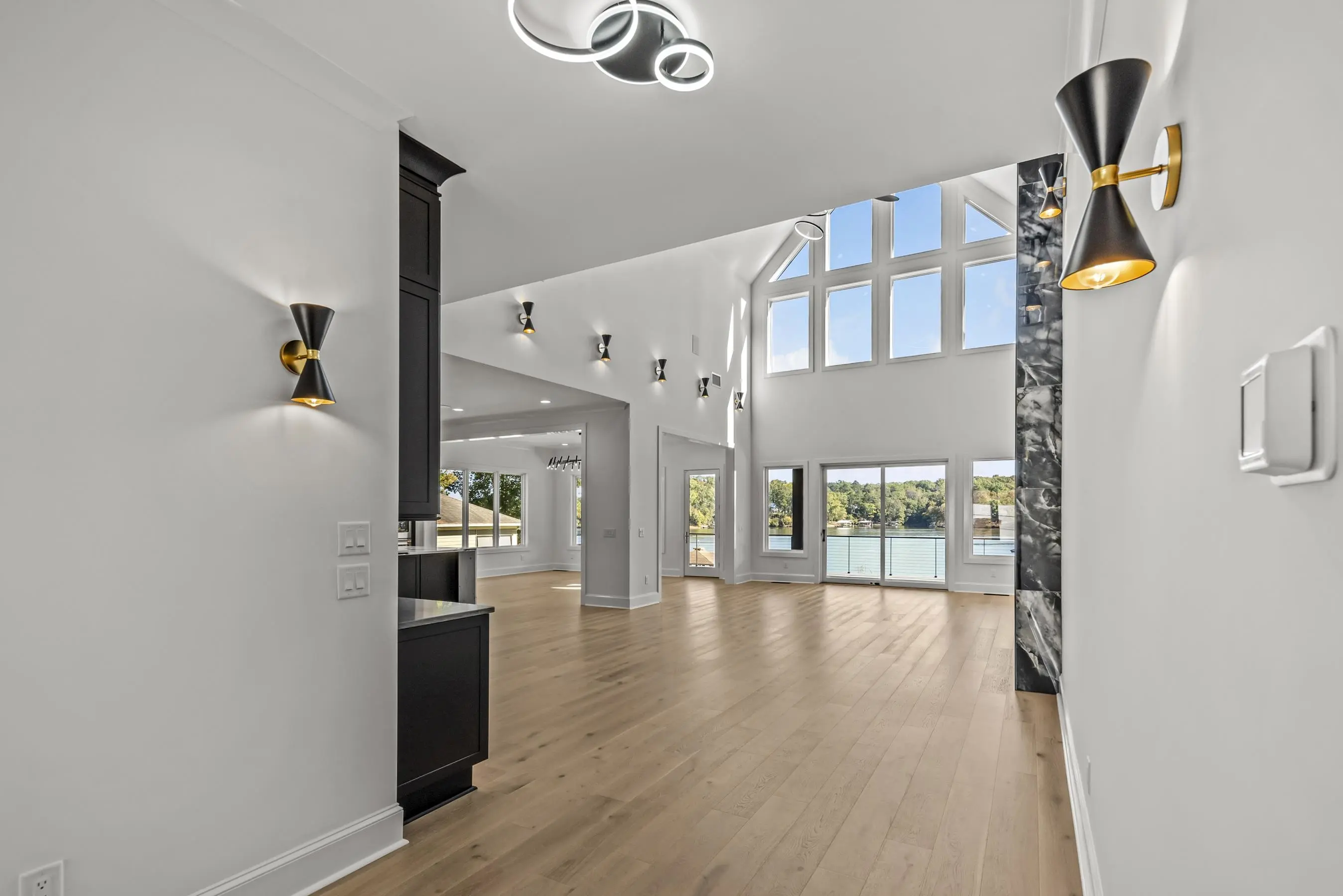 Welcome to 1089B Crooked Creek Road. Discover the perfect blend of modern luxury and timeless design in the new lakefront construction masterpiece on the coveted shores of Lake Sinclair. This expansive 5 bedroom, 5 full bath, 1 half bath home is thoughtfully designed for effortless entertaining and relaxed everyday living. Step inside to soaring 28 ft vaulted ceiling in Great room showcasing meticulous craftmanship at every turn--wooden beams, custom tiled fireplace, custom cabinetry, modern lighting and full wet bar. Main level features a serene primary suite w/ fireplace, extra large shower, soaking tub and walk in closet w/ custom shelving. Loft level offers 2 additional bedrooms with 12 ft ceilings, ensuite baths, closets w/ custom shelving and generous finished space. Terrace level features a large family room w/ 10 ft ceilings, wet bar w/ full refrigerator, laundry room and 2 additional bedrooms with expansive lake views. Open concept layout seamlessly connects the gourmet kitchen, living and dining areas, all adorned with modern fixtures and designer finishes. Outdoors your private resort style oasis awaits. Relax on the covered porch overlooking beautifully landscaped grounds. The new max boathouse and seawall make boating, fishing, and lake days effortless. Perfectly situated minutes from Crooked Creek Marina, this home offers and unbeatable location and lifestyle. Whether you are searching for an extraordinary primary residence or a remarkable second home investment in the rapidly growing Lake Sinclair market, this property checks all the boxes. Home also features a 3 story elevator for convenience. Schedule your private tour today and experience lake living redefined. Owner is Licensed Real Estate Agent in Georgia.