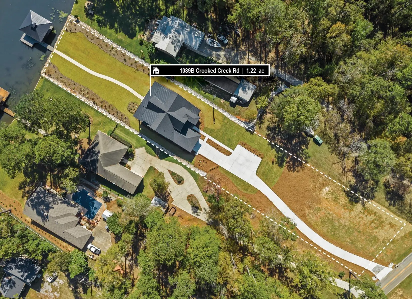 - FeaturesBoat House, Irrigation System, Lake Pump, Paved Driveway, Paved Walkway, Professional Landscaping