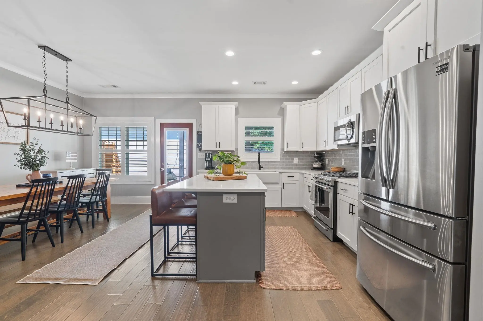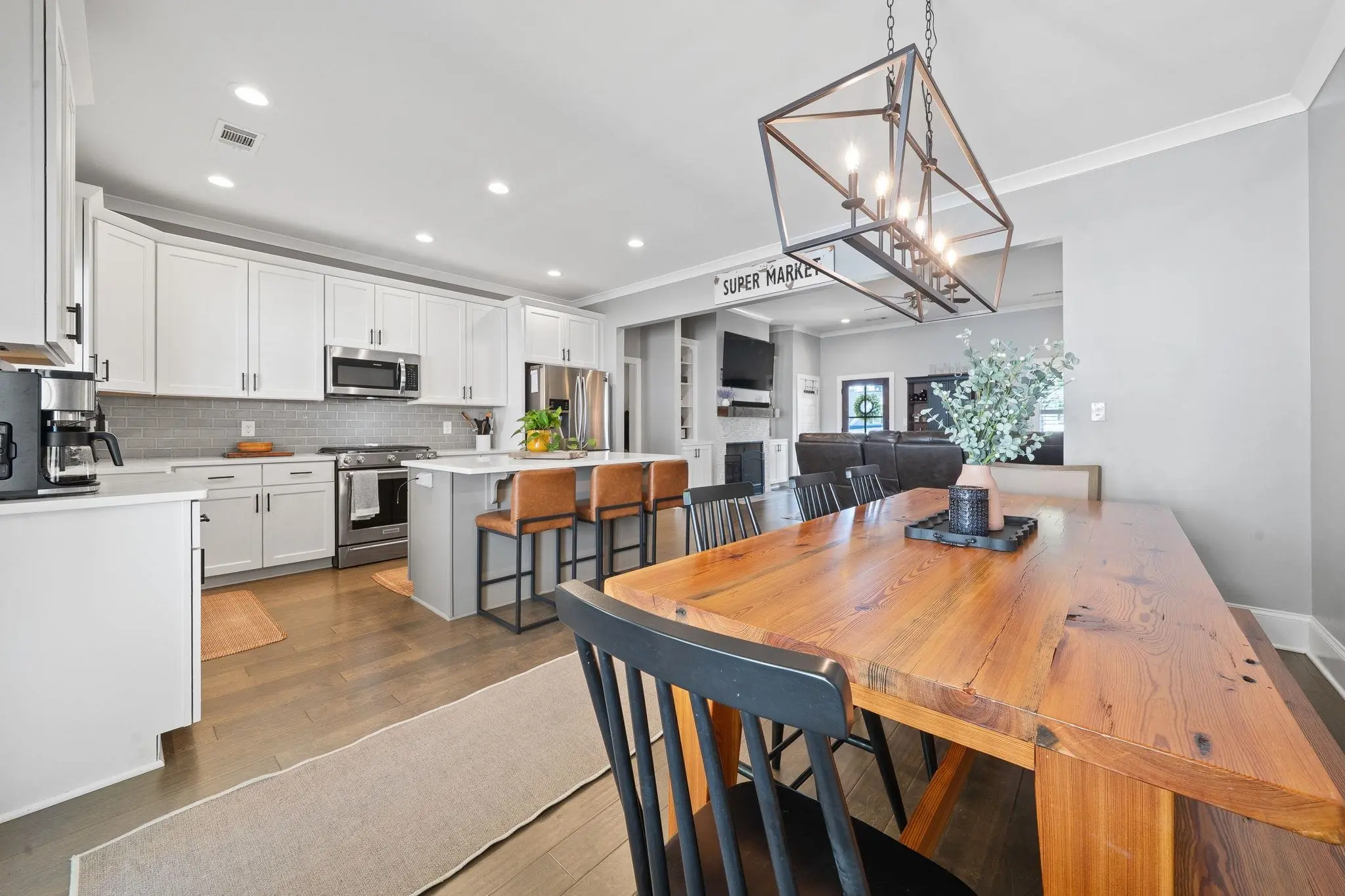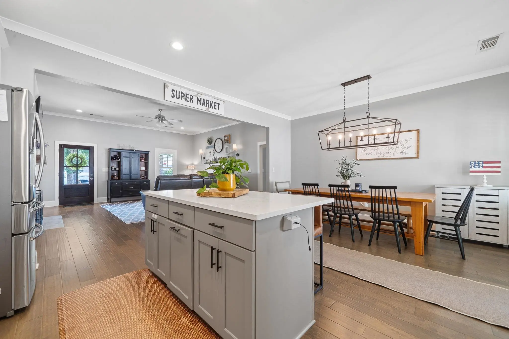 WALKABLE MADISON LIVING WITH MODERN UPGRADES! Built in 2018, this beautiful 3-bedroom, 2.5-bath home combines small-town charm with modern design. The open-concept layout was thoughtfully planned and features custom touches throughout. The chef’s kitchen is a showstopper, offering a KitchenAid gas range, quartz countertops, a large island, and plenty of workspace for cooking and entertaining. A split floor plan provides privacy, with the primary suite tucked away from the secondary bedrooms. There’s also a dedicated office or flex room, perfect for working from home or hobbies. Custom tile accents run through all wet areas, adding both style and durability, while the custom laundry room brings function and flair. Outside, enjoy a zero-maintenance backyard with newly installed AstroTurf, perfect for year-round play and relaxation without the upkeep. The detached two-car garage offers additional storage and convenience. Located within the Madison city limits, this home offers true walkability—just a short stroll to downtown shops, dining, and local events. Experience the perfect blend of small-town charm and modern living, all on one level!