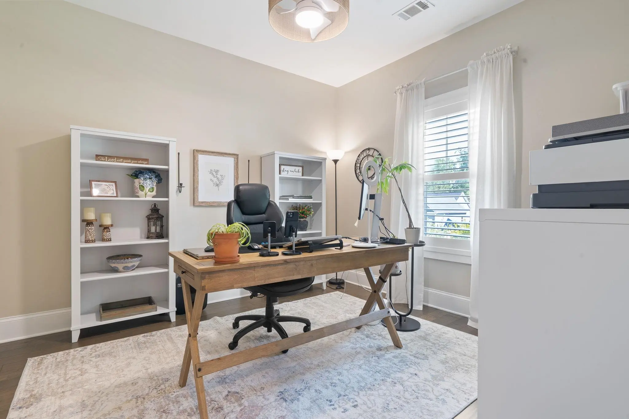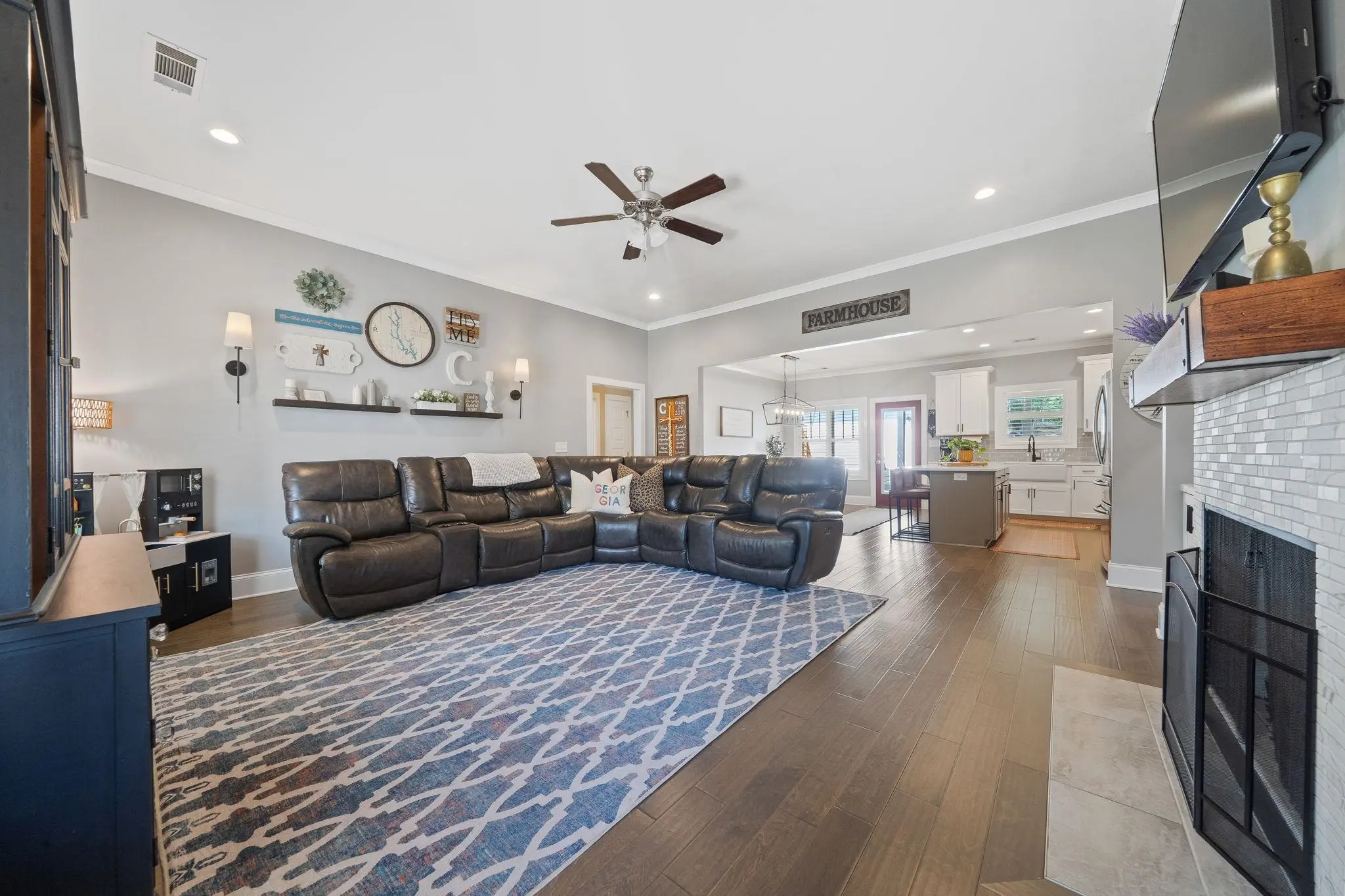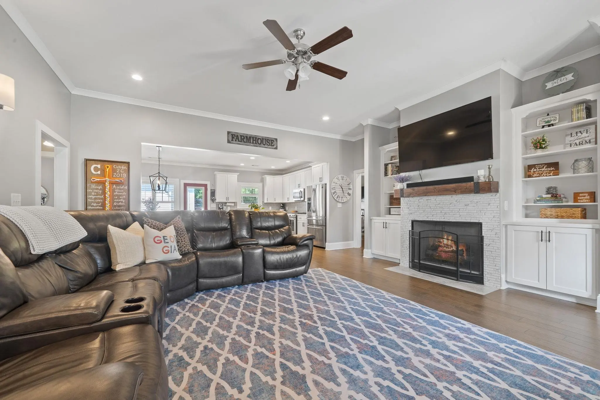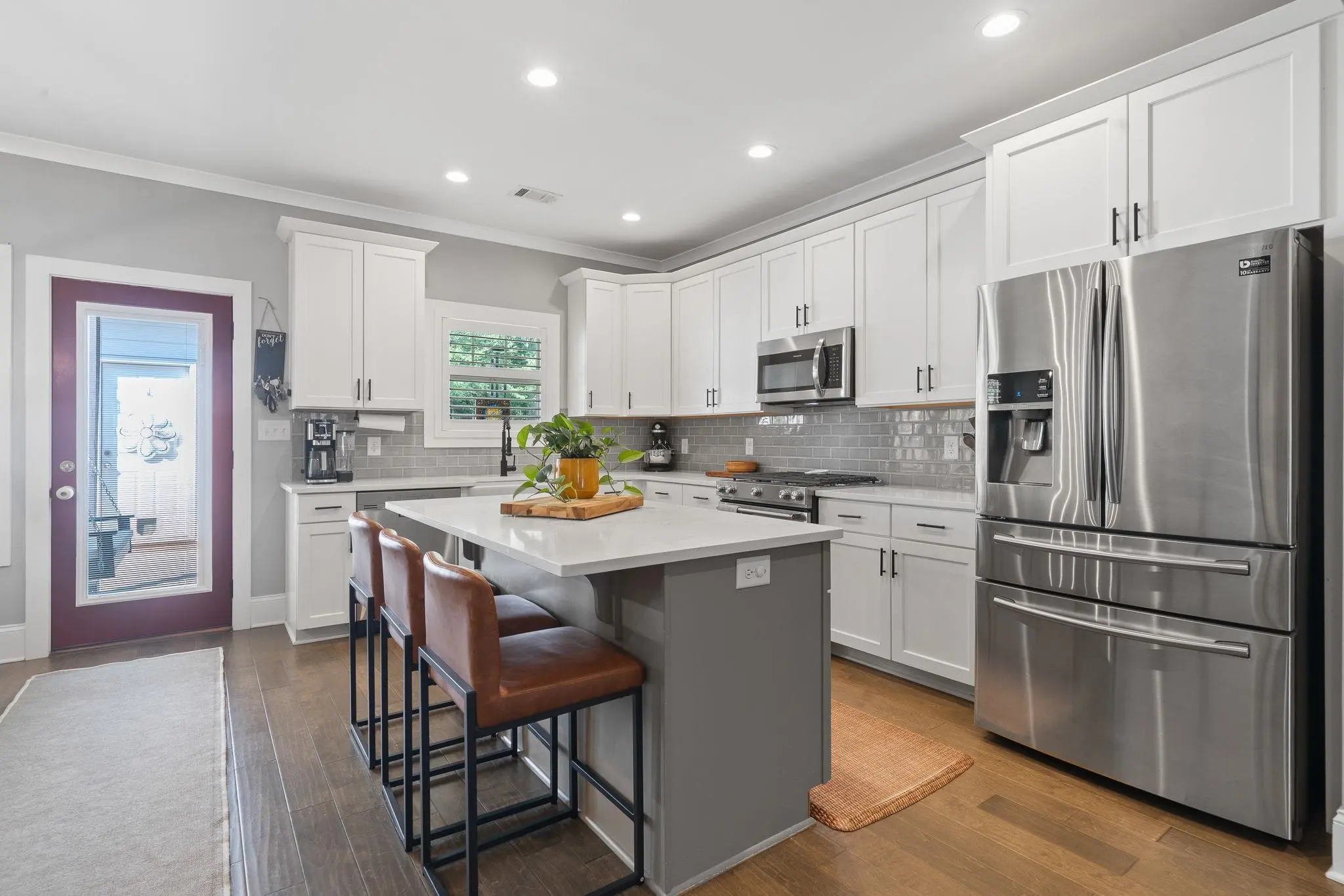 WALKABLE MADISON LIVING WITH MODERN UPGRADES! Built in 2018, this beautiful 3-bedroom, 2.5-bath home combines small-town charm with modern design. The open-concept layout was thoughtfully planned and features custom touches throughout. The chef’s kitchen is a showstopper, offering a KitchenAid gas range, quartz countertops, a large island, and plenty of workspace for cooking and entertaining. A split floor plan provides privacy, with the primary suite tucked away from the secondary bedrooms. There’s also a dedicated office or flex room, perfect for working from home or hobbies. Custom tile accents run through all wet areas, adding both style and durability, while the custom laundry room brings function and flair. Outside, enjoy a zero-maintenance backyard with newly installed AstroTurf, perfect for year-round play and relaxation without the upkeep. The detached two-car garage offers additional storage and convenience. Located within the Madison city limits, this home offers true walkability—just a short stroll to downtown shops, dining, and local events. Experience the perfect blend of small-town charm and modern living, all on one level!