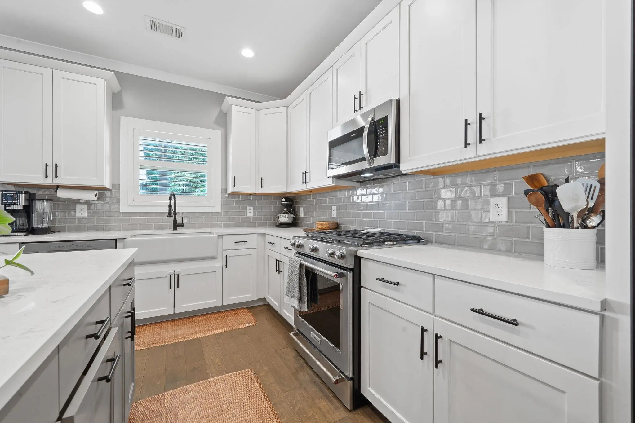 - AppliancesBuilt in Microwave, Range, Refrigerator, StainlessSteel Appliances