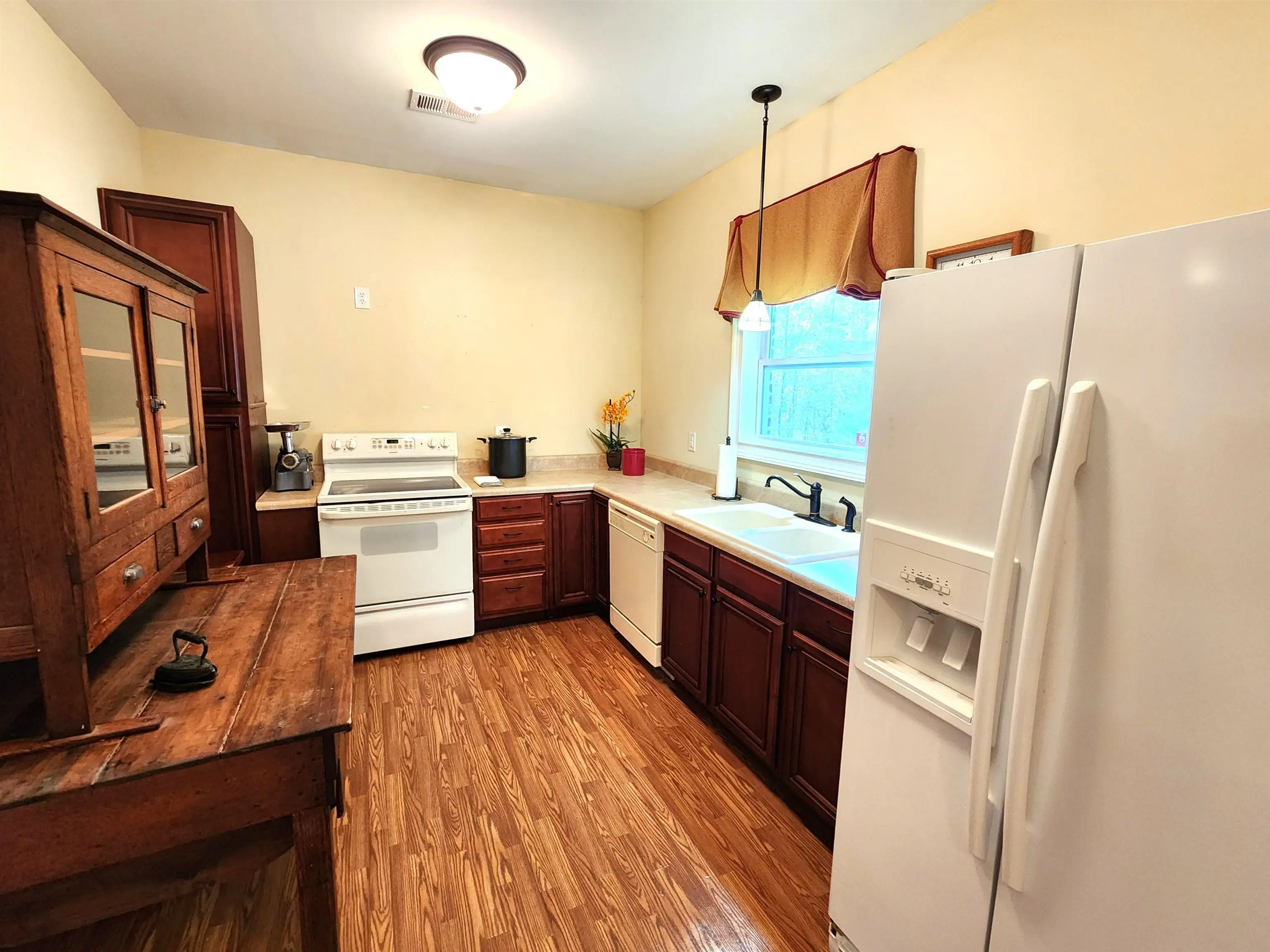 Lovely quality, All-Brick home in Reynolds, Cherokee Point. Over 4000 sq ft, four Bedrooms, three and one half Baths, built in 2008 on 2.41 acres. The main level has rare, real, hardwood floors throughout. The living room is open and flows nicely from the entry to the elegant dining room and living room with high, vaulted ceilings. The amazing kitchen has a large island and breakfast bar, tons of cabinets, pantry, coffee nook and granite countertop space for the avid cook. The breakfast room and keeping room, lead to the pretty, screened porch overlooking the private back yard, the perfect spot for morning coffee or evening wine. The primary bedroom, located on main level has double sinks, separate tub, shower, tiled floors, granite counters and walk-in closet. A half bath is located off the breakfast room. The laundry room with has an area to fold and hang clothes. The large terrace level has great space for everyone, including living, recreation room, wet bar, office space, a second full kitchen, three bedrooms and two full baths. There is a covered patio just off the back, perfect for grilling and relaxing. The three car garage is a side entry and the driveway has additional space for parking for guests. Home includes whole house water softener. Washer, dryer and refrigerator remain. There is a boat ramp a short distance from home and the property also includes a deeded storage space perfect for your boat and toys, (owners have kept a 22 ft boat in space), even room for trailer storage outside. This is a beautiful, well maintained home in a serine community perfectly located between the Publix shopping area and I-20 access.