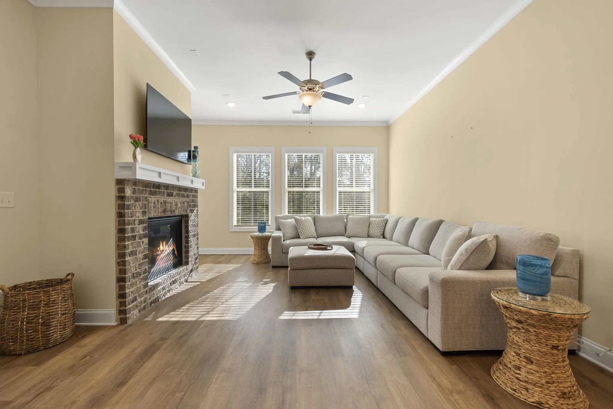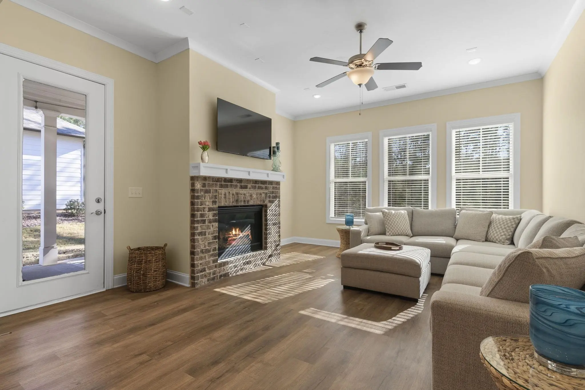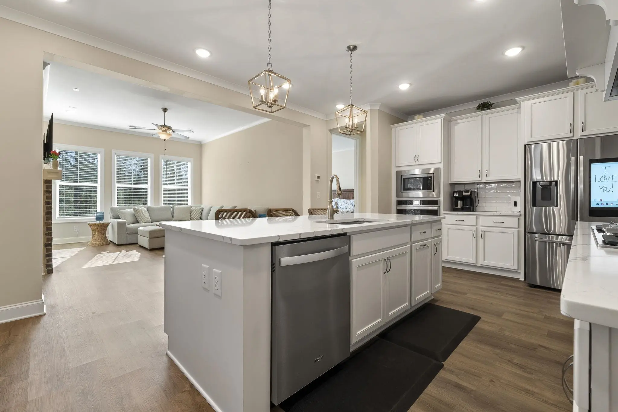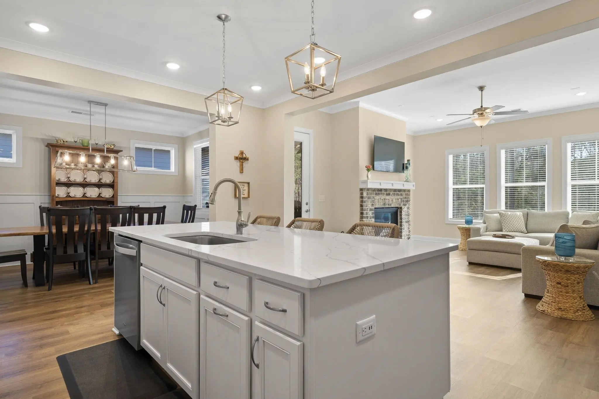 This 4-bedroom, 3-bathroom home offers refined living in the exclusive Harbor Club community on Lake Oconee. The open floor plan is filled with natural light and flows seamlessly from the contemporary kitchen — featuring quartz countertops, premium appliances, and a spacious island — into the inviting living area with a cozy fireplace. The primary suite is a private sanctuary with a spa-inspired bath including dual vanities, a soaking tub, and a walk-in shower. Three additional bedrooms provide ample space for family, guests, or a home office. Located on a wooded lot, outdoor living is equally inviting with a covered patio perfect for morning coffee or evening relaxation. Residents enjoy championship golf, a full-service marina, tennis and pickleball courts, fitness facilities, walking trails, and more, all with Lake Oconee just steps away.