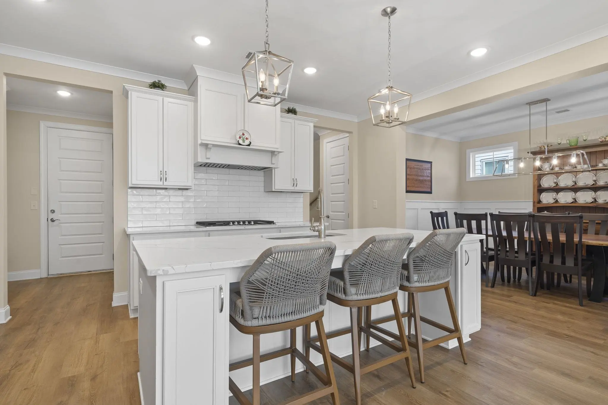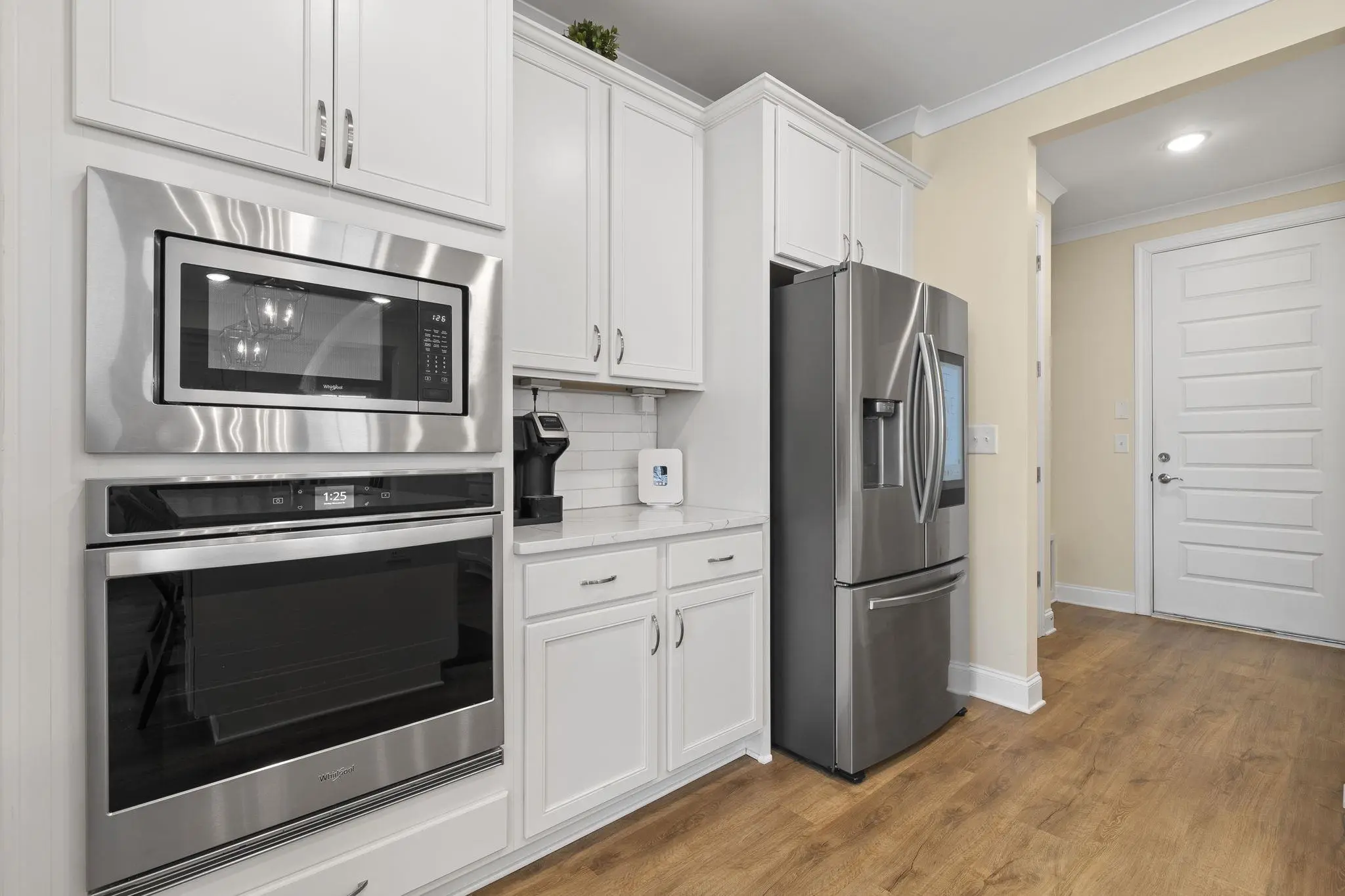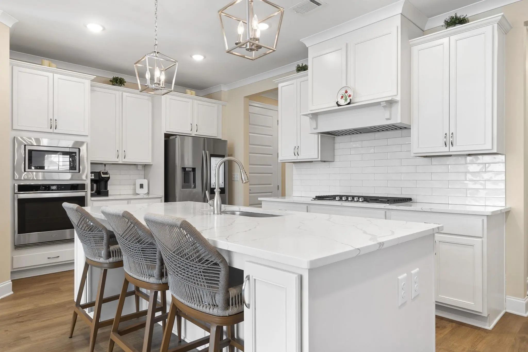 - AppliancesBuilt in Microwave, Cook Top, Dishwasher, Garbage Disposal, Vent Hood, Wall Oven, StainlessSteel Appliances