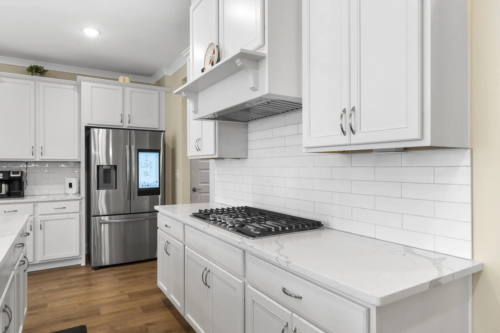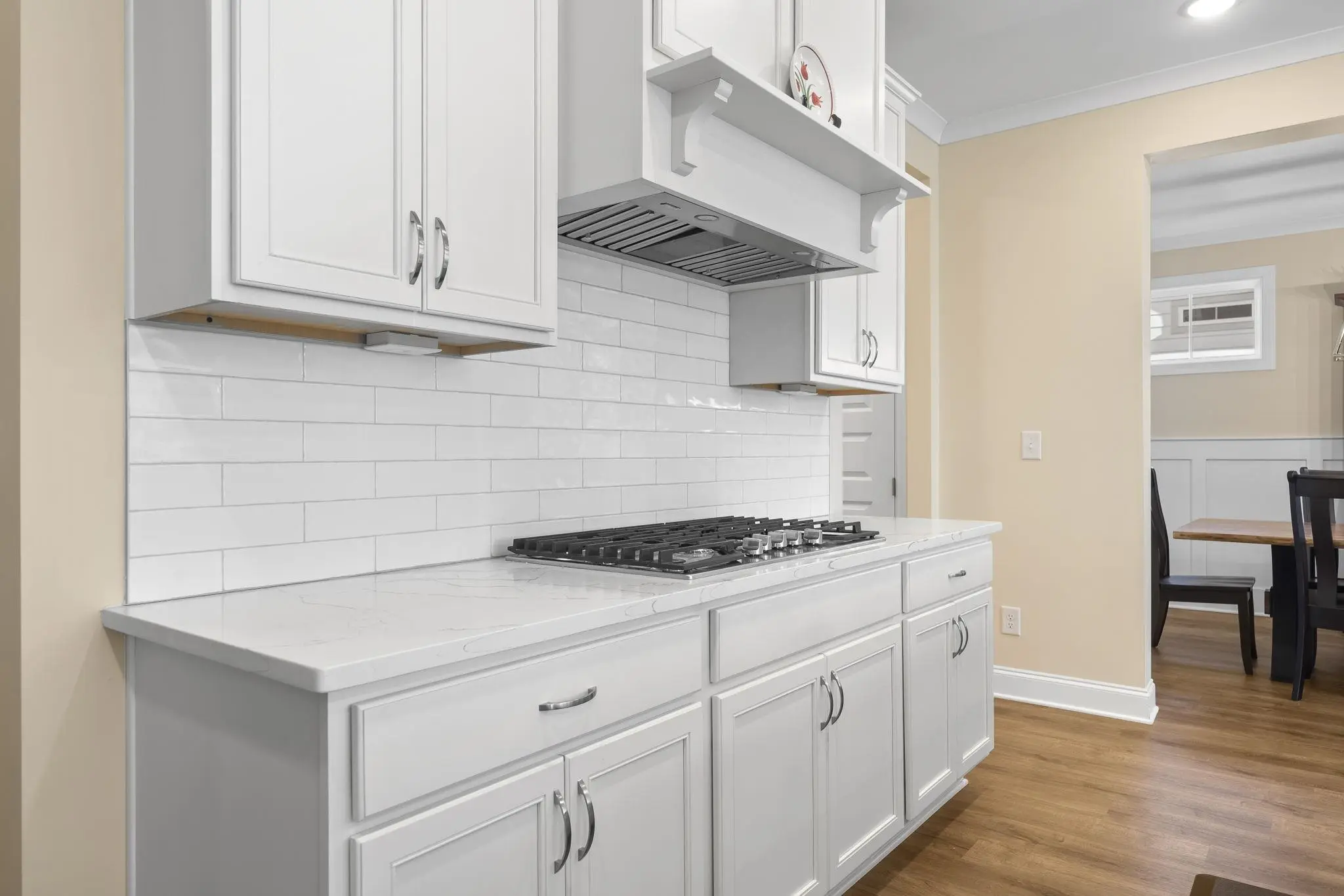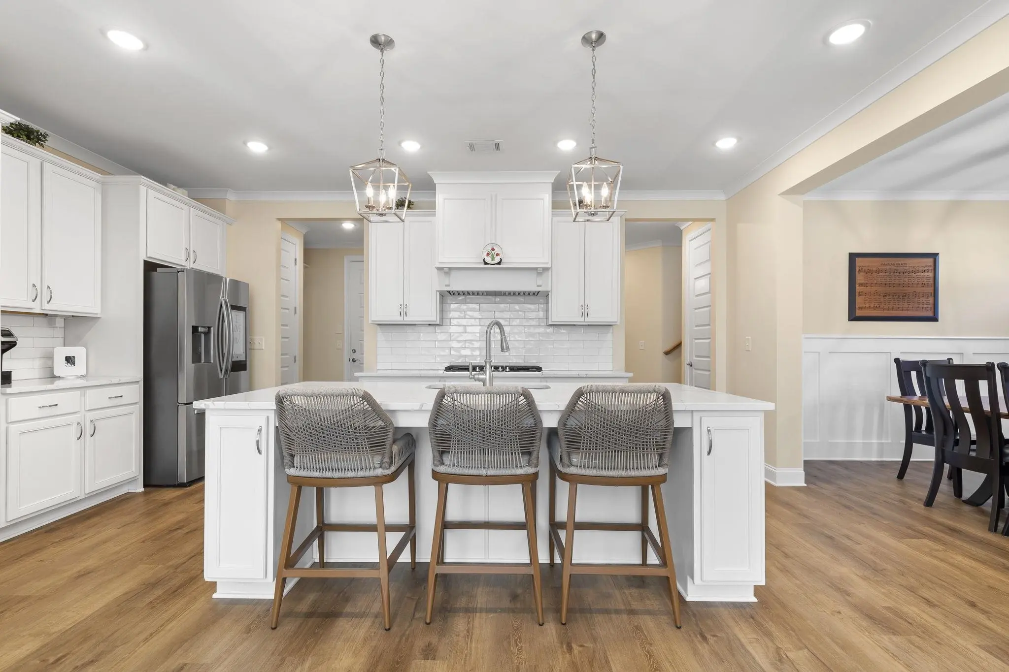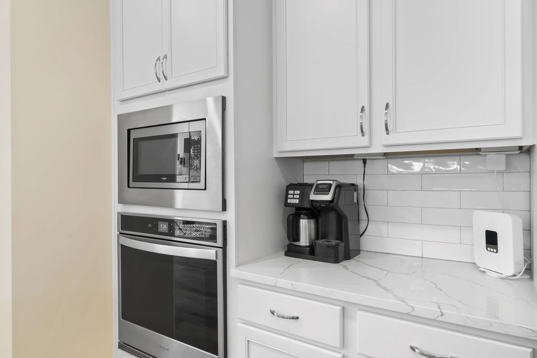 - AppliancesBuilt in Microwave, Cook Top, Dishwasher, Garbage Disposal, Vent Hood, Wall Oven, StainlessSteel Appliances