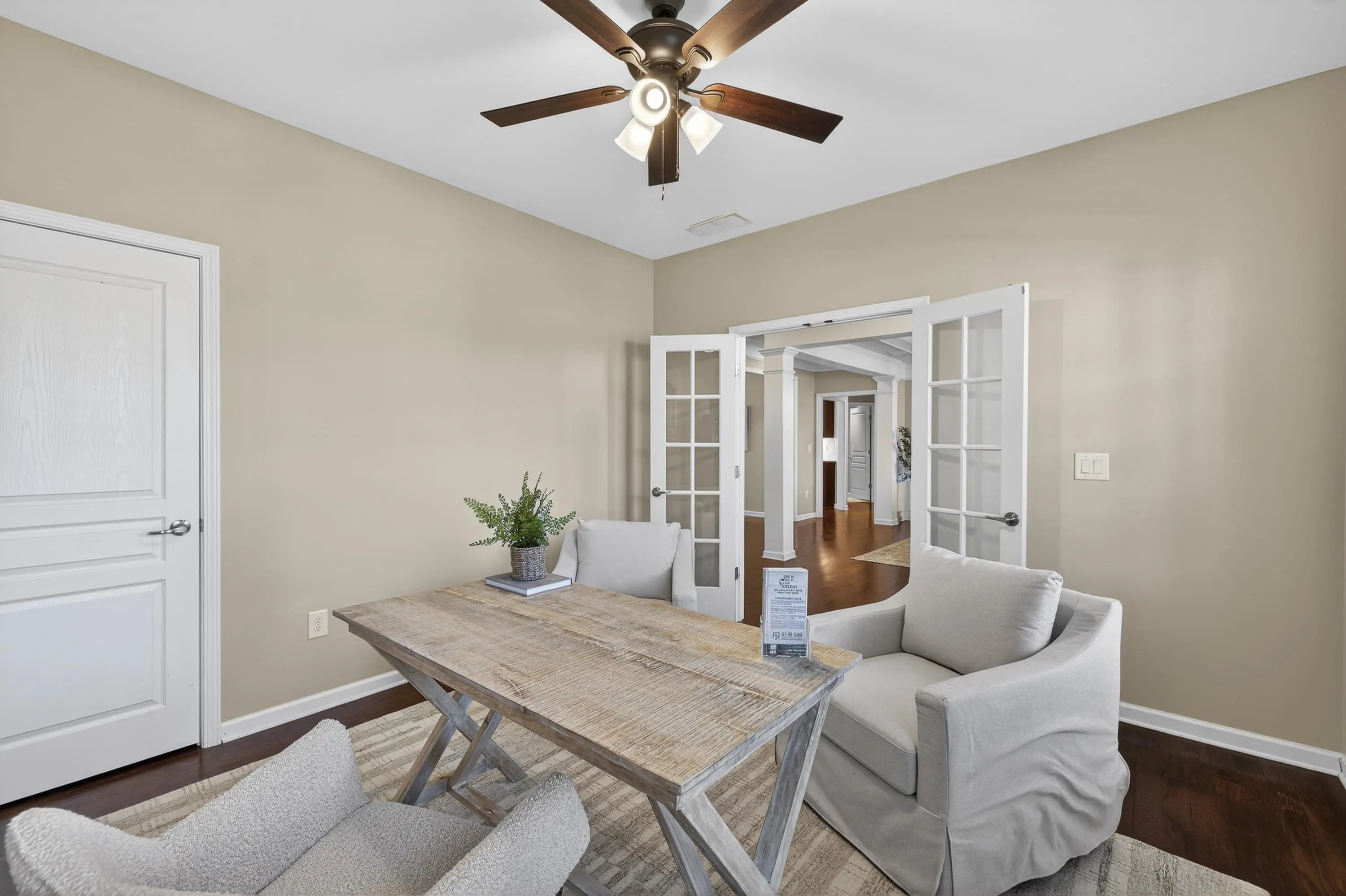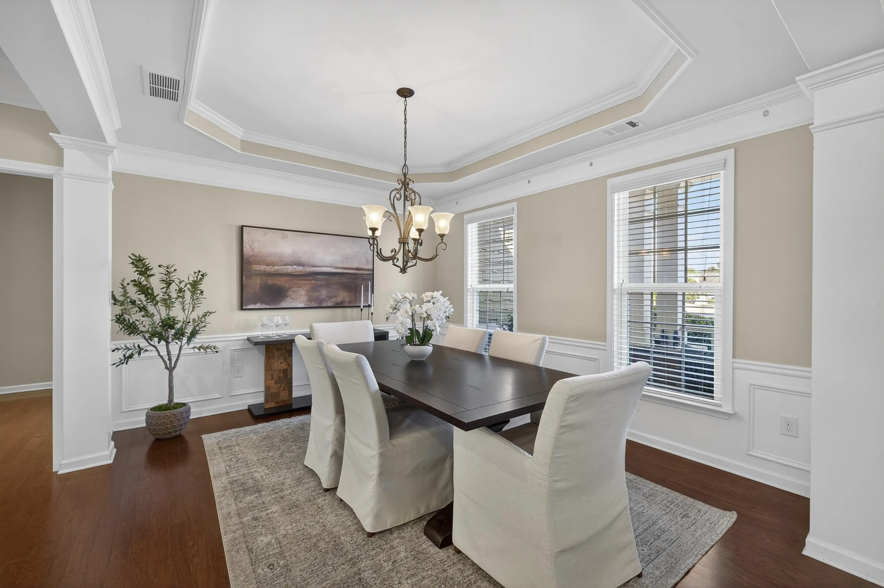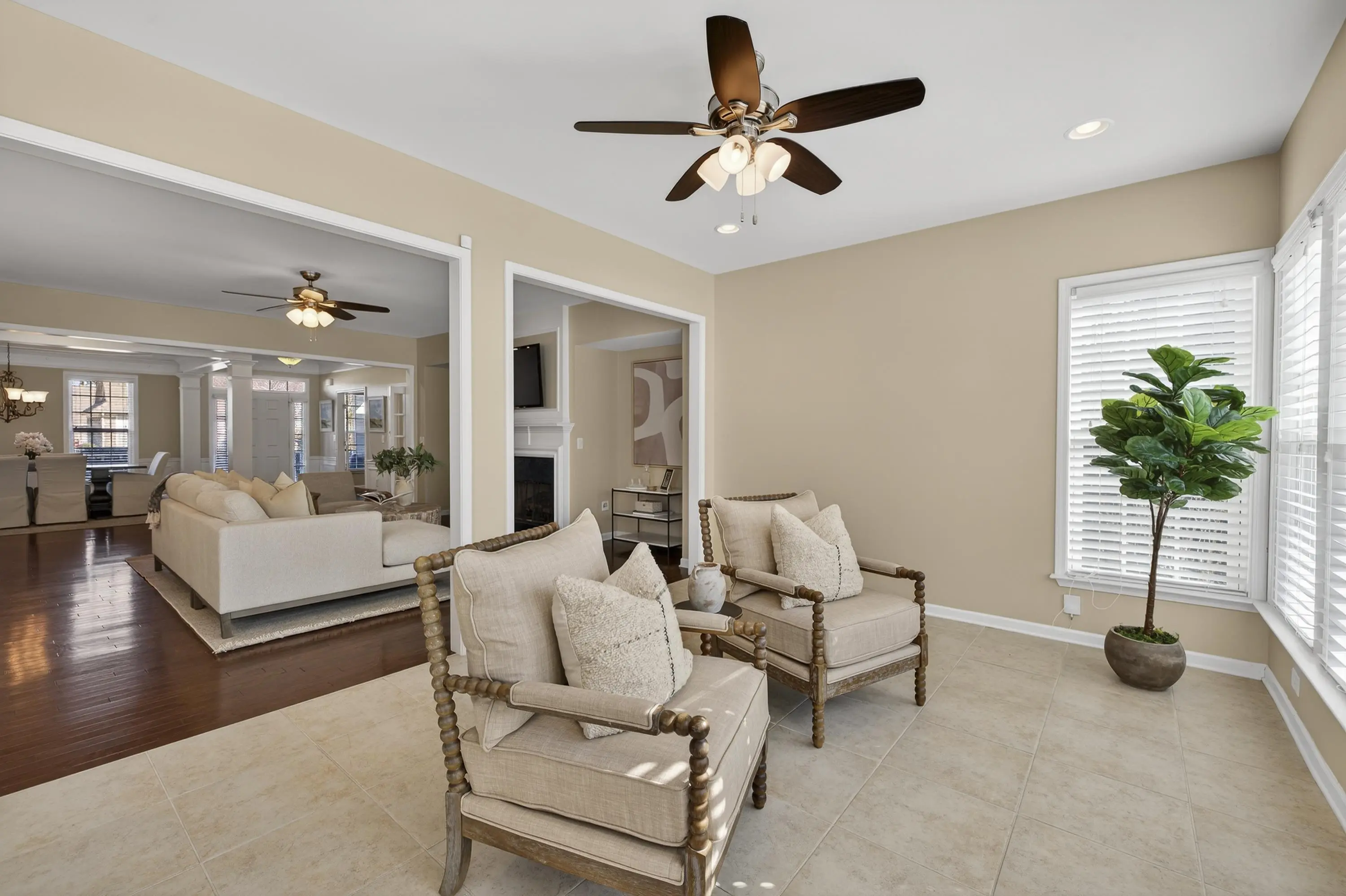 IMMACULATE HOME IN DEL WEBB â YOUR PRIVATE OASIS AWAITS! WELCOME TO YOUR DREAM HOME IN THE HIGHLY SOUGHT-AFTER DEL WEBB COMMUNITY! THIS METICULOUSLY MAINTAINED RESIDENCE OFFERS AN ABUNDANCE OF PRIVACY AND AN OPEN FLOOR PLAN THAT IS PERFECT FOR BOTH RELAXATION AND ENTERTAINING. STEP INSIDE TO DISCOVER A SPACIOUS LIVING AREA THAT FLOWS SEAMLESSLY INTO A LARGE SUNROOM, IDEAL FOR ENJOYING YOUR MORNING COFFEE WHILE BASKING IN NATURAL LIGHT. THE WELL-APPOINTED KITCHEN FEATURES MODERN APPLIANCES AND AMPLE COUNTER SPACE, MAKING MEAL PREP A DELIGHT. RETREAT TO THE EXPANSIVE MASTER BEDROOM, COMPLETE WITH A LUXURIOUS DOUBLE VANITY BATHROOM AND A GENEROUS WALK-IN CLOSET FEATURING A CUSTOM CLOSET SYSTEM. THIS HOME ALSO INCLUDES A LARGE OFFICE WITH ELEGANT FRENCH DOORS, PERFECT FOR WORKING FROM HOME OR PURSUING HOBBIES. A DEDICATED DINING ROOM AND AN ADDITIONAL GUEST BEDROOM PROVIDE PLENTY OF SPACE FOR FAMILY AND FRIENDS. OUTSIDE, THE BACKYARD IS A BLANK CANVAS FOR YOUR PERSONAL OASIS. CREATE YOUR DREAM OUTDOOR SPACE FOR RELAXATION AND ENTERTAINING, SURROUNDED BY LUSH LANDSCAPING THAT ENSURES YOUR PRIVACY. VERY CONVENIENTLY LOCATED TO THE BOAT RAMP, DOCKS, CLUBHOUSE AND MORE. DONâT MISS OUT ON THIS INCREDIBLE OPPORTUNITY TO OWN A STUNNING HOME IN DEL WEBB. SCHEDULE YOUR SHOWING TODAY AND EXPERIENCE THE PERFECT BLEND OF COMFORT, STYLE, AND SERENITY!