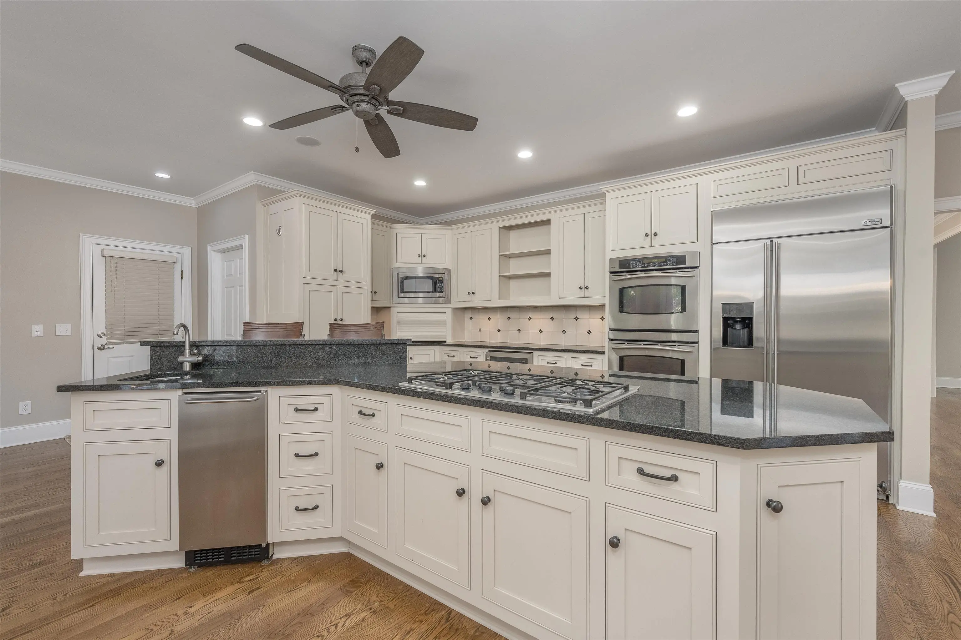 - AppliancesBuilt in Microwave, Cook Top, Dishwasher, Double Ovens, Dryer, Freezer, Garbage Disposal, Refrigerator, Separate Ice Machine, Vent Hood, Wall Oven, Washer, Wine Cooler, StainlessSteel Appliances