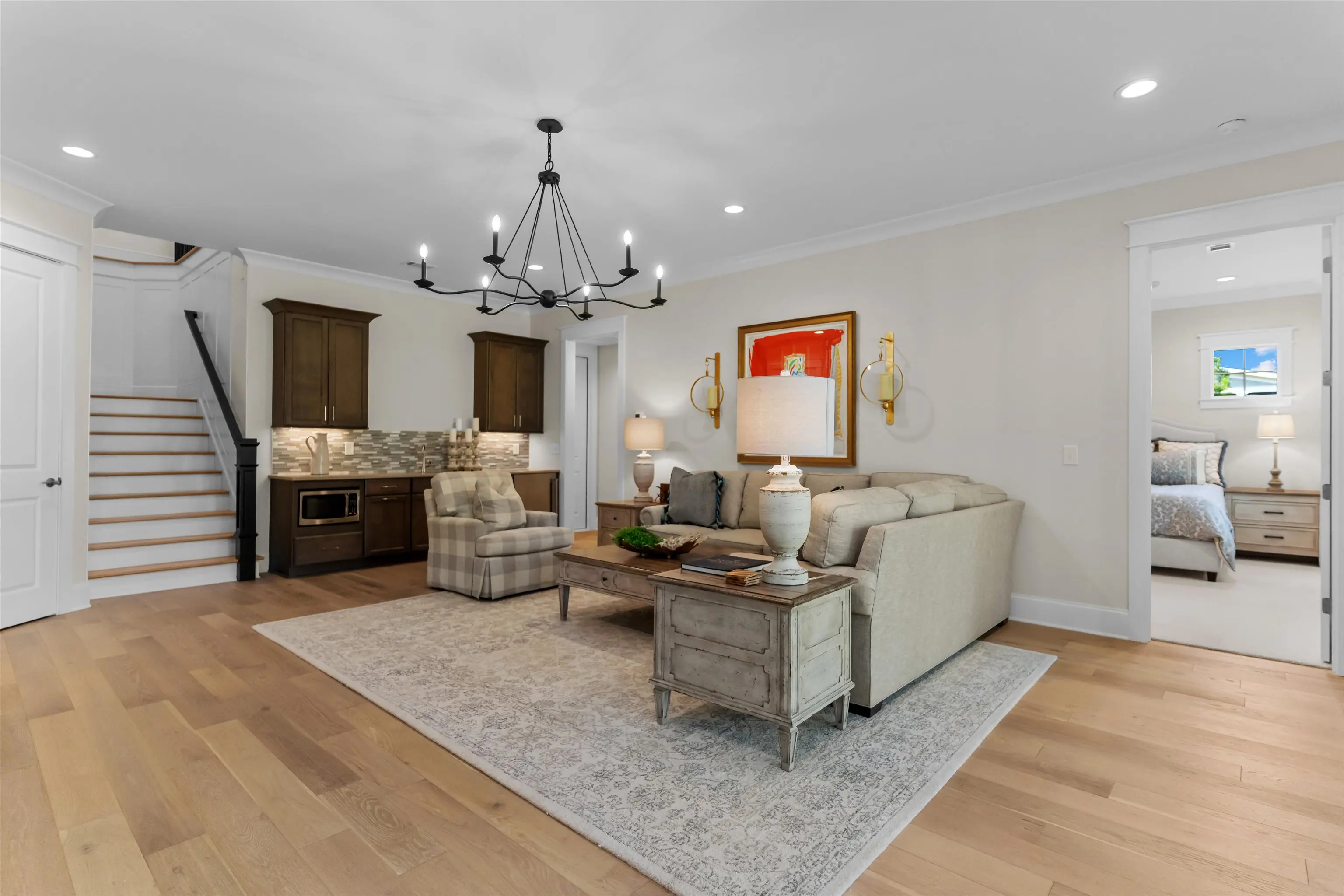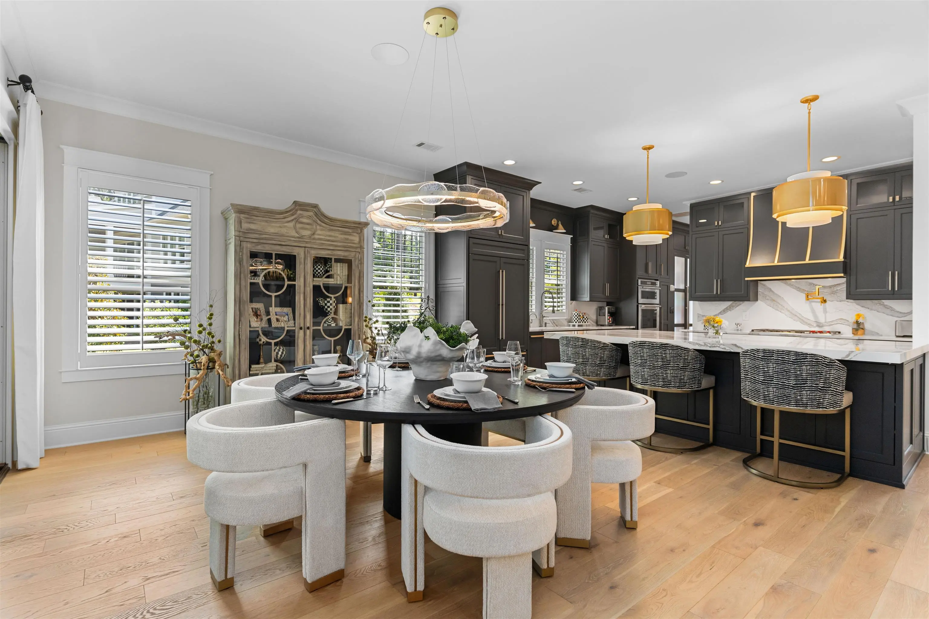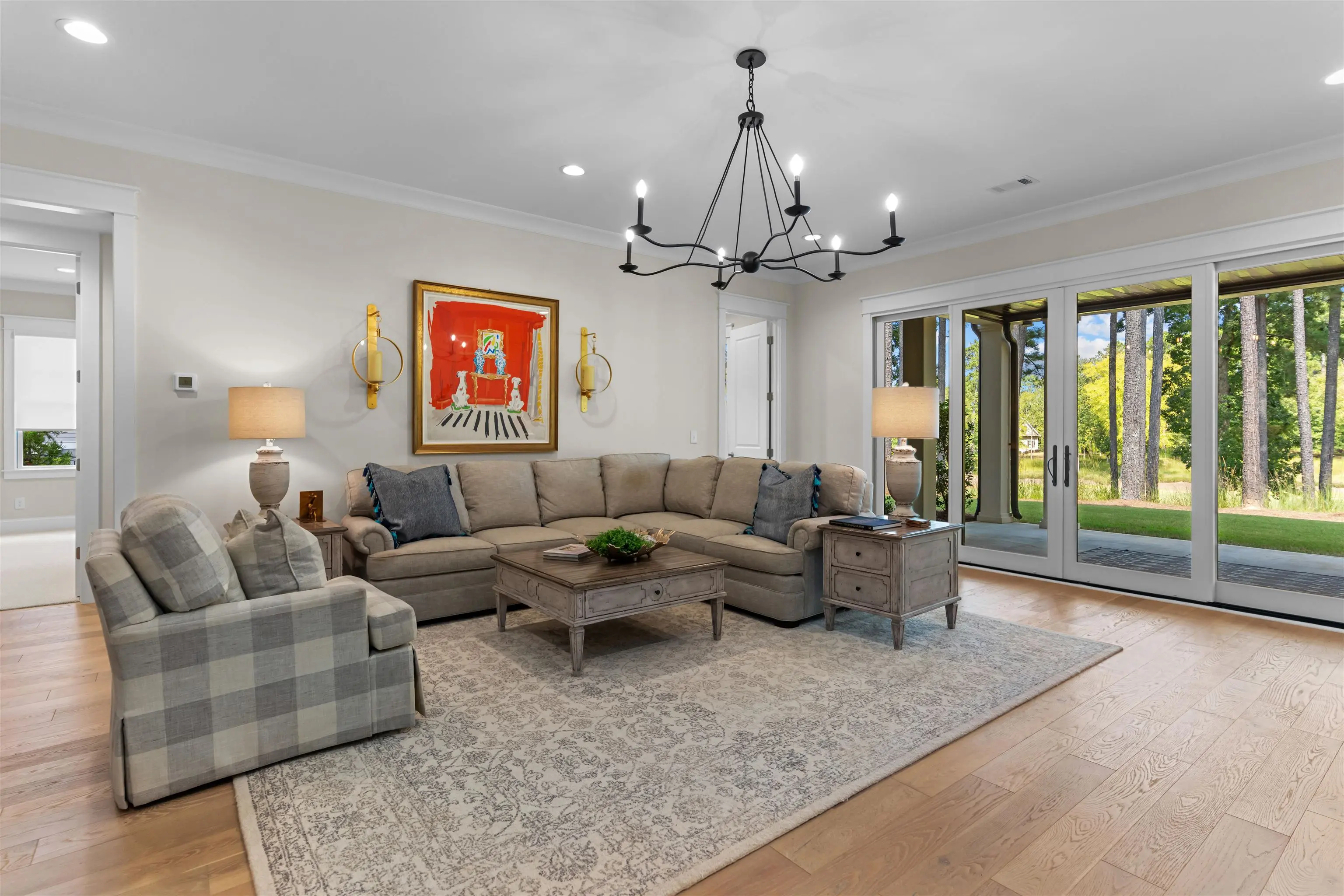 Impeccably Reimagined Custom Golf Residence on the Creek Course at Reynolds Lake Oconee Just Steps to the Driving Range. Experience luxury golf-course living at its finest in this exceptional custom home, beautifully reimagined by Black Sheep Interiors and ideally positioned along the prestigious Creek Course at Reynolds Lake Oconee. Offering sweeping tee-to-green views, this residence seamlessly blends modern sophistication with timeless Southern charm, delivering a truly turn-key lifestyle. Upon entry, a light-filled open floor plan unfolds, highlighted by luxury engineered flooring, plantation shutters, and integrated speakers throughout the main level. The great roomâanchored by a striking fireplaceâflows effortlessly into the dining area and a brand-new designer kitchen, creating an inviting setting for both elevated entertaining and everyday living. The kitchen is a true showpiece, featuring a Wolf range, Sub-Zero refrigerator, wine cooler, nugget ice maker, Cambria quartzite countertops, custom cabinetry, and a bespoke statement hood. Step onto the expansive screened porch, complete with privacy shades, where tranquil golf course views set the stage for al fresco dining and relaxed outdoor living amid manicured greens. The main-level primary suite offers a serene retreat with panoramic vistas and a newly designed, spa-inspired bathroom. A thoughtfully appointed guest suite with a full bath provides flexibility for guests, a private office, or additional living space. The terrace level is equally impressive, featuring a spacious family room with a wet barâideal for casual gatheringsâalong with three additional guest bedrooms offering generous accommodations for family and friends. Just beyond, a flat backyard with direct access near the green creates a rare and coveted golferâs paradise. Additional enhancements include a tankless water heater and reverse osmosis water filtration system, ensuring both comfort and efficiency. Perfectly located near Reynoldsâ world-class amenities including Creek Driving Range and Creek Club, this exceptional home presents a rare opportunity to own a fully updated, move-in-ready retreat that embodies refined elegance, effortless living, and an unparalleled golf lifestyle. MEMBERSHIP AVAILABLE.