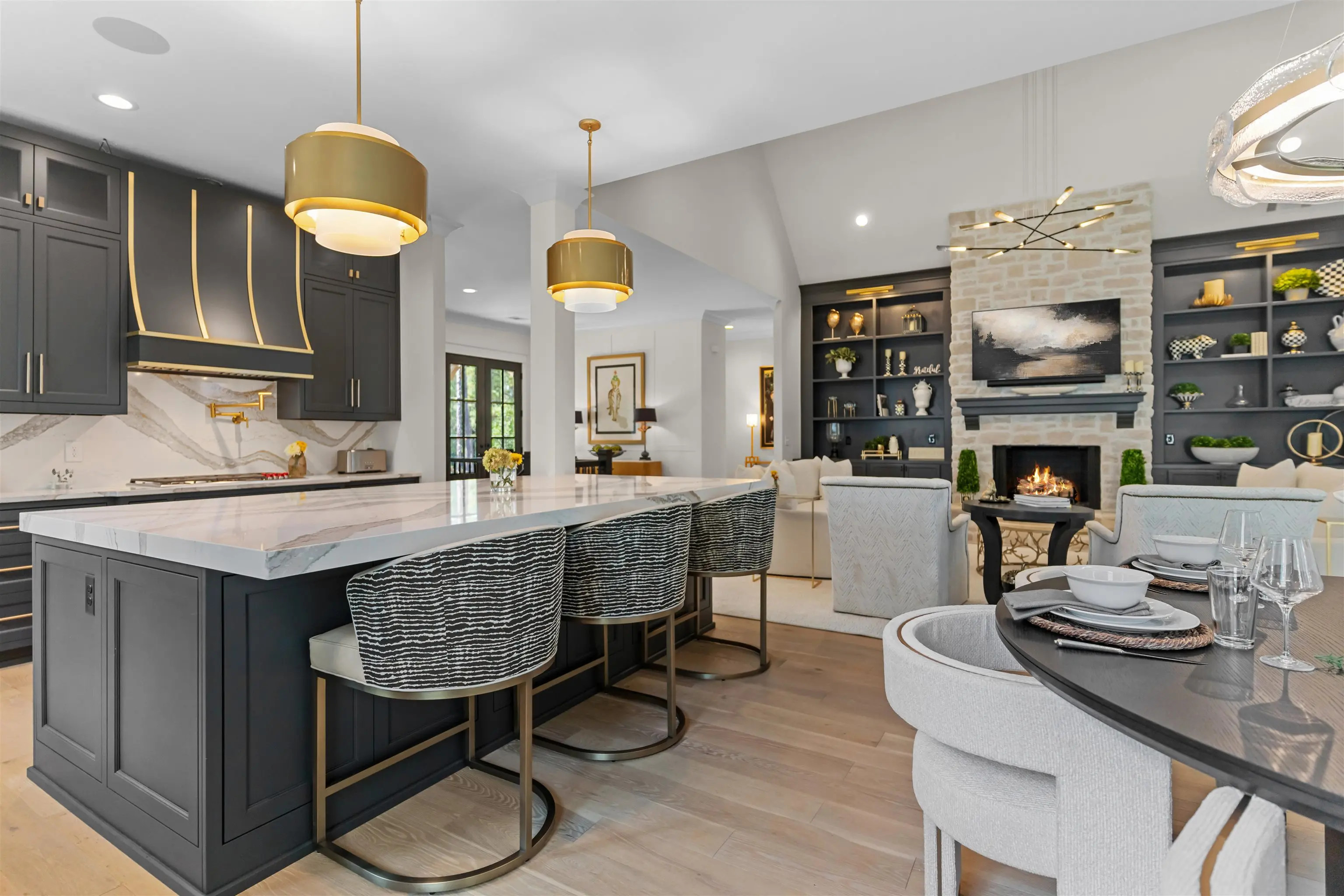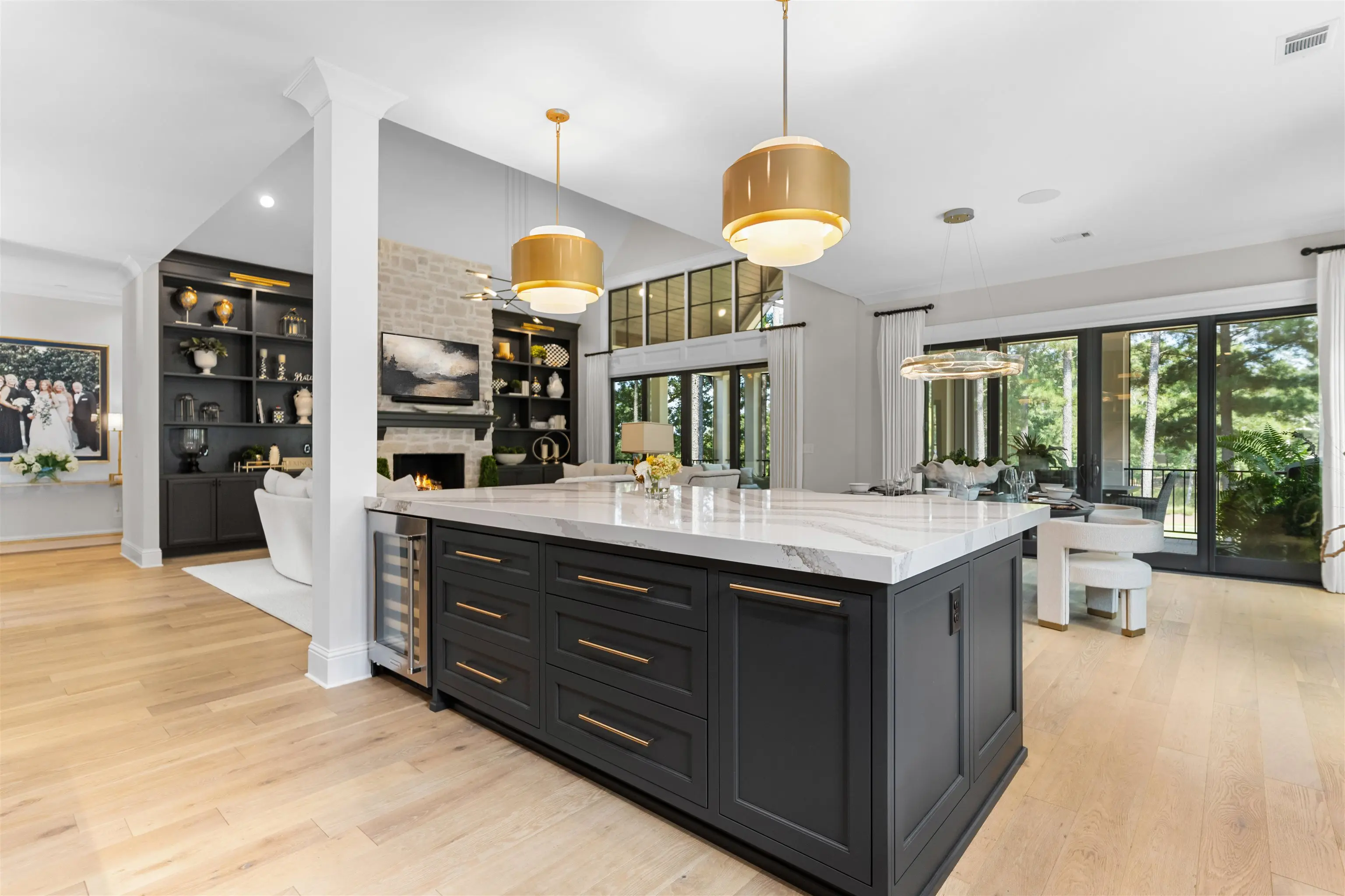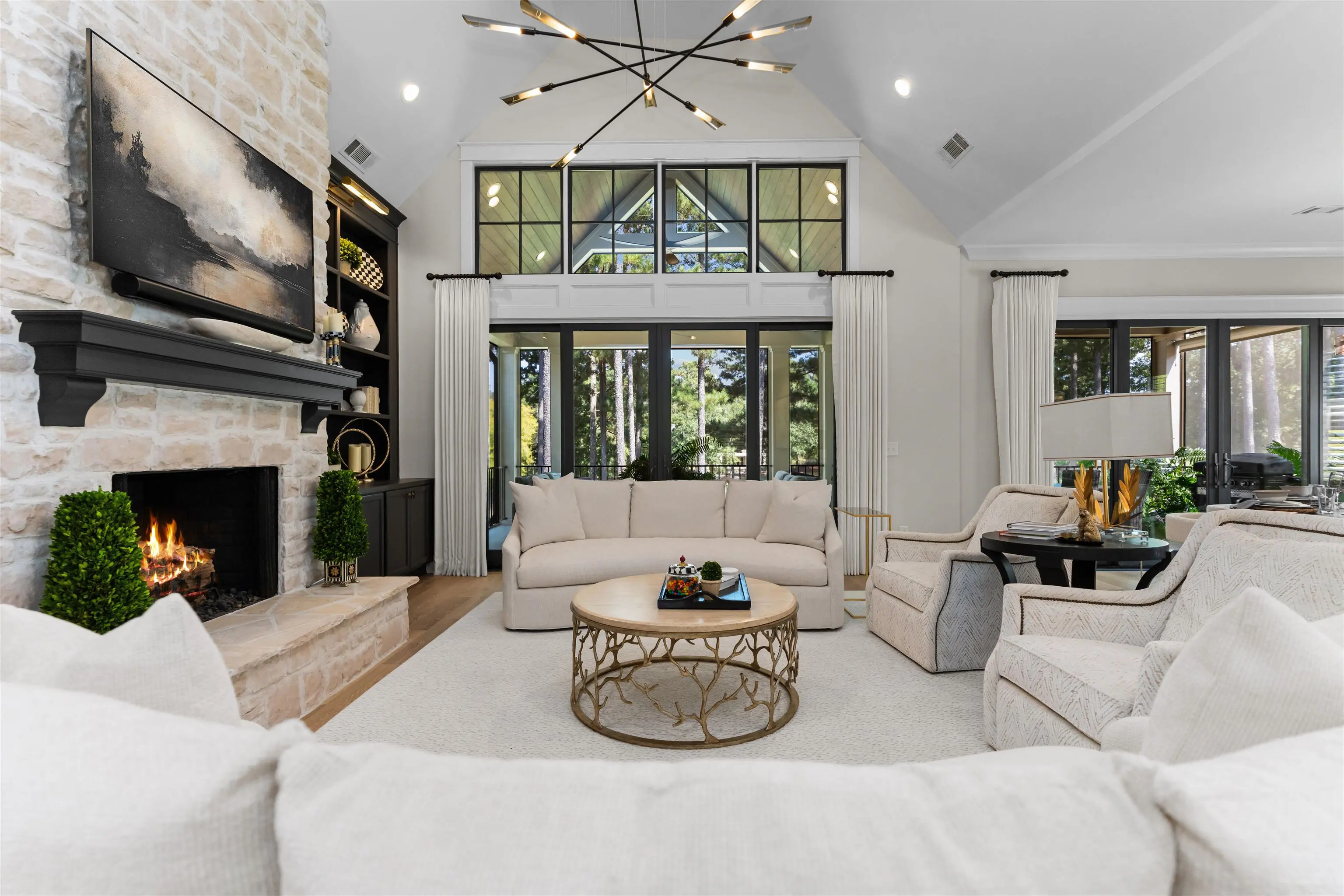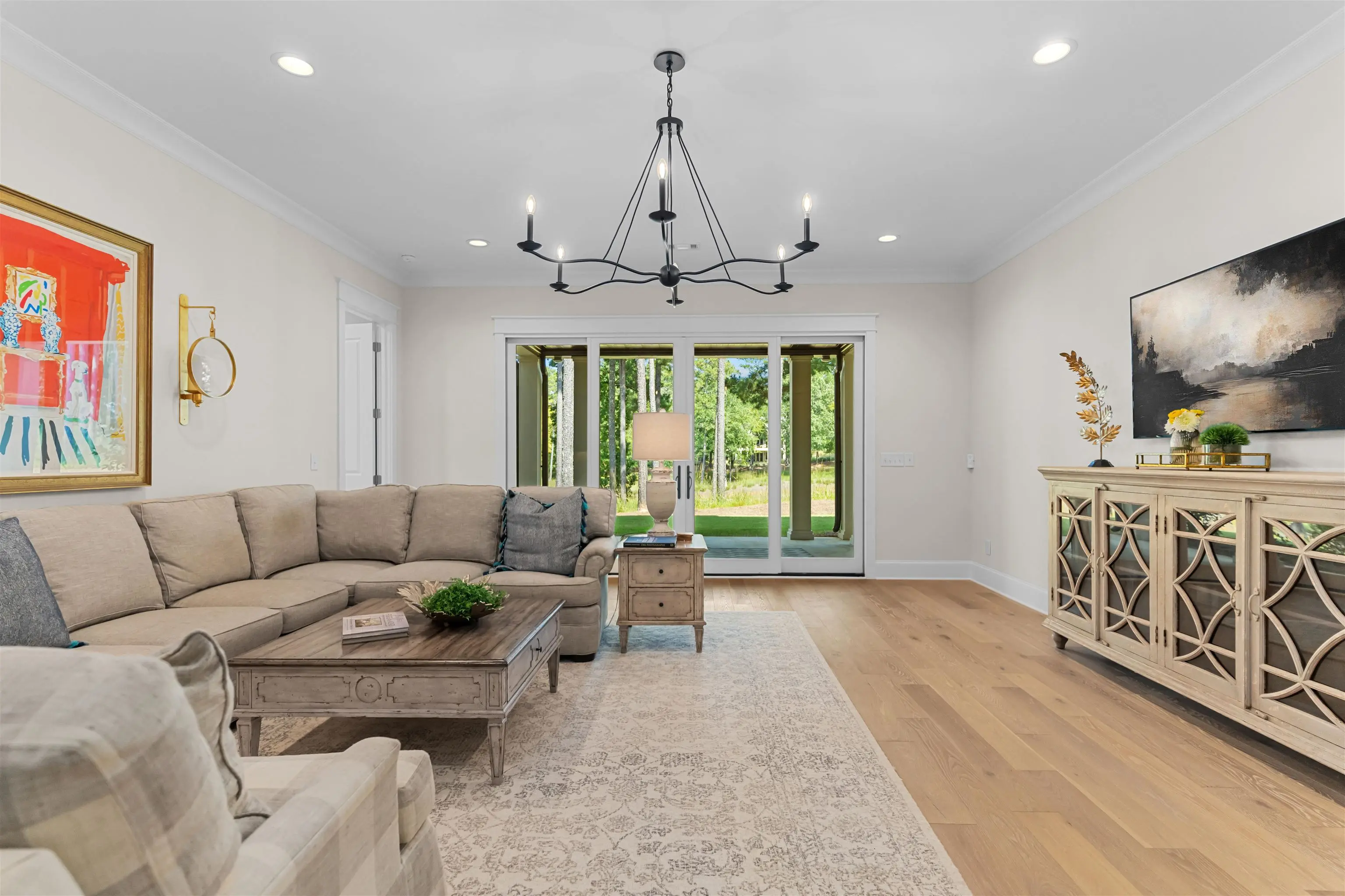 Impeccably Reimagined Custom Golf Residence on the Creek Course at Reynolds Lake Oconee Just Steps to the Driving Range. Experience luxury golf-course living at its finest in this exceptional custom home, beautifully reimagined by Black Sheep Interiors and ideally positioned along the prestigious Creek Course at Reynolds Lake Oconee. Offering sweeping tee-to-green views, this residence seamlessly blends modern sophistication with timeless Southern charm, delivering a truly turn-key lifestyle. Upon entry, a light-filled open floor plan unfolds, highlighted by luxury engineered flooring, plantation shutters, and integrated speakers throughout the main level. The great roomâanchored by a striking fireplaceâflows effortlessly into the dining area and a brand-new designer kitchen, creating an inviting setting for both elevated entertaining and everyday living. The kitchen is a true showpiece, featuring a Wolf range, Sub-Zero refrigerator, wine cooler, nugget ice maker, Cambria quartzite countertops, custom cabinetry, and a bespoke statement hood. Step onto the expansive screened porch, complete with privacy shades, where tranquil golf course views set the stage for al fresco dining and relaxed outdoor living amid manicured greens. The main-level primary suite offers a serene retreat with panoramic vistas and a newly designed, spa-inspired bathroom. A thoughtfully appointed guest suite with a full bath provides flexibility for guests, a private office, or additional living space. The terrace level is equally impressive, featuring a spacious family room with a wet barâideal for casual gatheringsâalong with three additional guest bedrooms offering generous accommodations for family and friends. Just beyond, a flat backyard with direct access near the green creates a rare and coveted golferâs paradise. Additional enhancements include a tankless water heater and reverse osmosis water filtration system, ensuring both comfort and efficiency. Perfectly located near Reynoldsâ world-class amenities including Creek Driving Range and Creek Club, this exceptional home presents a rare opportunity to own a fully updated, move-in-ready retreat that embodies refined elegance, effortless living, and an unparalleled golf lifestyle. MEMBERSHIP AVAILABLE.