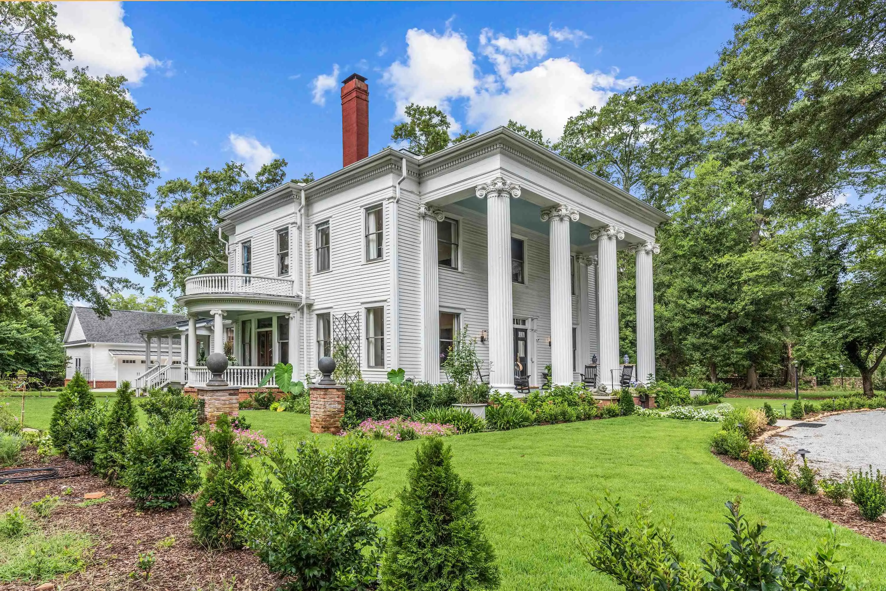 Discover the perfect blend of historic charm and contemporary sophistication in this remarkable 1905 Greek Revival estate on five private acres in the heart of Madison Georgia. Behind its stately façade, this 5,131-square-foot home has been fully updated with elegant, modern interiors designed for today’s lifestyle. Inside, soaring ceilings and heart pine floors meet clean lines, custom lighting, and designer finishes. The home offers four spacious bedrooms, including a luxurious owner’s suite, three full baths, and one-half bath. The modern chef’s kitchen features high-end appliances and opens to stylish living and dining spaces ideal for entertaining. Step outside to enjoy manicured grounds framed by historic rock walls, an inviting saltwater pool, and a three-car garage with a private one-bedroom guest or office space. Set on Madison’s prestigious East Avenue, this extraordinary property combines Southern heritage with contemporary elegance—a rare find in one of Georgia’s most charming and historic places. Madison was recently added (again) to Southern livings Prettiest Towns in Georgia list and is featured in Time Magazines World’s Greatest Places list as well. It offers an award-winning school system and is within an hour’s drive of Atlanta, and the Atlanta International Airport, 30 minutes from the University of Georgia in Athens and 20 minutes to the Stanton Springs Rivian Assembly plant which is now under construction.