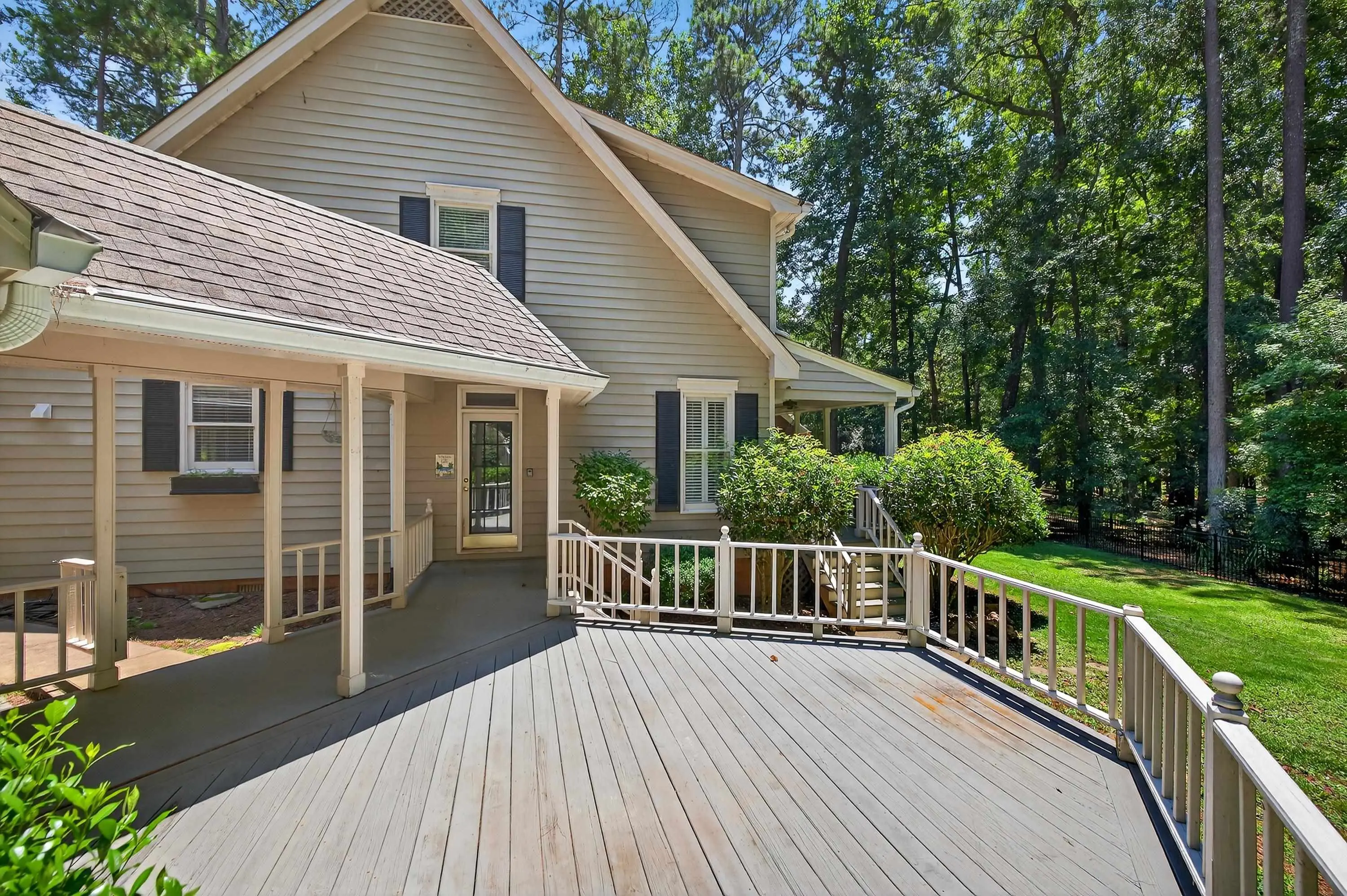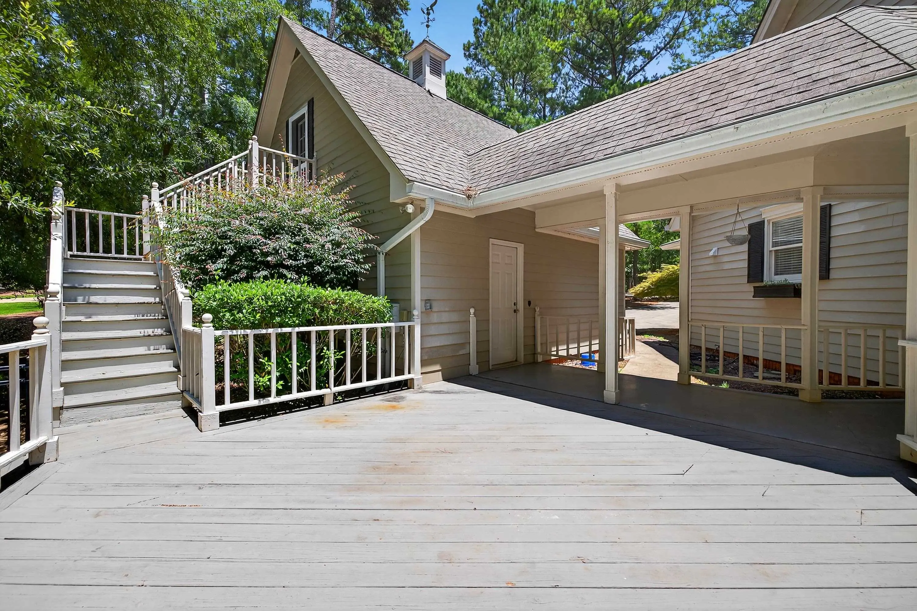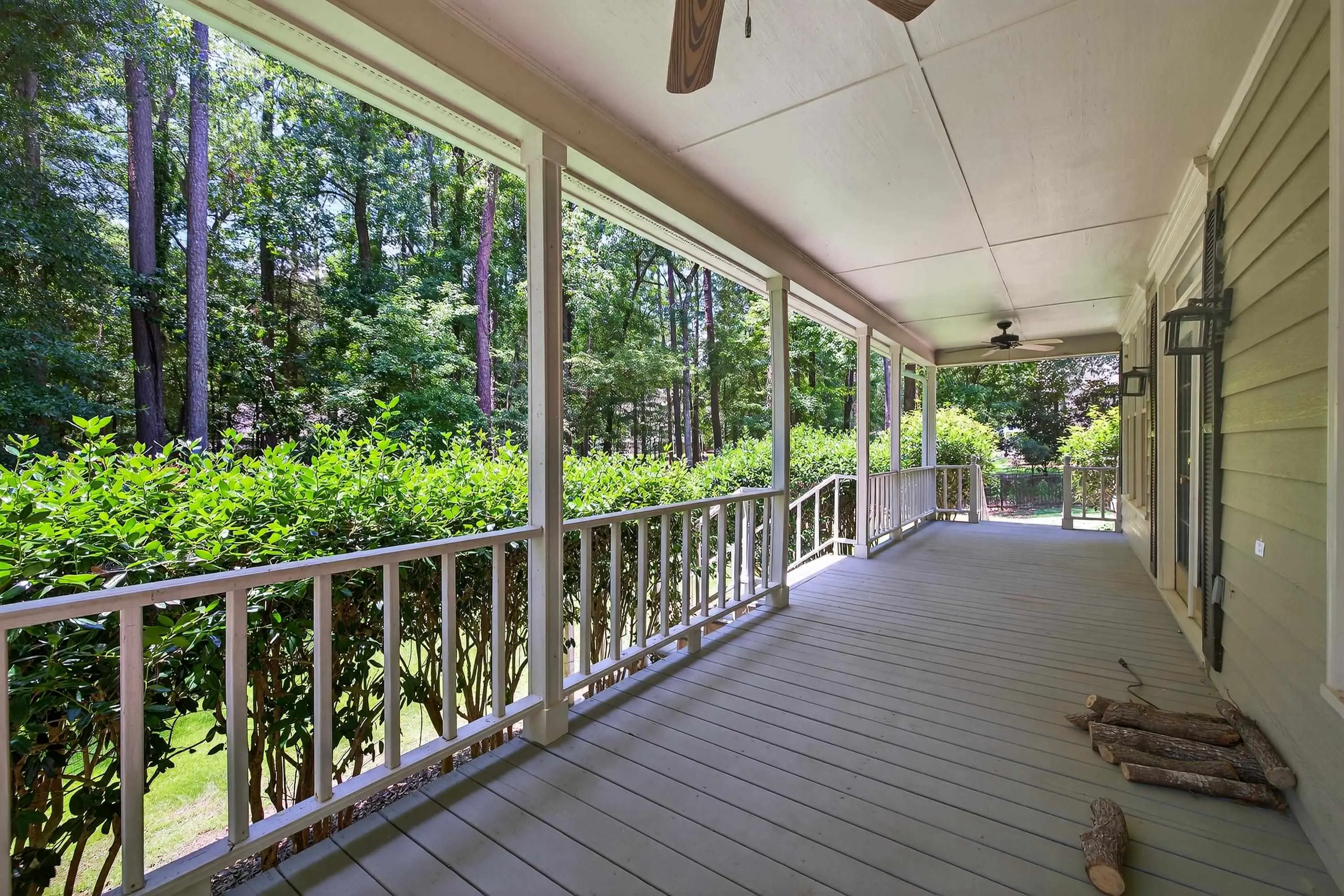 - Exterior FeaturesCovered Deck, Covered Porch, Deck, Storage Room