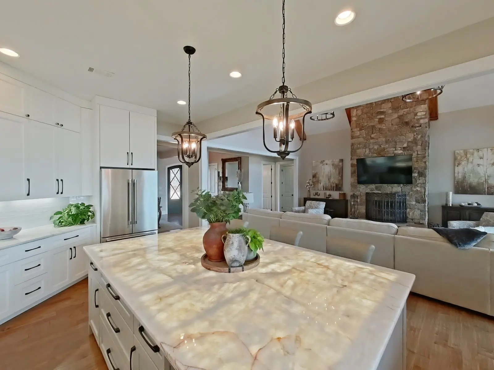 Amazing home in the gated, Morgan County Sailview subdivision. You won't want to miss the luxury details of this home. Built for entertaining with a translucent, oversized, marble, under lighted kitchen island that glows, To an outdoor oasis with a max dock and pristine beach. Separate downstairs entrance to a full suite with kitchen, dining and private garage.