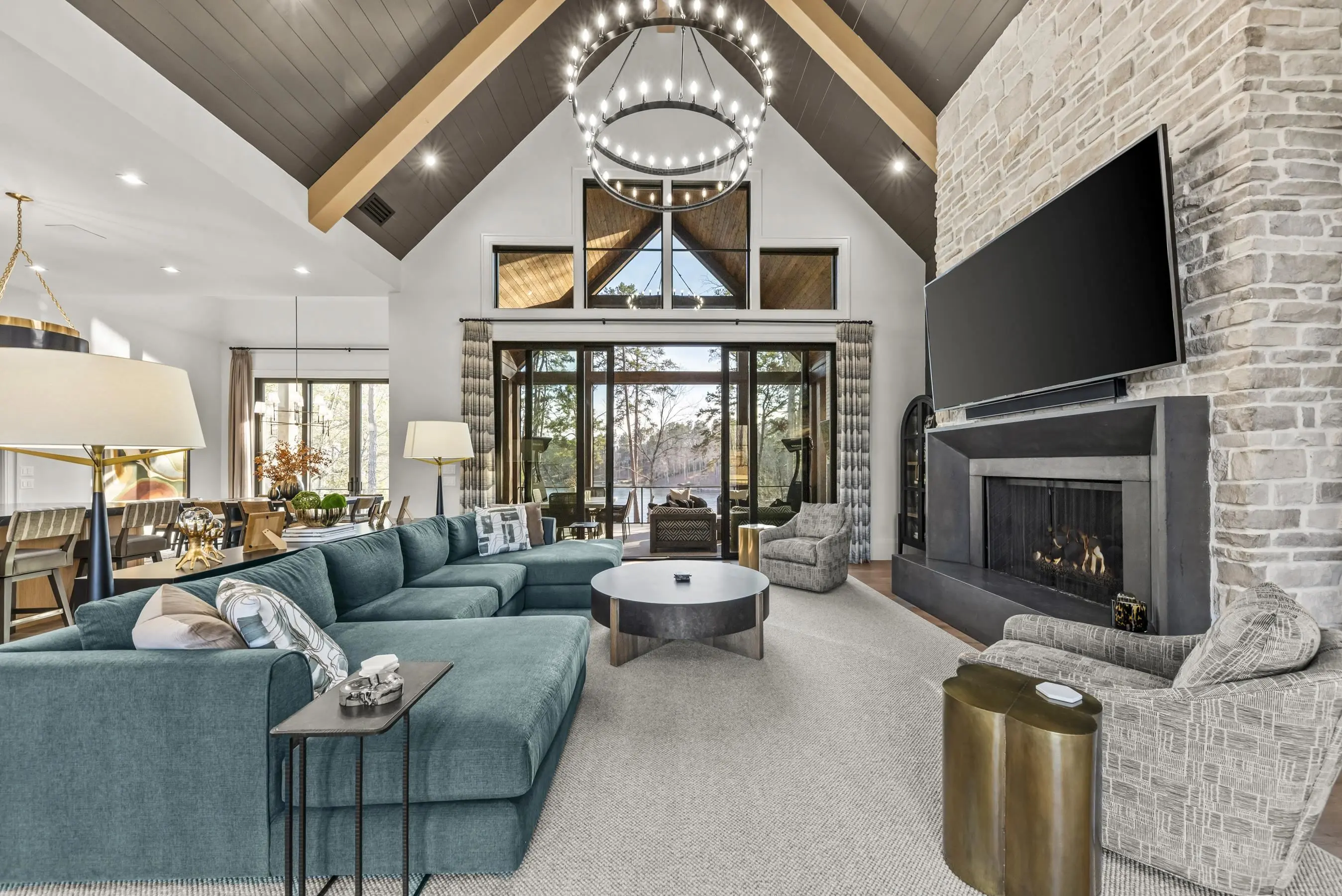 A TRUE ONE OF A KIND IN REYNOLDS LAKE OCONEE'S NEWEST SECTION, RICHLAND POINTE ! Designed and built by Heirloom Builders, this stunning lakefront estate blends white painted brick, cedar shiplap siding, Tennessee fieldstone, and a synthetic cedar shake roof—a timeless exterior that sets the tone for what’s inside. Step through the door and you’ll find a home where every single detail was intentionally designed. Featuring 10’ wide plank floors, an open layout, and custom Italian cabinetry by Costanza Cucine. Oversized living room with vaulted ceilings, large fireplace and access to the large screened in porch with an outdoor double-sided fireplace. On the main level you will find a gorgeous main-level owner’s suite with porch access that leads to a spa-like bath with double vanities, waterfall quartz countertops, heated floors and a dream walk-in closet. Downstairs is made for entertaining with a golf simulator, expansive wet bar, and three additional guest bedrooms with private baths (including a second suite). And above the garage? A full in-law suite with living room, bedroom, and heated bathroom floors. Outside, enjoy the ultimate lake lifestyle with a terrace-level pool, fenced turf backyard, and max dock on deep water. This luxury lakefront home is being sold COMPLETELY FURNISHED and sellers are making a golf membership available. THIS IS ONE YOU DON'T WANT TO MISS !
