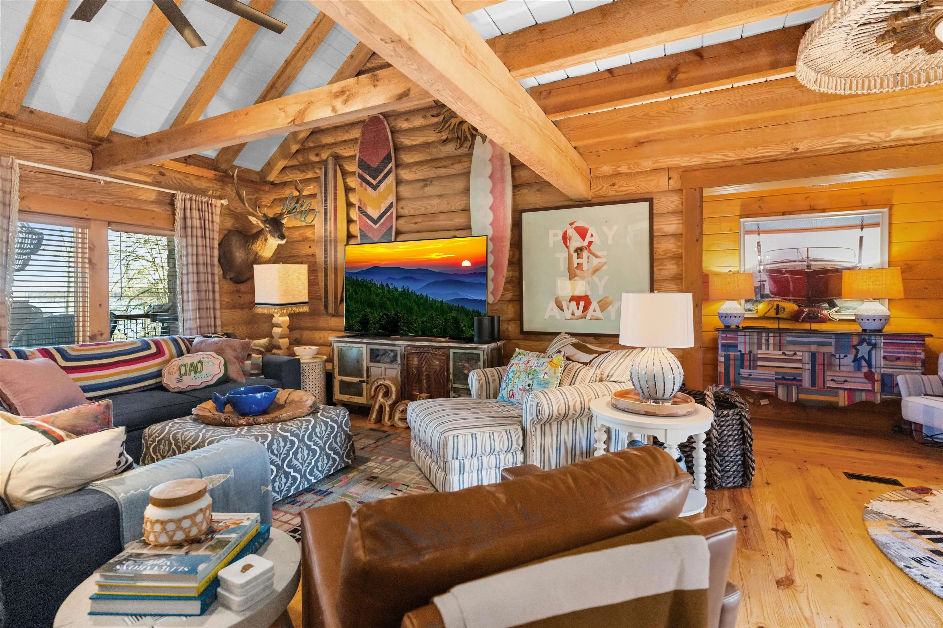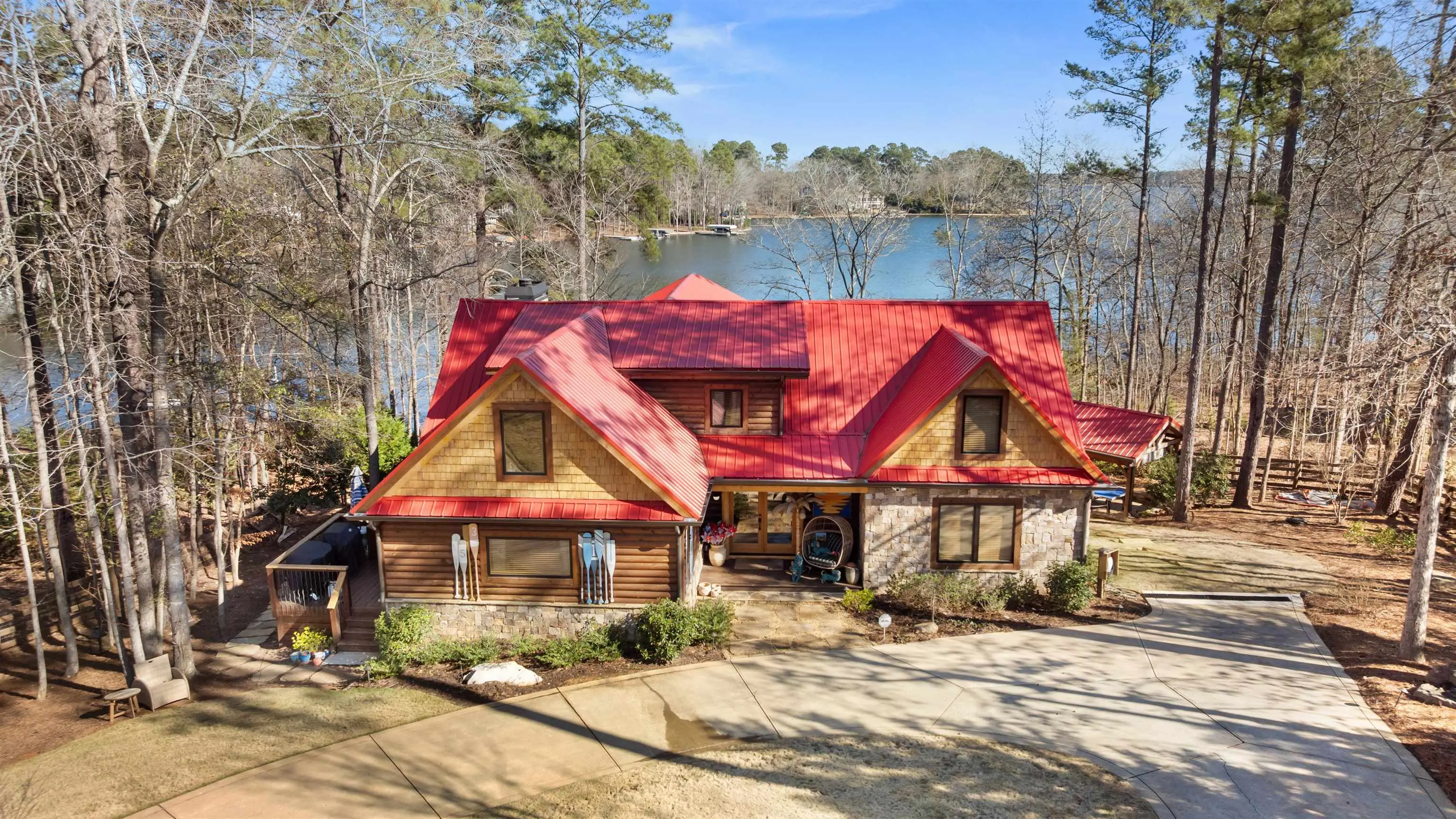 The ultimate Lake Oconee retreat â a show-stopping log cabin that blends rustic charm with resort-level amenities. This extraordinary lakefront estate features 4 bedrooms, a light-filled loft, a dedicated bunk room, two additional sleeping rooms and 6.5 baths â ideal for multi-family living or entertaining large groups. Enjoy sweeping water views from double covered porches, relax in the party pavilion, or sweat it out in the hot rocks sauna with direct lake vistas. The shoreline offers easy lake entry and the deep-water max dock reaches 11 ft, perfect for boating and water sports. Thoughtfully designed indoor and outdoor spaces invite endless gatherings, quiet mornings by the water, and unforgettable sunsets â you truly have to see it to believe it. One of Lake Oconeeâs coolest properties.