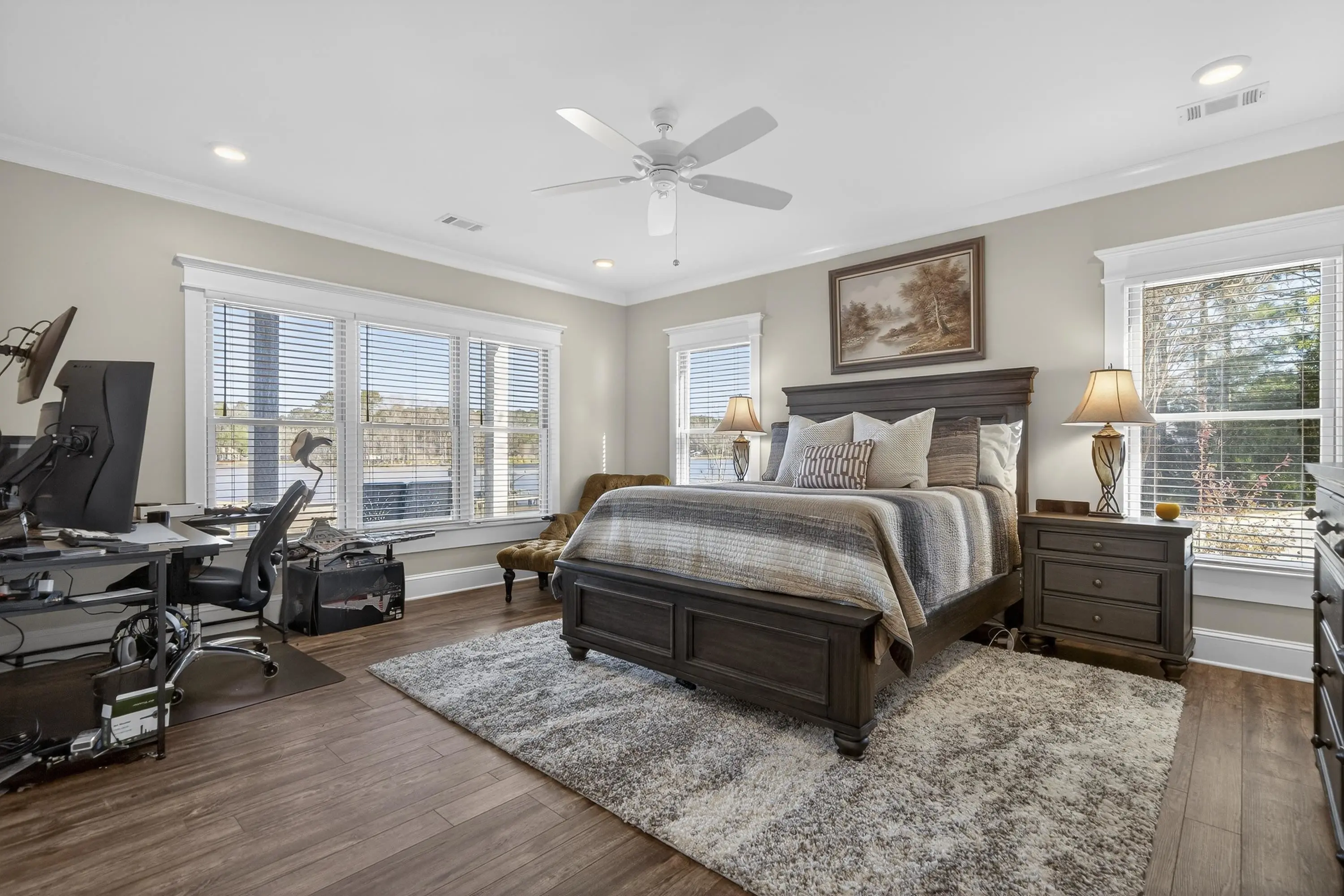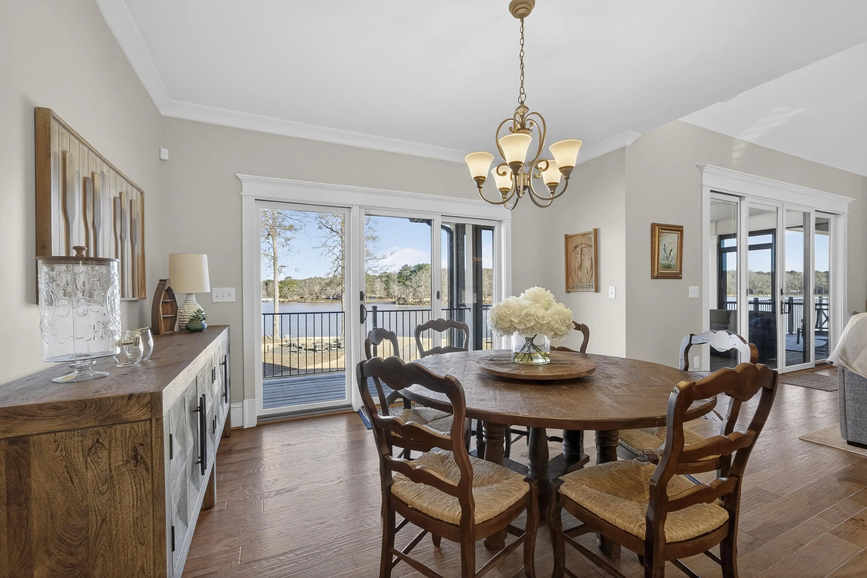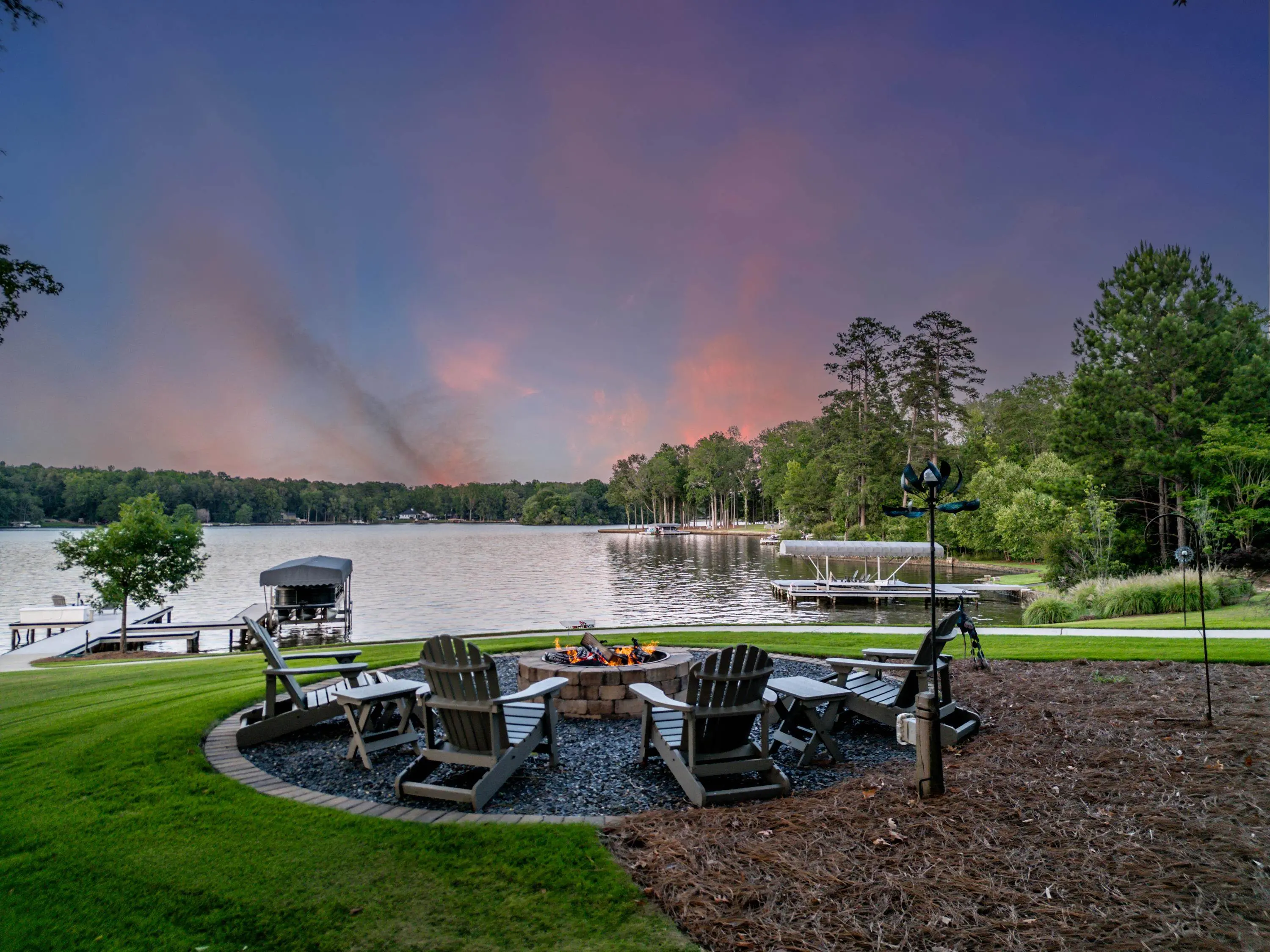 Whether you're looking for a second home on beautiful Lake Oconee or a primary residence in a sought-after school district, 1010 Azalea Lane offers the perfect opportunity. With easy access to Interstate 20, commuting to Atlanta or making a quick trip to the airport is both convenient and efficient. This stunning home is perfectly situated on a park-like one-acre lot featuring approximately 300 feet of water frontage, a max dock, and deep-water access. Breathtaking panoramic lake views can be enjoyed from every room. The main level offers two spacious primary suites, while the terrace level includes two additional bedrooms and a bunk room providing ample space for family and guests. Sale includes a standby generator, Flo by Moen smart water shutoff system and a whole-house water softener, among many additional upgrades. Spend your days on the lake and your evenings gathered around the fire pit, enjoying s'mores under the stars. This serene home is the tranquil retreat you've been searching for to create lasting memories with family and friends.