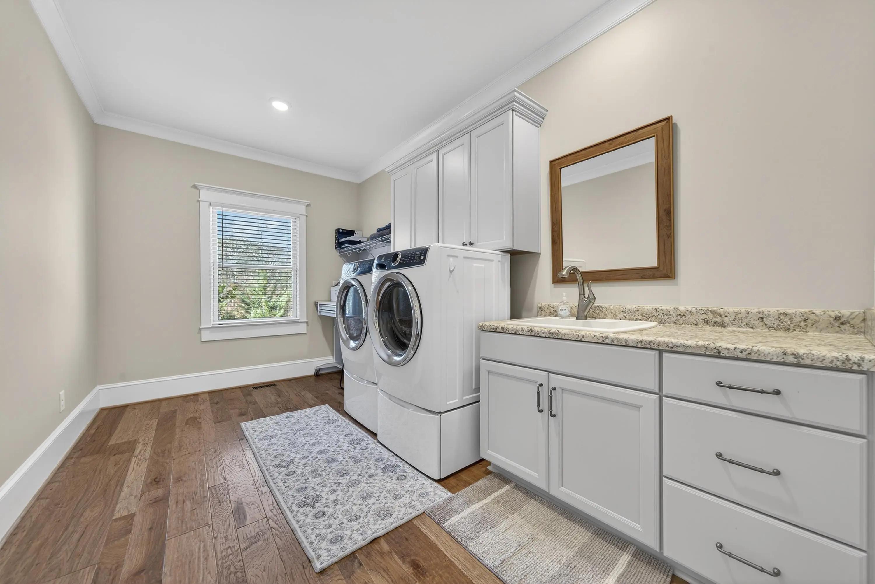 - AppliancesBuilt in Microwave, Cook Top, Dishwasher, Dryer, Vent Hood, Wall Oven, Washer, StainlessSteel Appliances