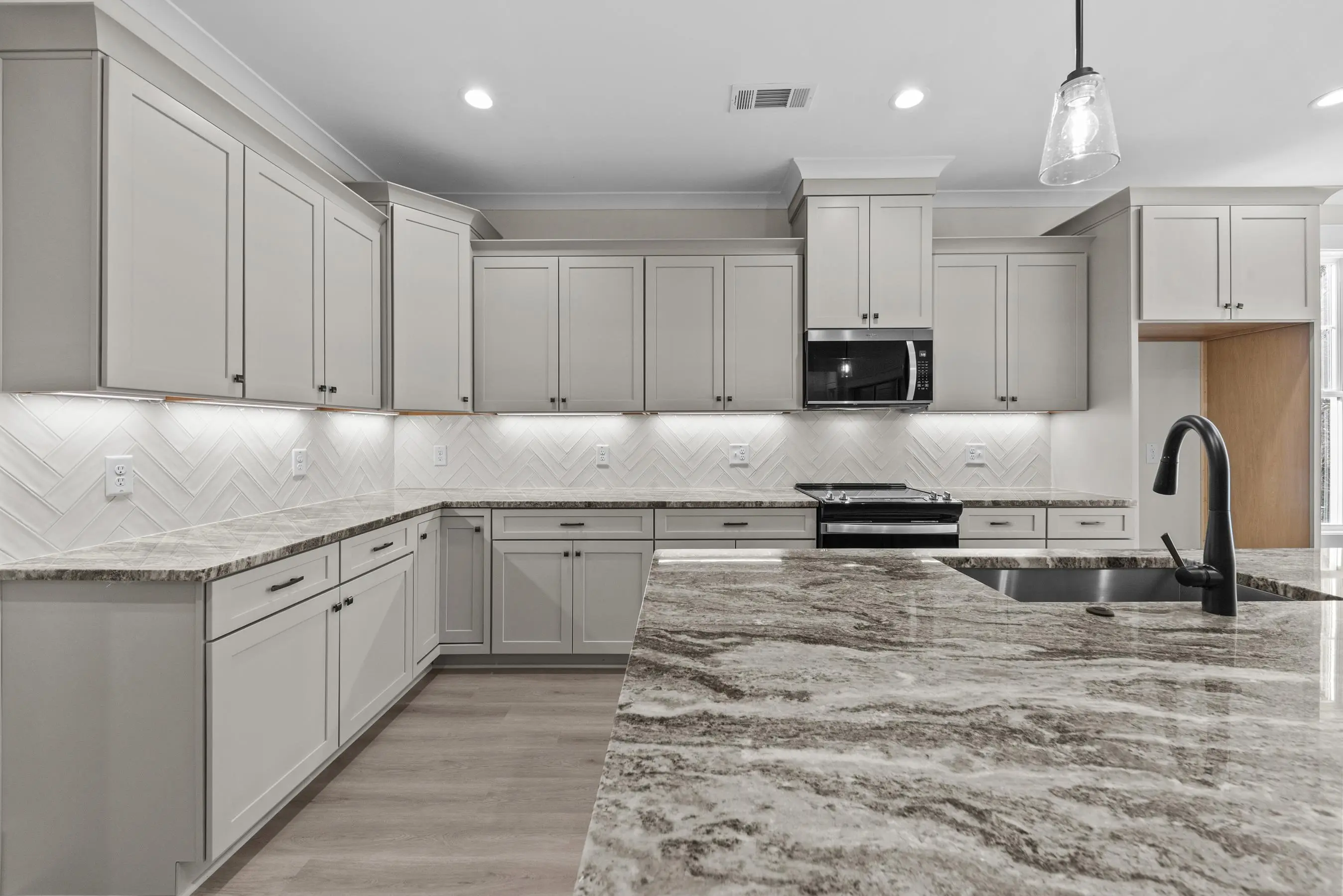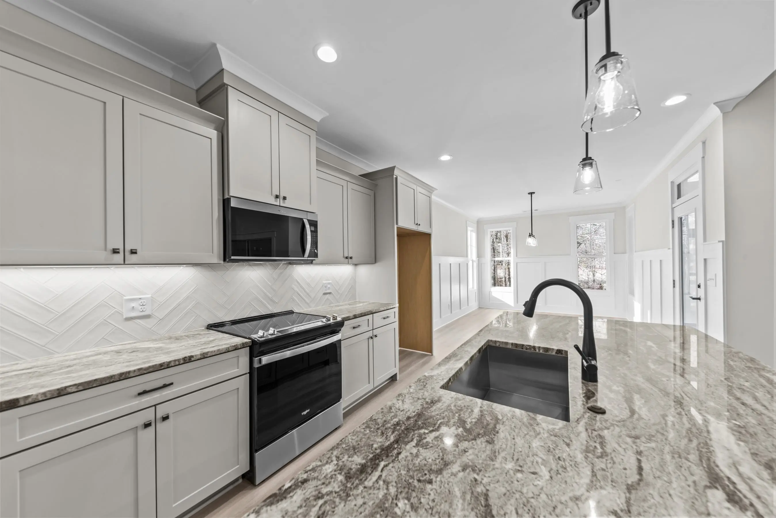 - AppliancesBuilt in Microwave, Dishwasher, Garbage Disposal, Microwave, Range, StainlessSteel Appliances