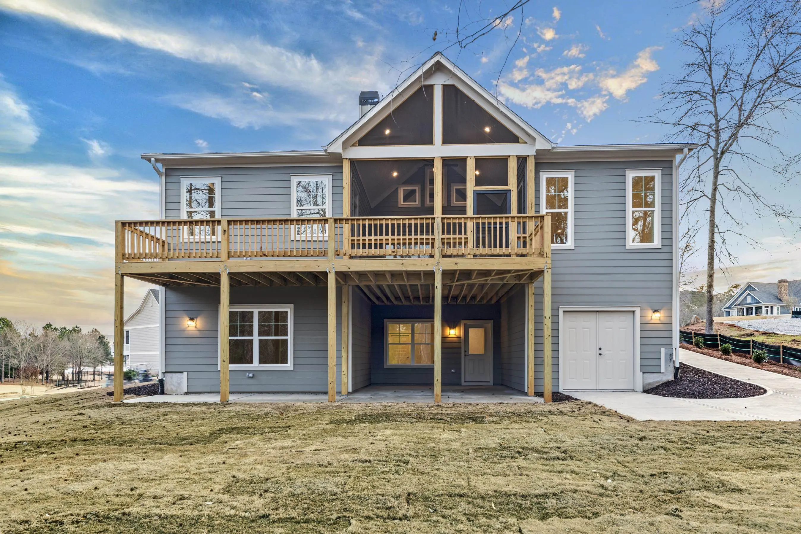 Waterford Homesâ last new cottage home in Harbor Clubâthis is it. Perfectly positioned in Club Cottages, this Oconee Plan overlooks the iconic 15,000-square-foot clubhouse, the 18th hole, and the driving range. Designed for easy, elegant living, the main level features two spacious bedrooms and two full baths, anchored by a dramatic great room with vaulted, beamed ceilings that flow seamlessly through a 12' sliding door and onto a covered screened porch and expanded grilling deckâmade for entertaining. The primary suite impresses with an oversized stepless entry shower, a generous walk-in closet, and a direct connection to the laundry room for everyday convenience. The kitchen is a true showstopper with exceptional cabinetry and counter space, ideal for both hosting and serious cooking, while the perfectly proportioned dining area easily accommodates a large table. Downstairs, the dryed-in lower-level patio creates yet another inviting outdoor living space. The last opportunity of its kindâdonât blink or itâll be gone. Itâs time to start your play time at Harbor Club on Lake Oconee â golf, boating, pickleball, tennis, pool, marina with dry stack storage, restaurant and member events to your heartâs delight.. Home nearly complete...Early