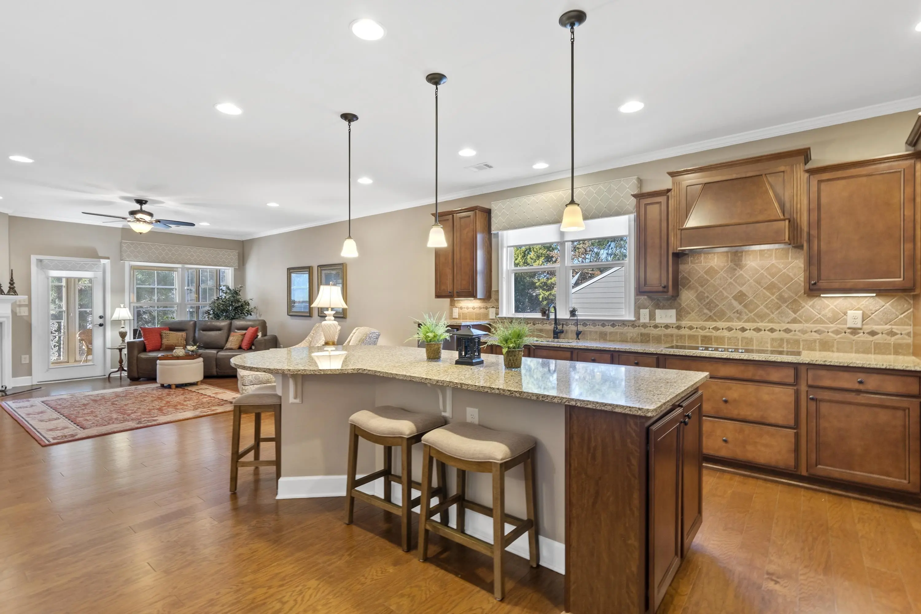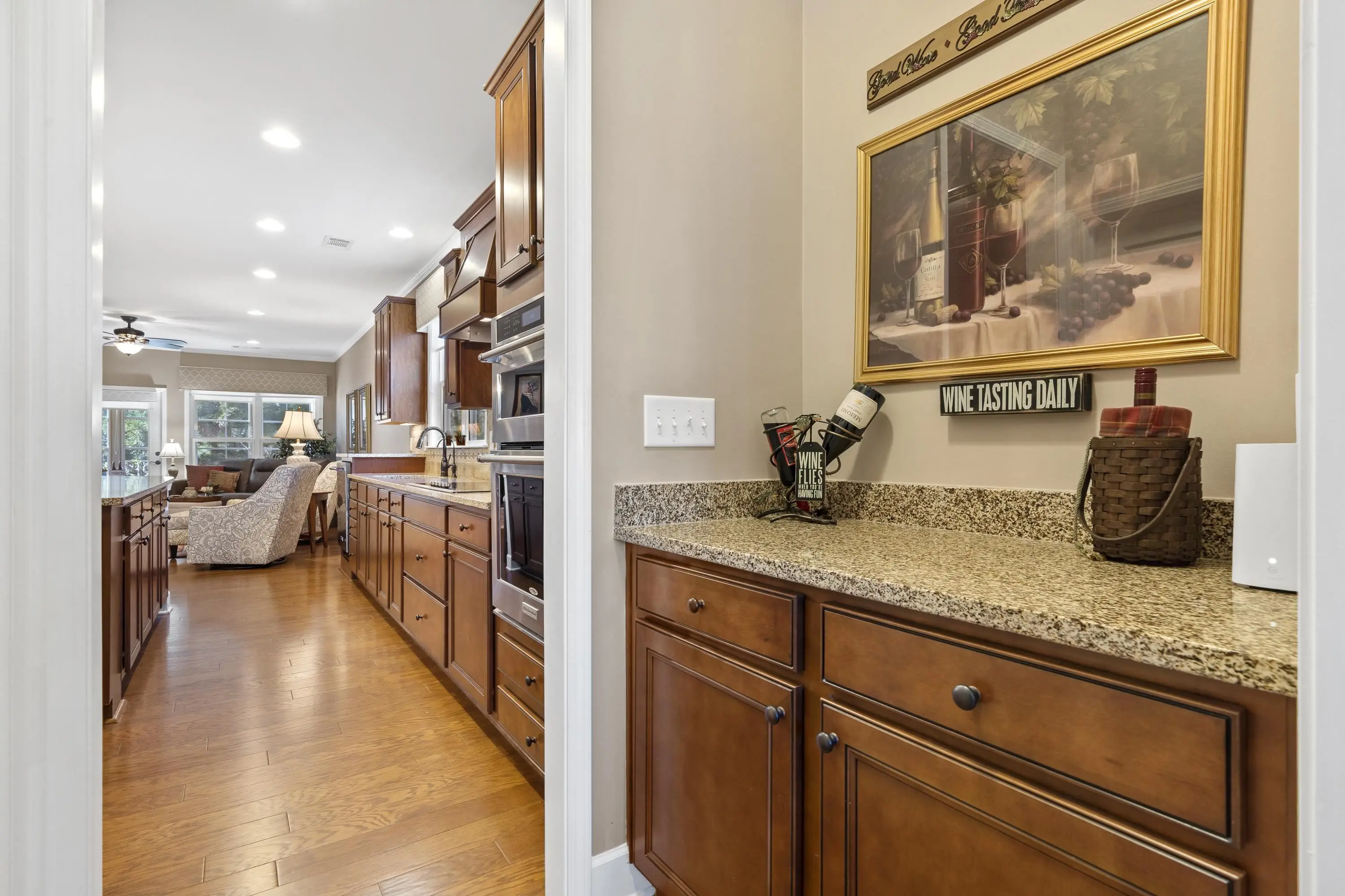 - AppliancesBuilt in Microwave, Cook Top, Garbage Disposal, Microwave, Refrigerator, Vent Hood, Wall Oven, StainlessSteel Appliances