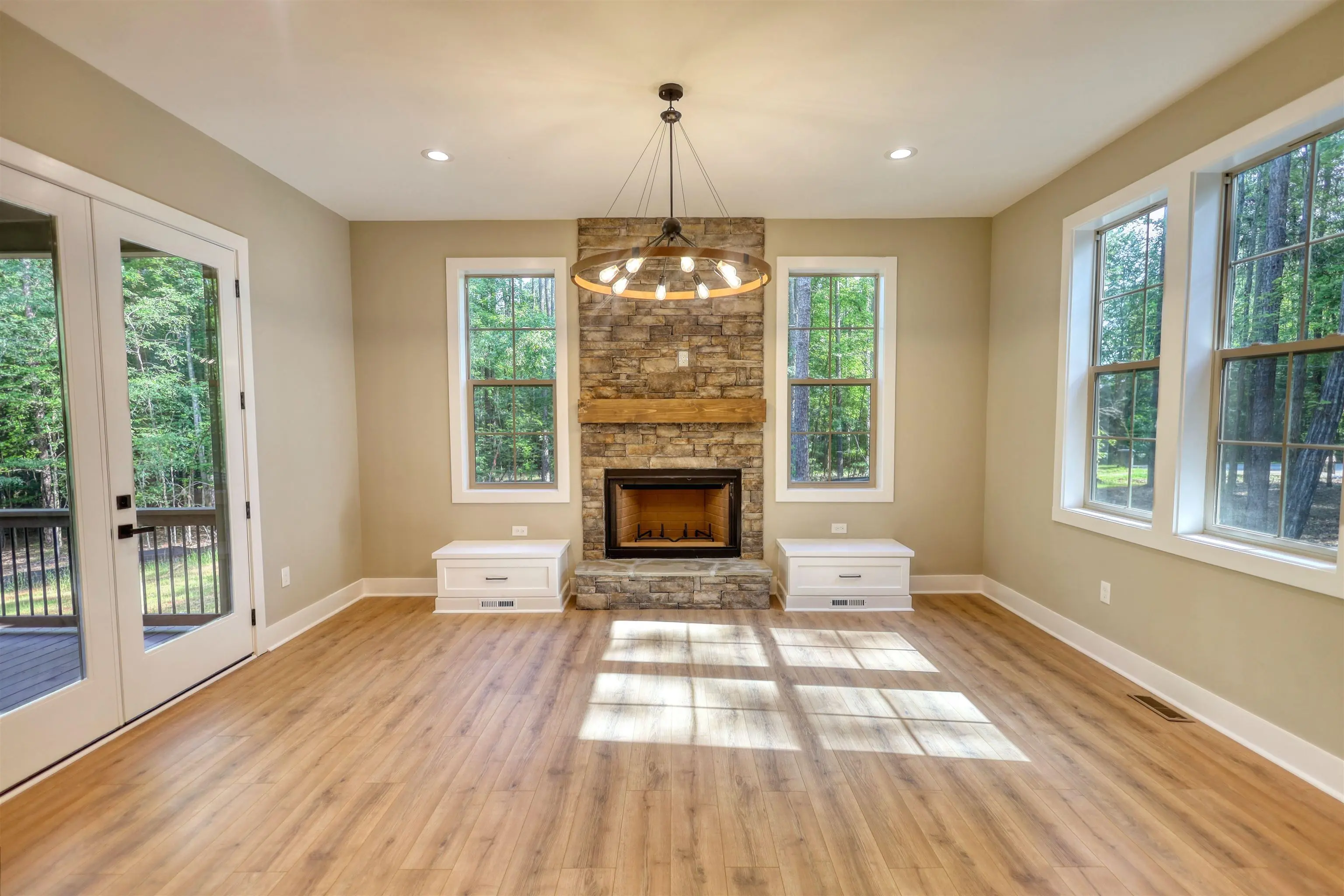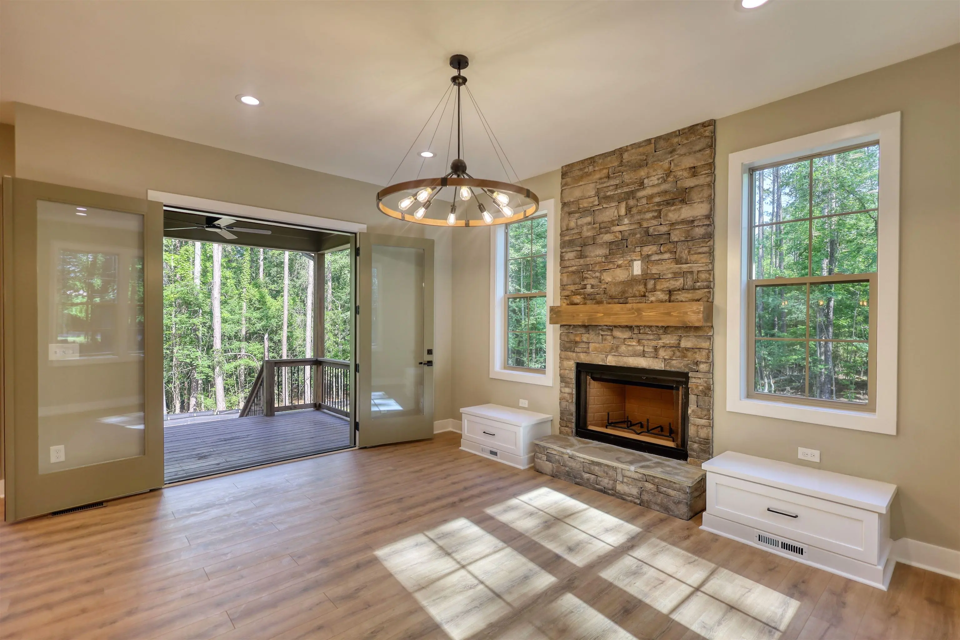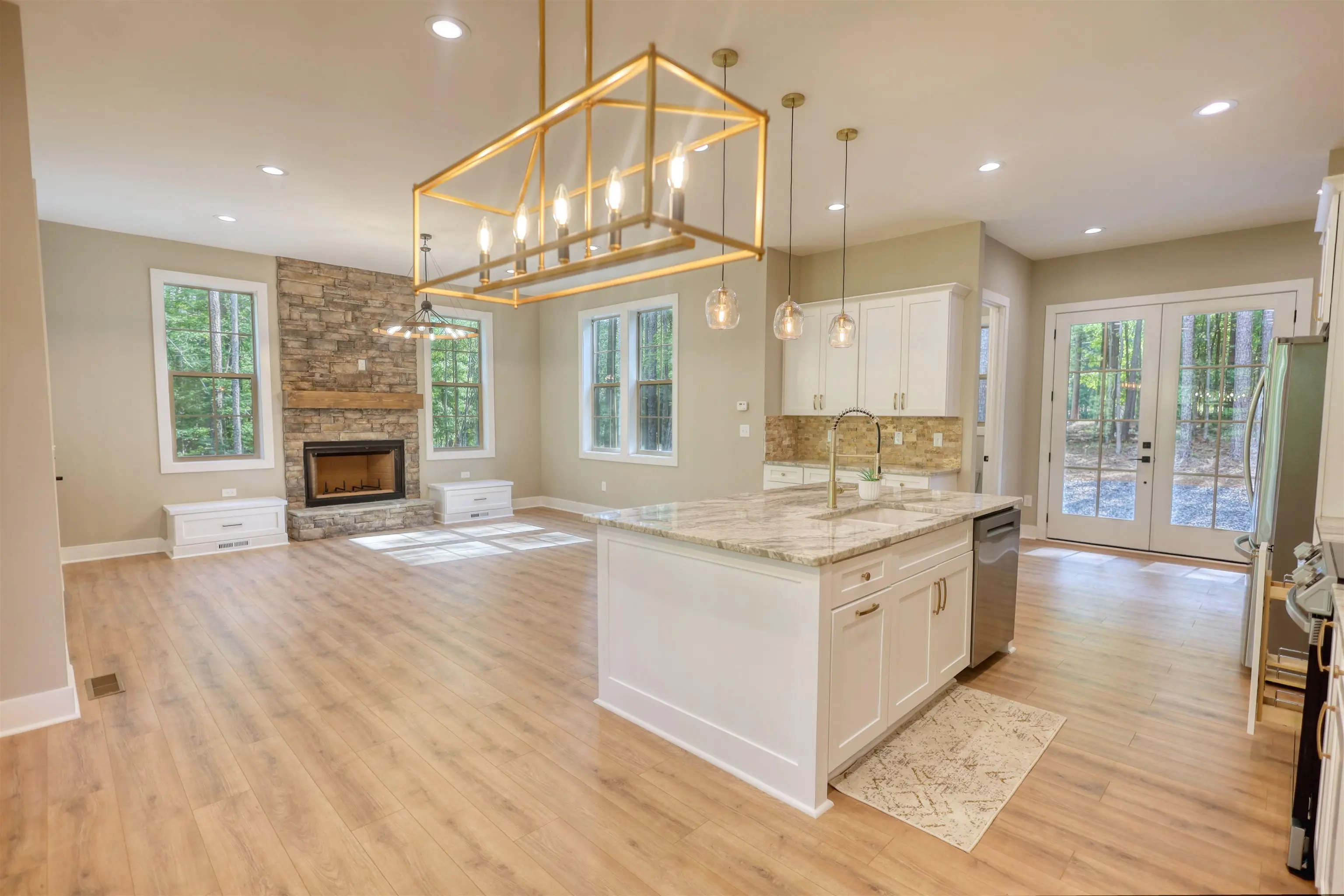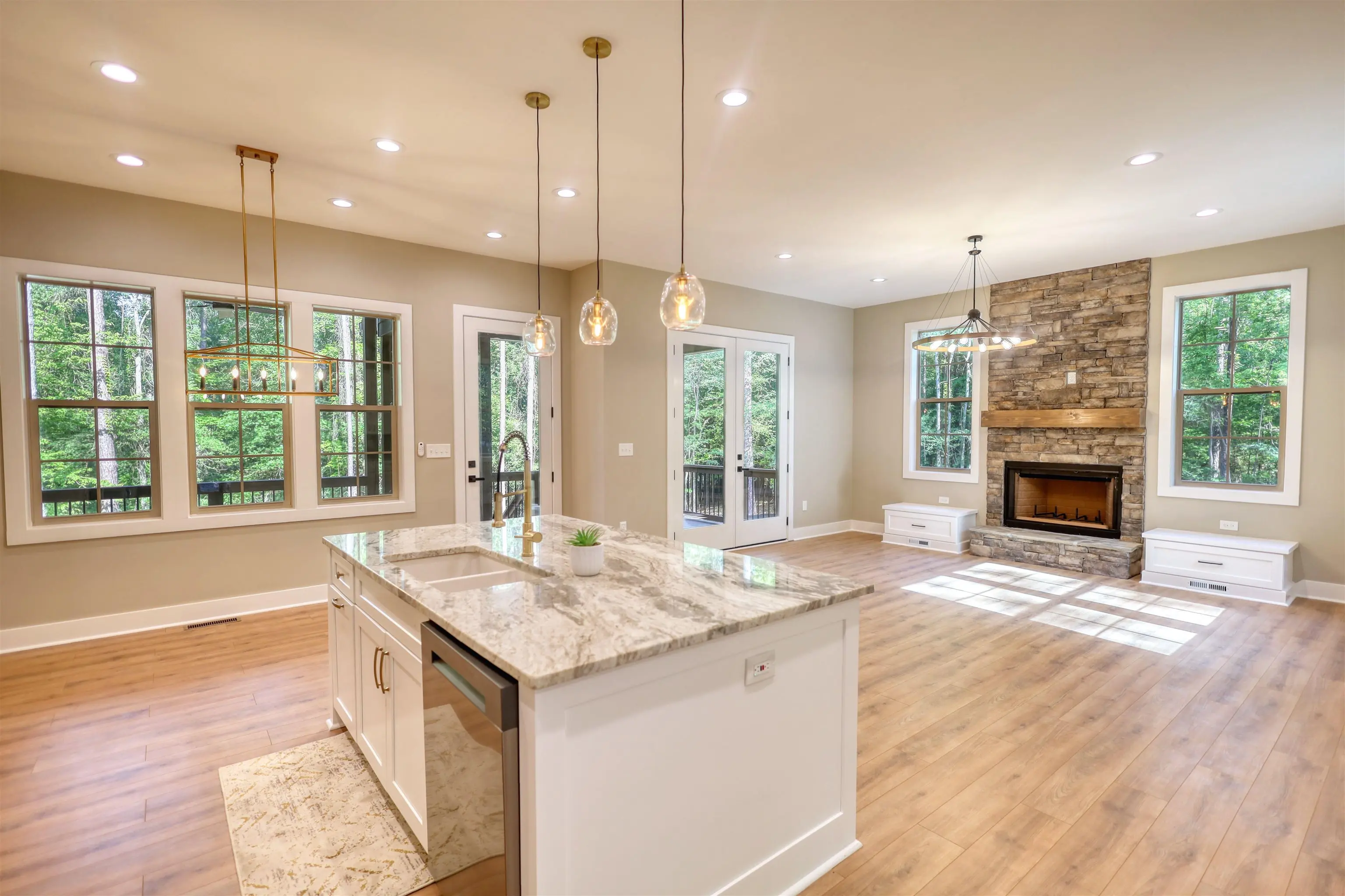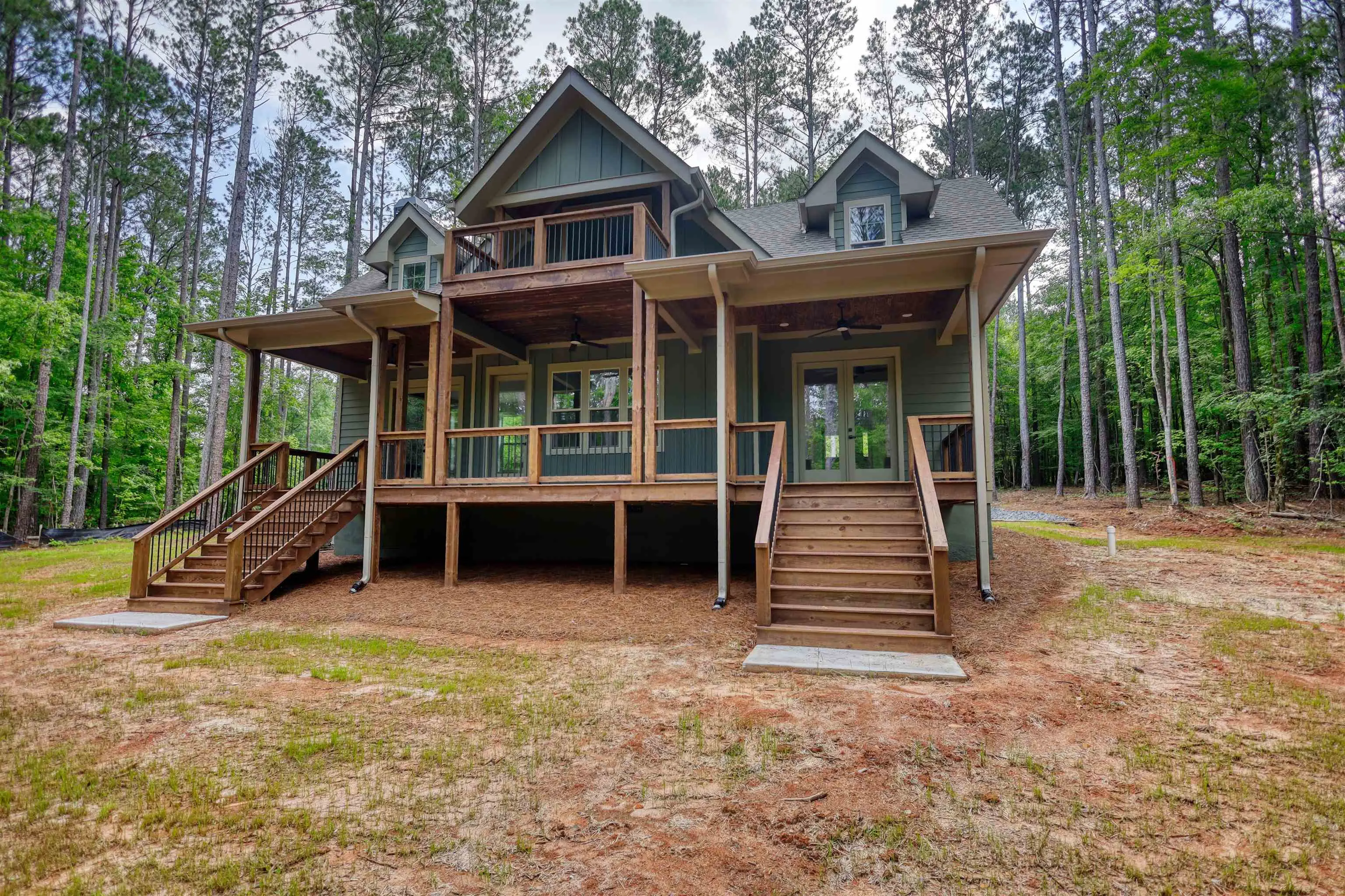 FRESH DREDGING 1/29/26! Custom designed new construction with Lake Oconee access from your own personal dock. This Hardie board craftsman sits on 1.37 acres of level wooded privacy, as a cul-de-sac lot. Sought after master on main, two bedrooms upstairs, PLUS a bunk room for your guests, makes this the quintessential gathering place. Also upstairs is the perfect place for an office, recreation, or sitting area that leads to a large balcony, where one can catch a peek of the lake seasonally. On your main level, the robust kitchen island is centralized for extra counter space or for loved ones to pull up a stool. The open concept here allows you to be present for those in the living room, enjoying the stacked stone fireplace, or those eating at the dining room table. Behind the kitchen is the master bedroom, with French doors leading to the massive back deck with two staircases descending onto the backyard. An additional set of French doors line the back of the home at the living room, for easy access outdoors at any time. Take the short walk to your assigned slip at any time, where only a select few neighbors own slips. The North end of Lake Oconee is mostly untouched; you will not find wake and traffic here! Make an appointment today and let's put your LAST name on this FRONT door!