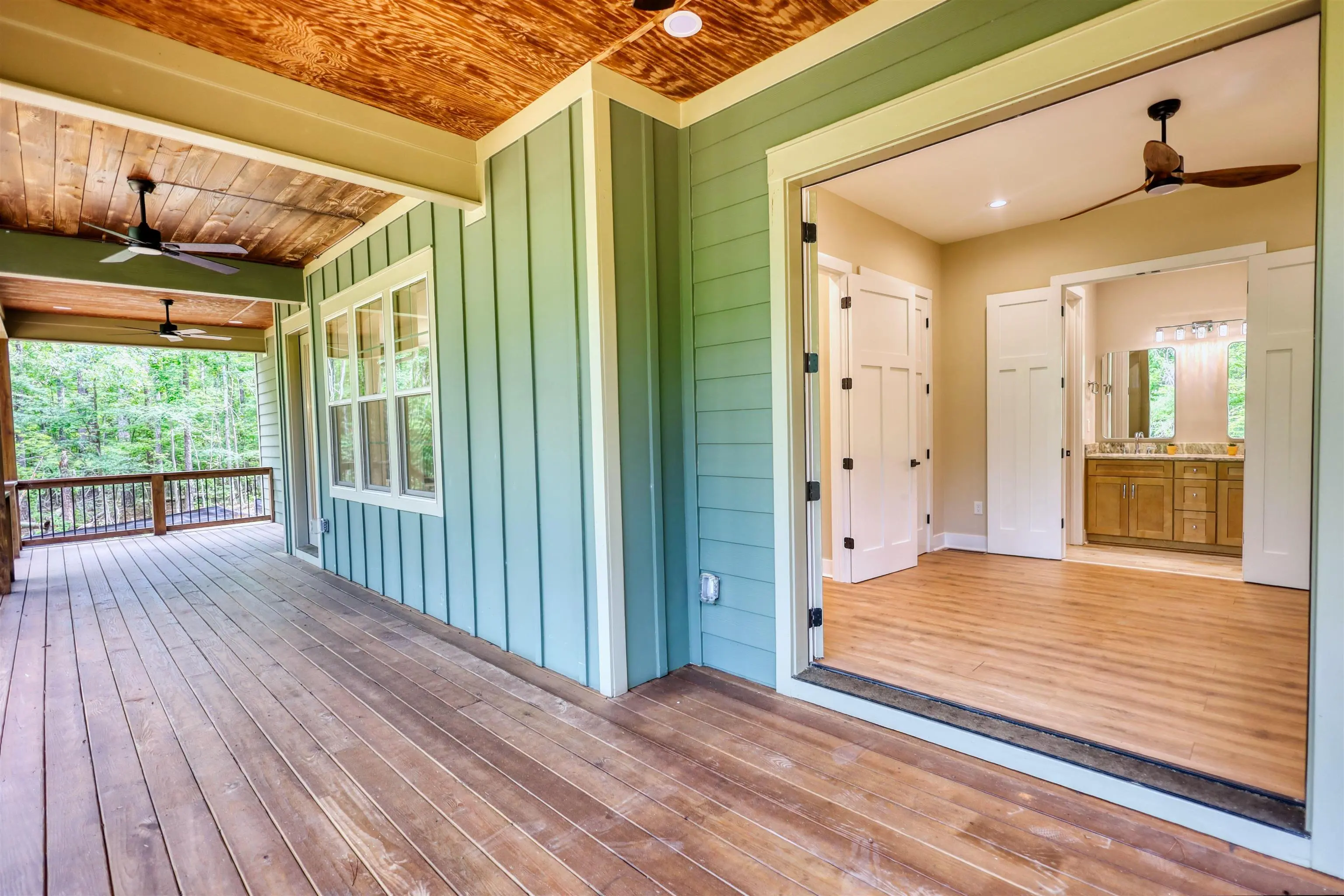 - Exterior FeaturesBalcony, Covered Deck, Deck, Porch
